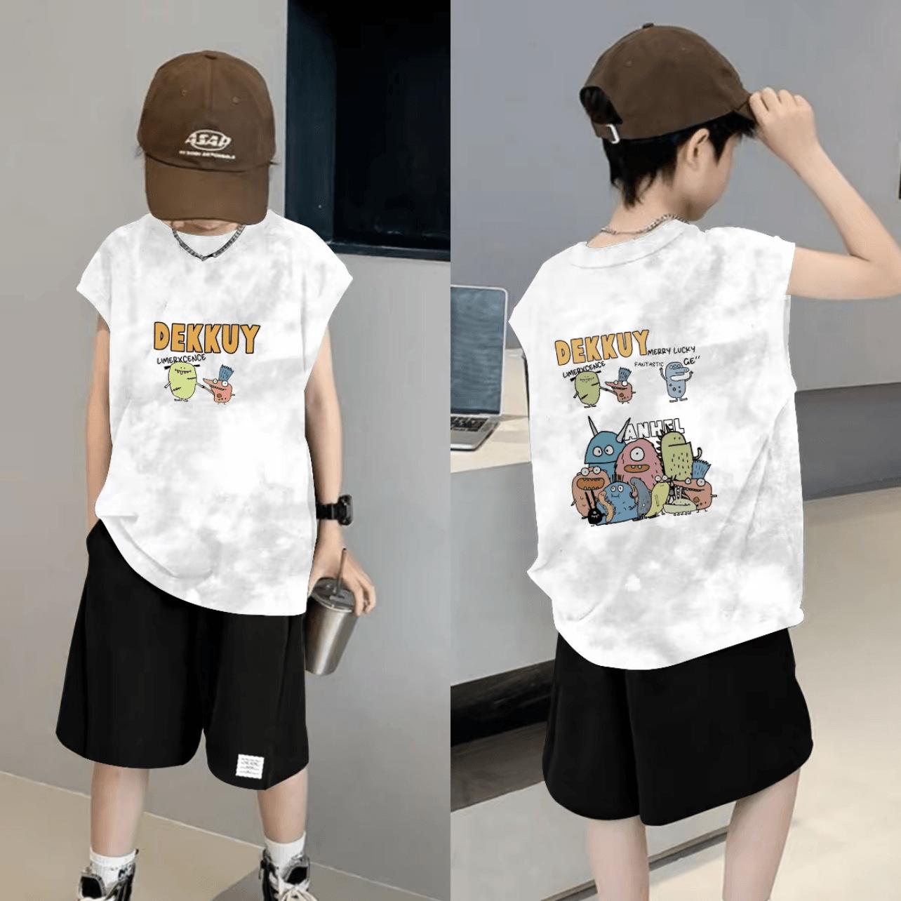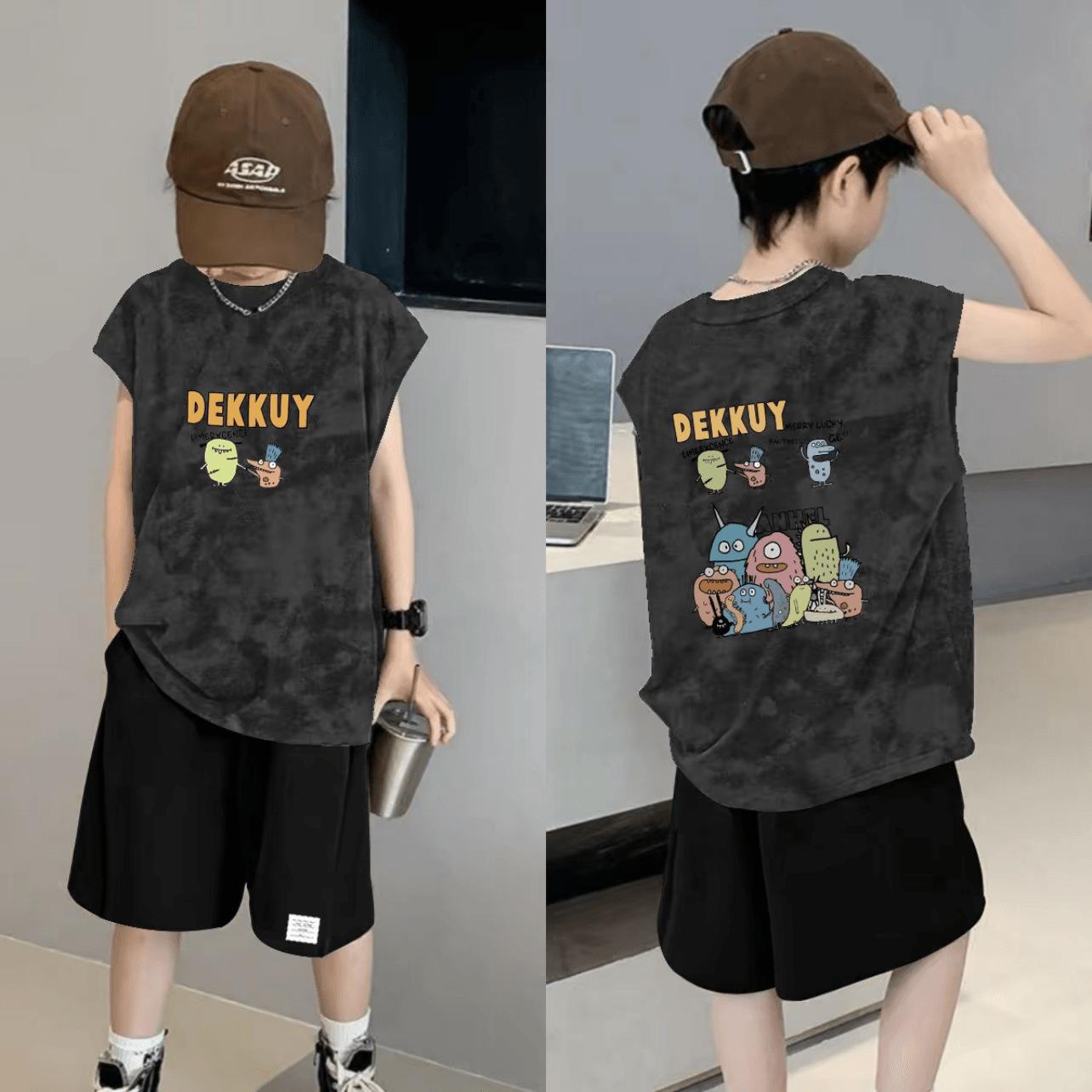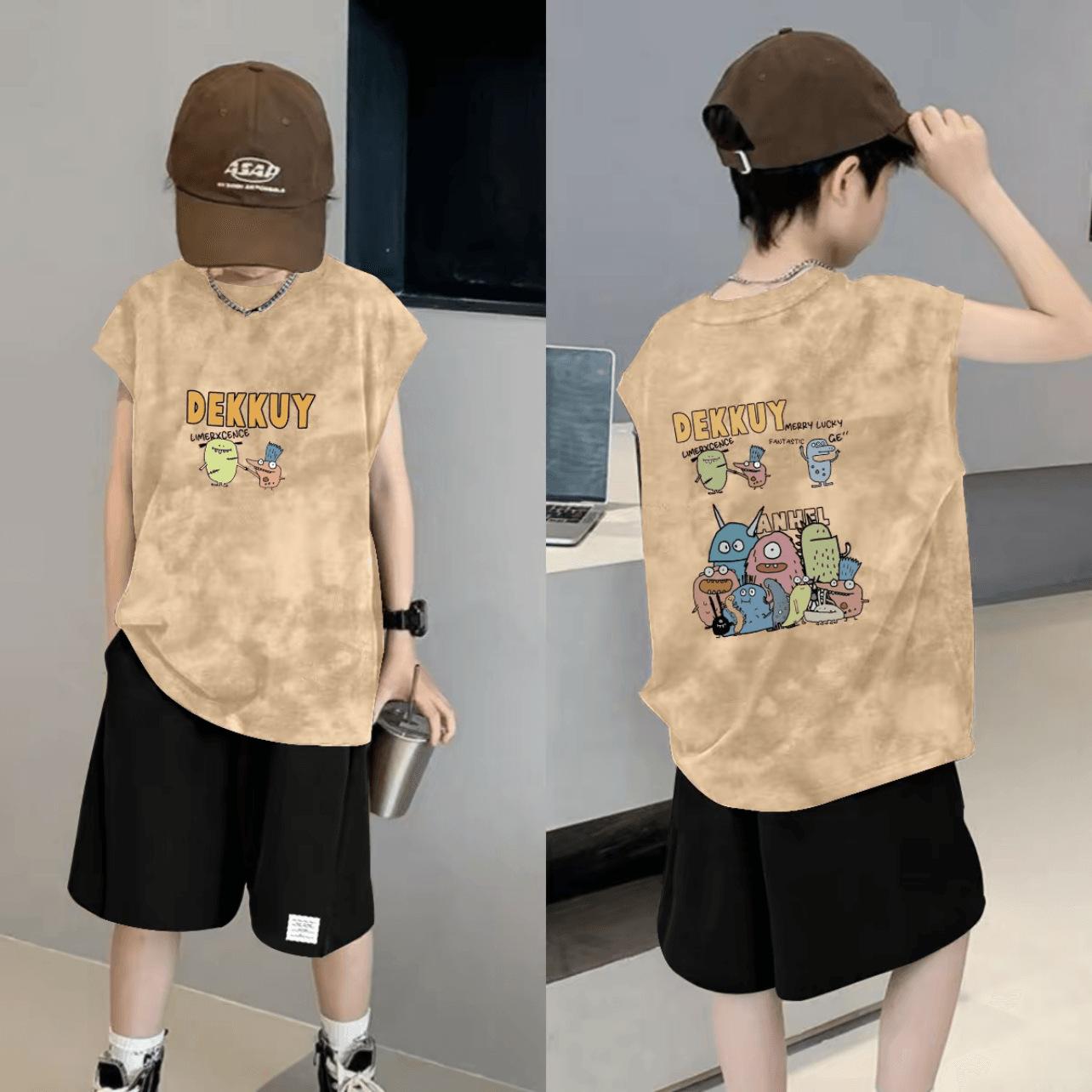 Chaleco sin mangas para niño 2025 Verano Nuevo Estilo Mediano y Grande Algodón Puro Tie-Dye Moderno Versátil Chaleco sin mangas
