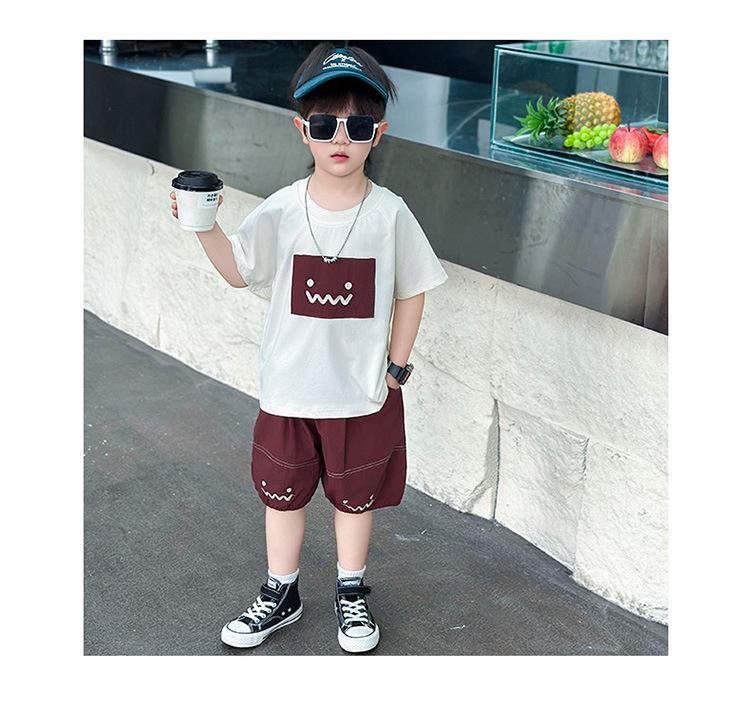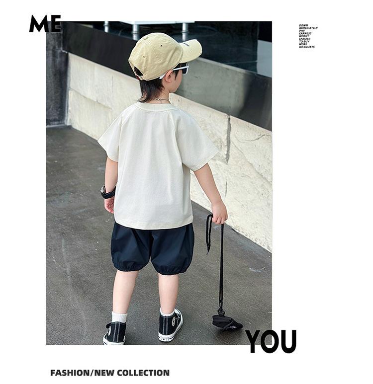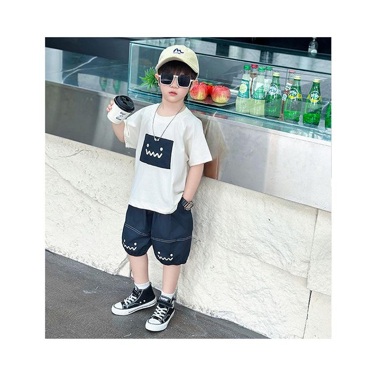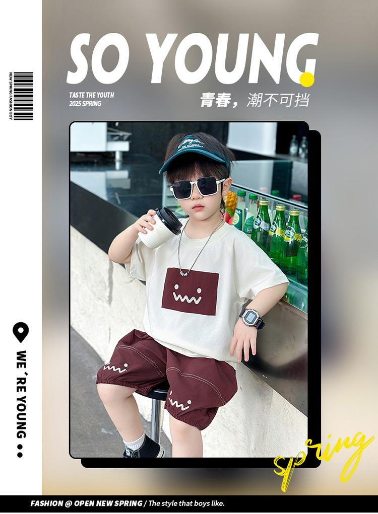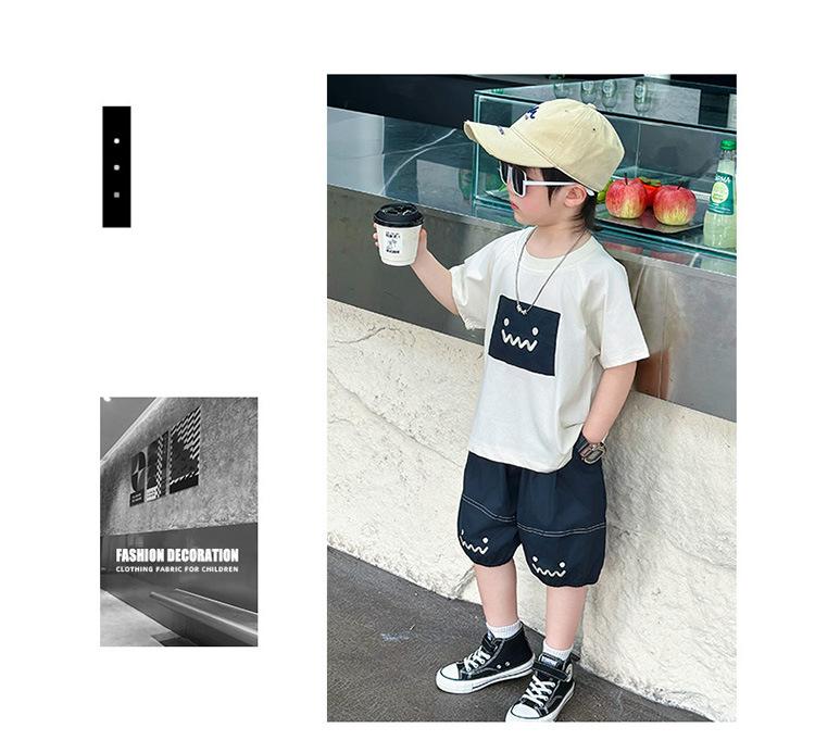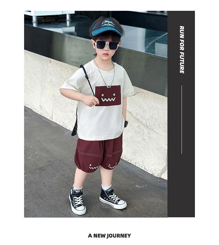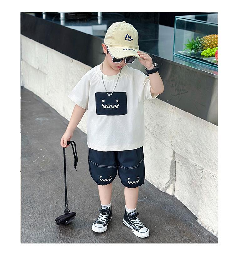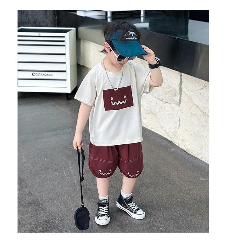 Traje de Verano de Manga Corta Bordado para Niño 2025 Nuevo Conjunto de Dos Piezas Infantil Guapo y a la Moda Ropa Infantil de Estilo Occidental