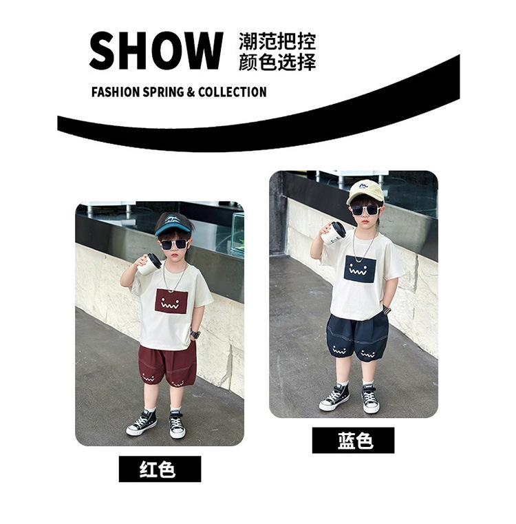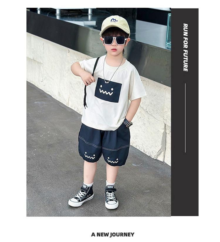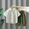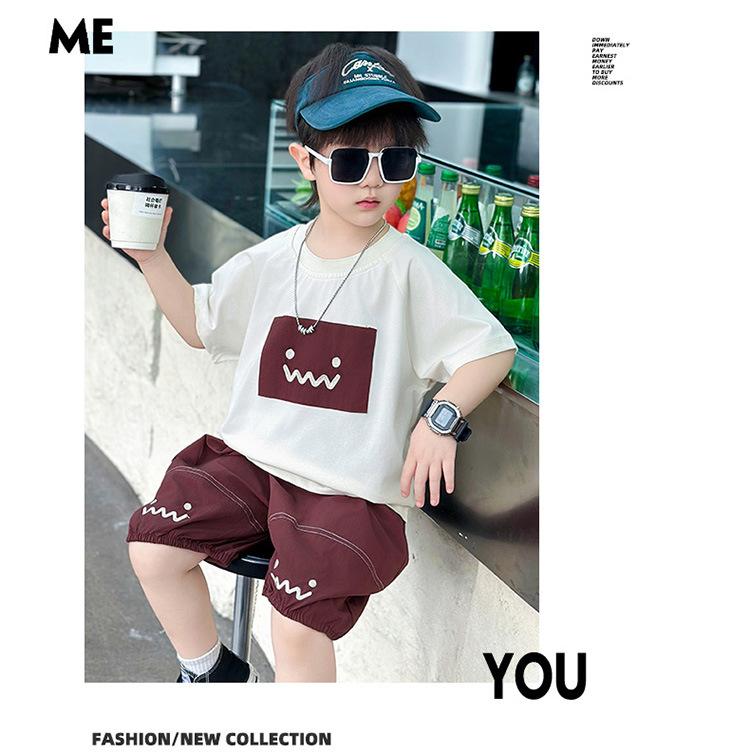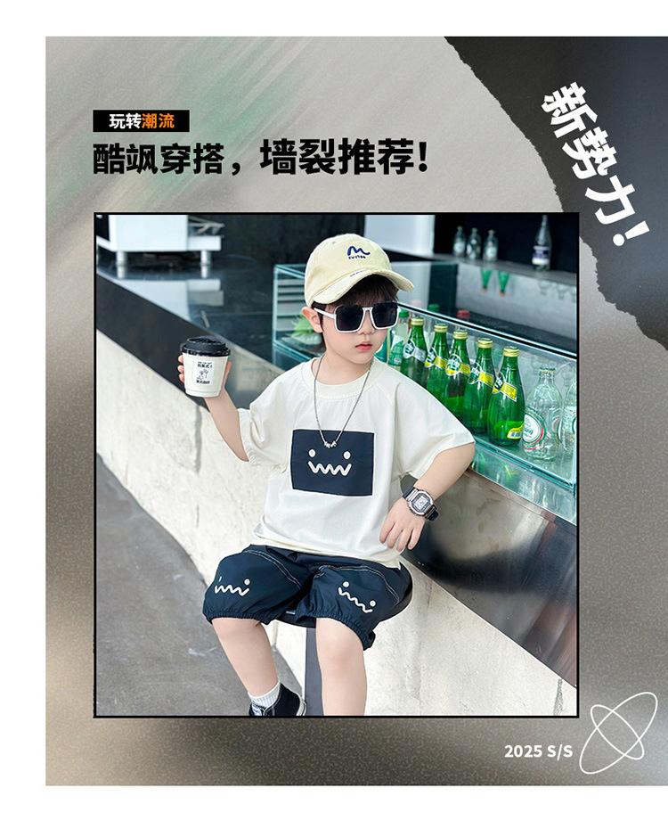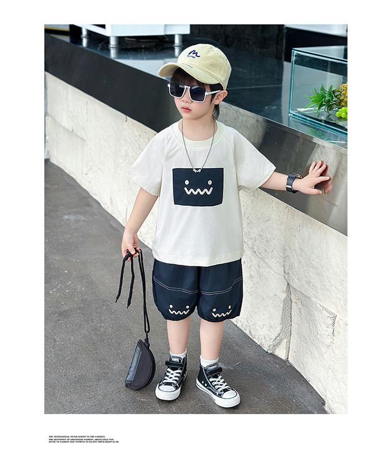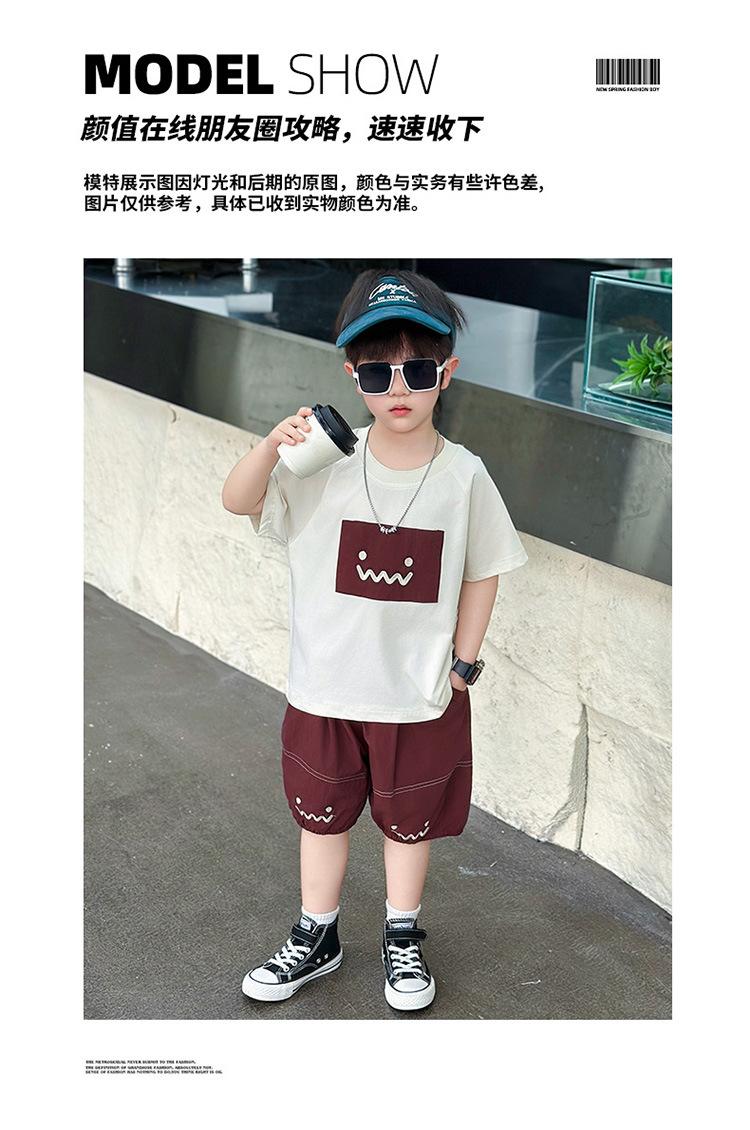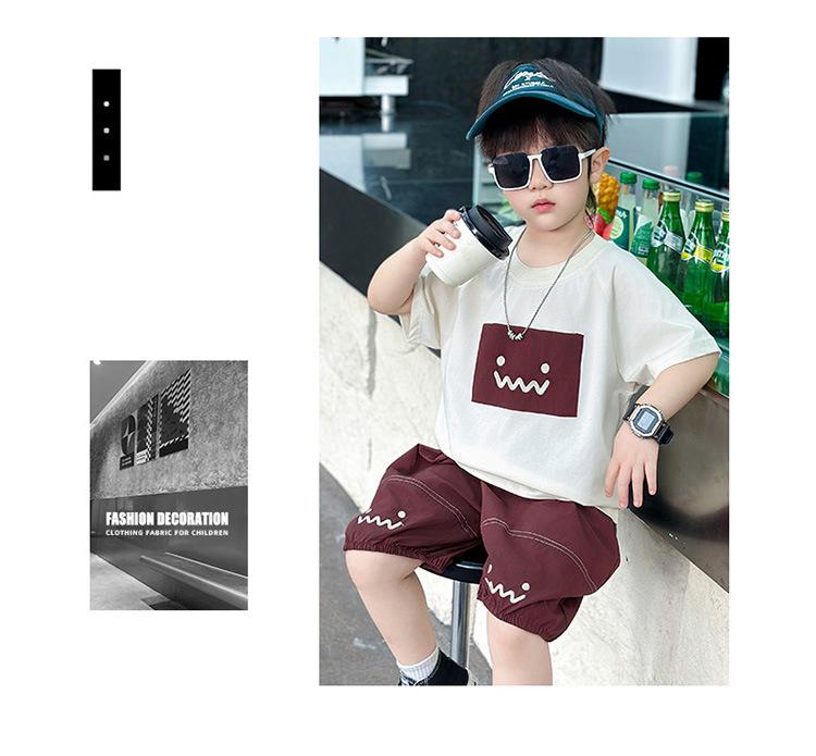 Traje de Verano de Manga Corta Bordado para Niño 2025 Nuevo Conjunto de Dos Piezas Infantil Guapo y a la Moda Ropa Infantil de Estilo Occidental