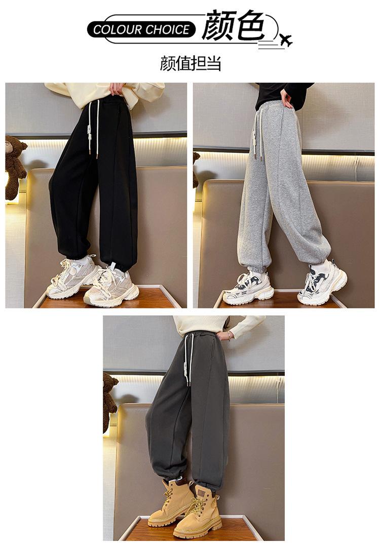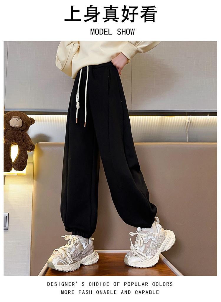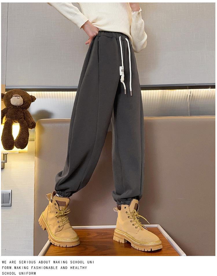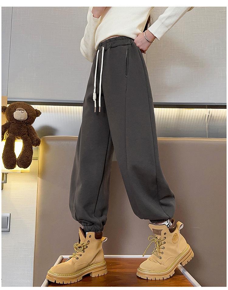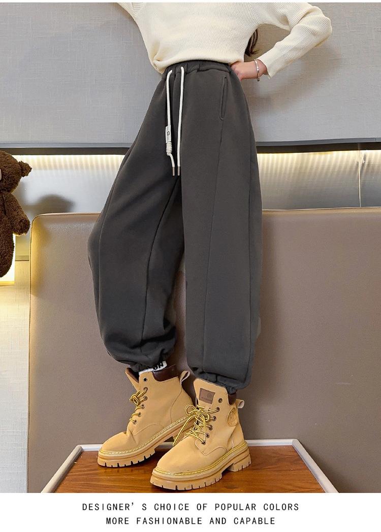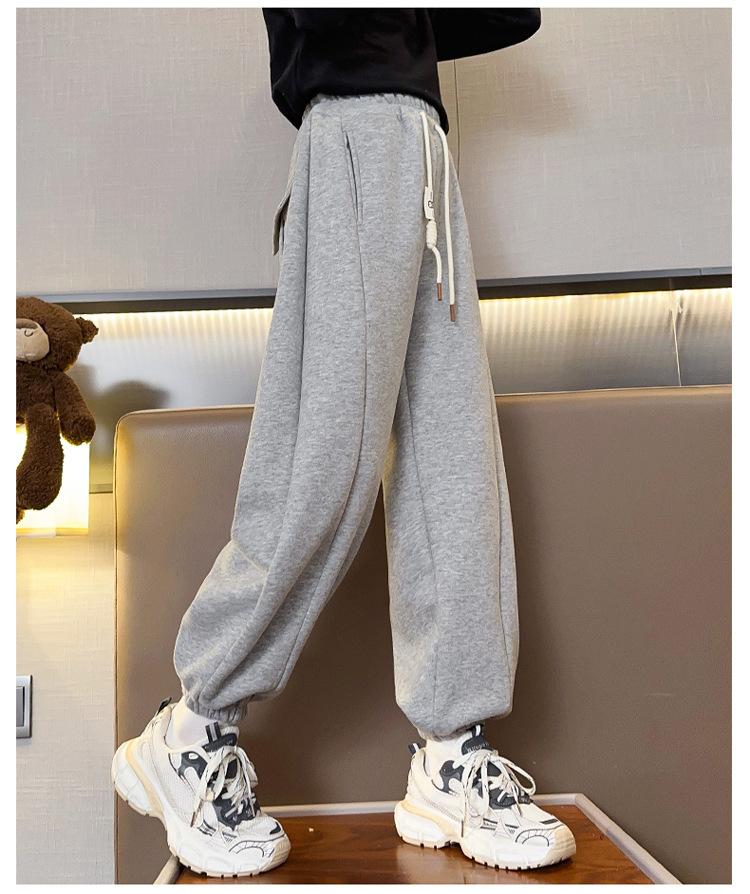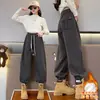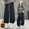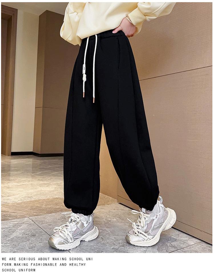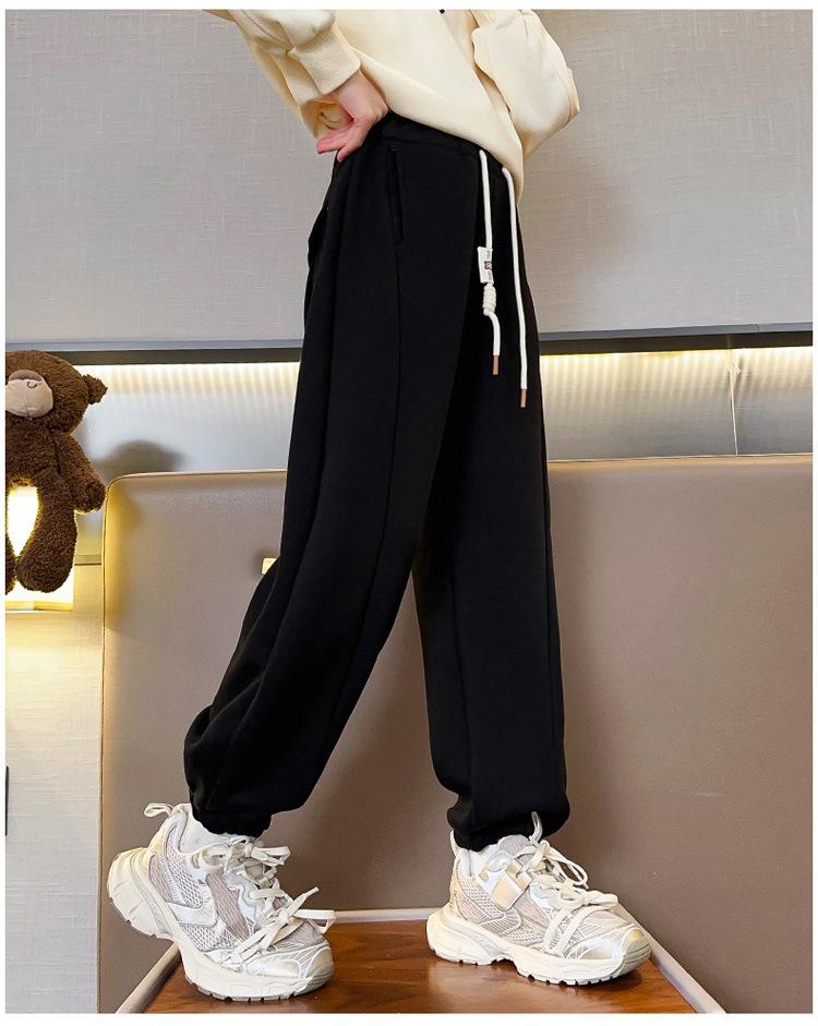 Pantalones de Chándal para Niñas Otoño e Invierno Color Sólido con Cordón Joggers 2025 Nuevo Estilo Modernos Pantalones Afelpados con Puños para Niños Mayores