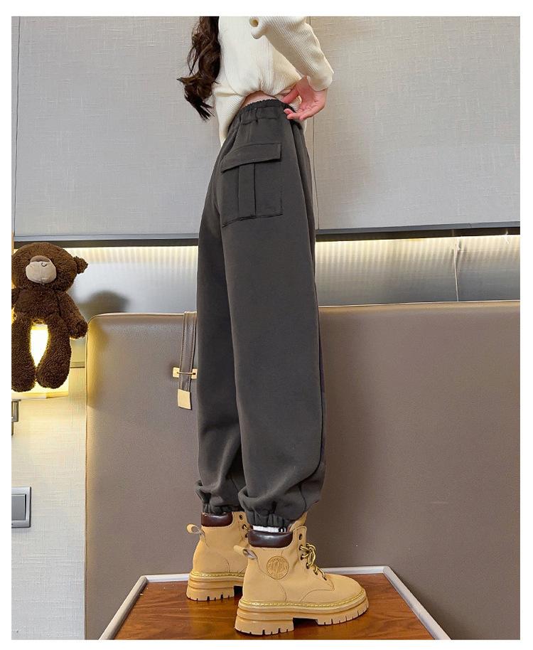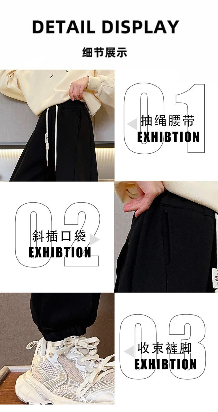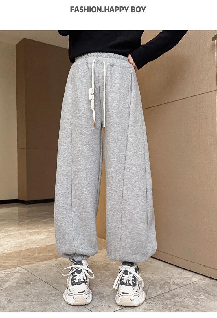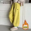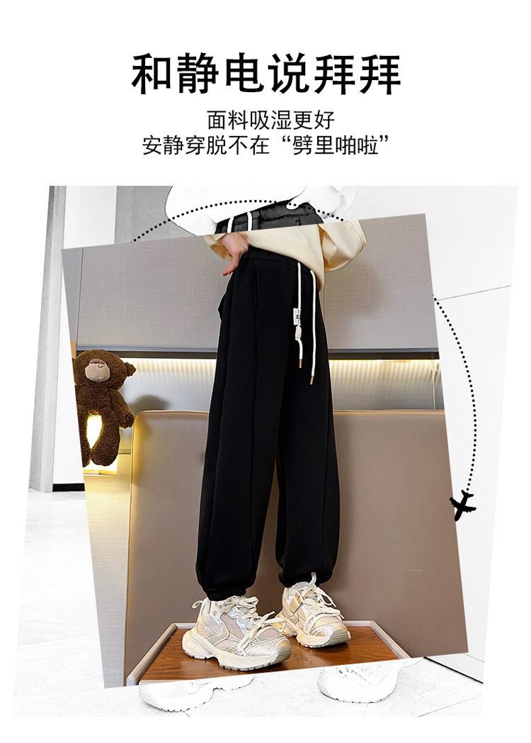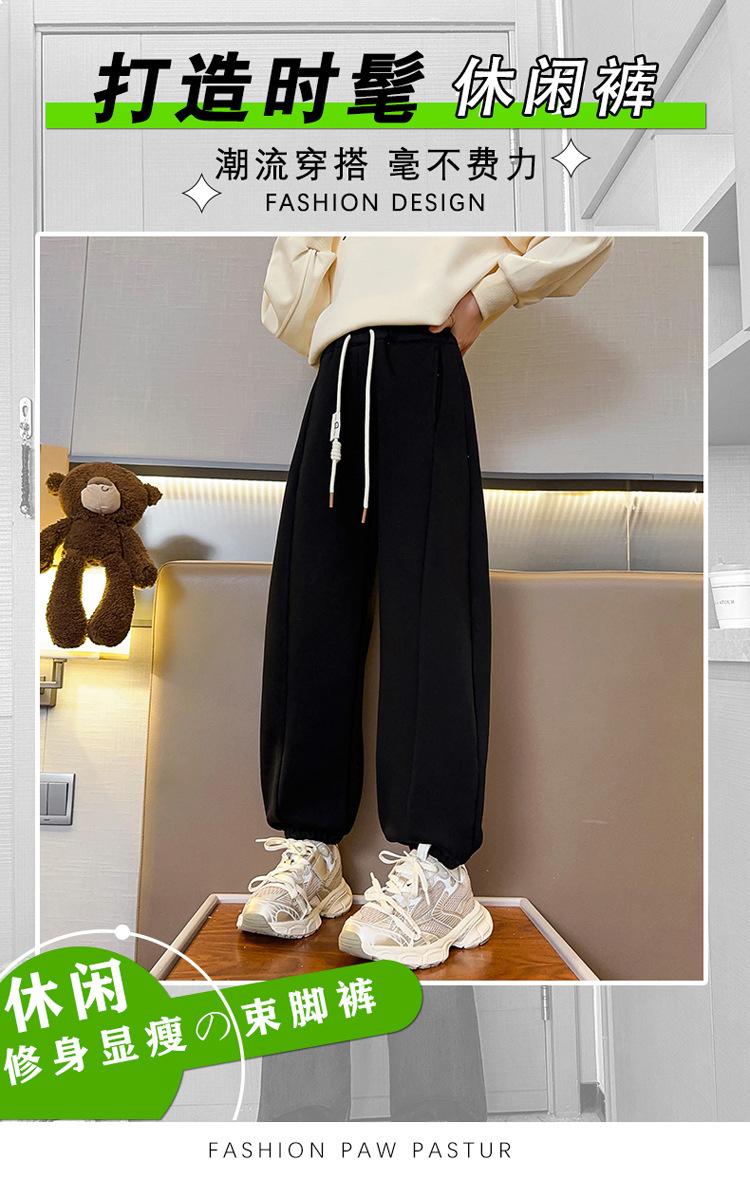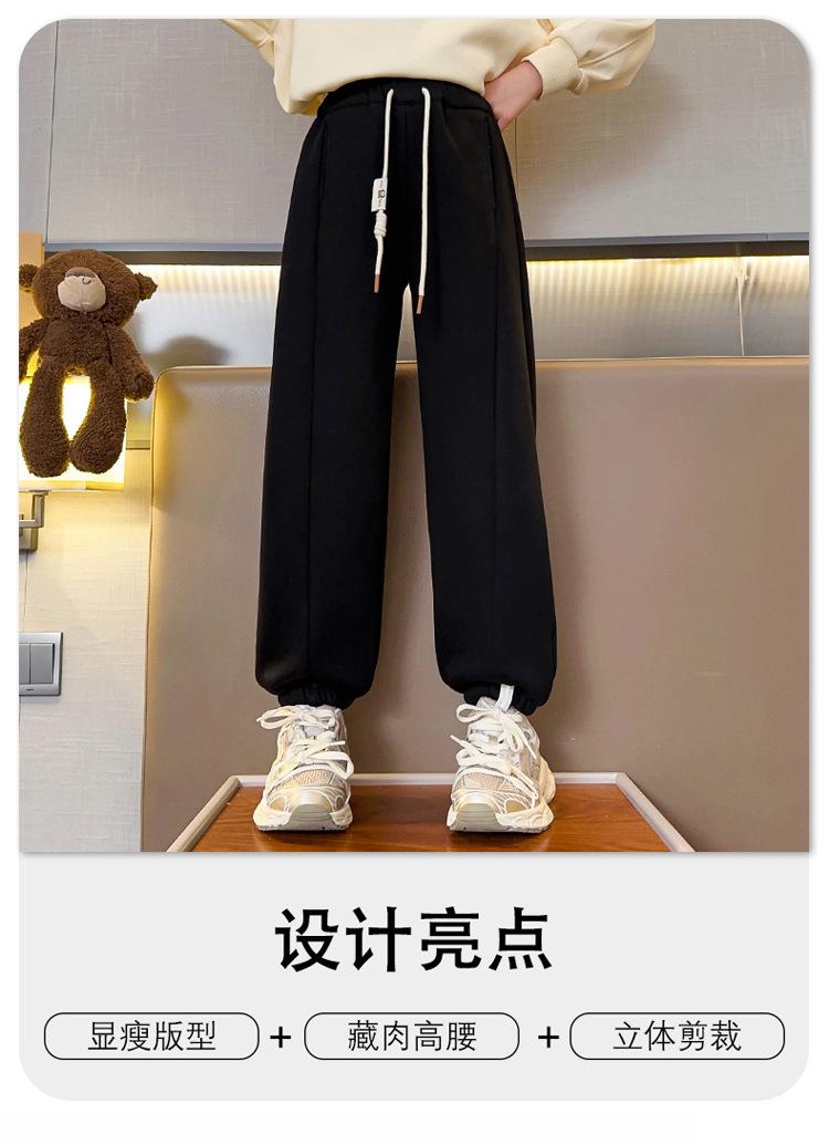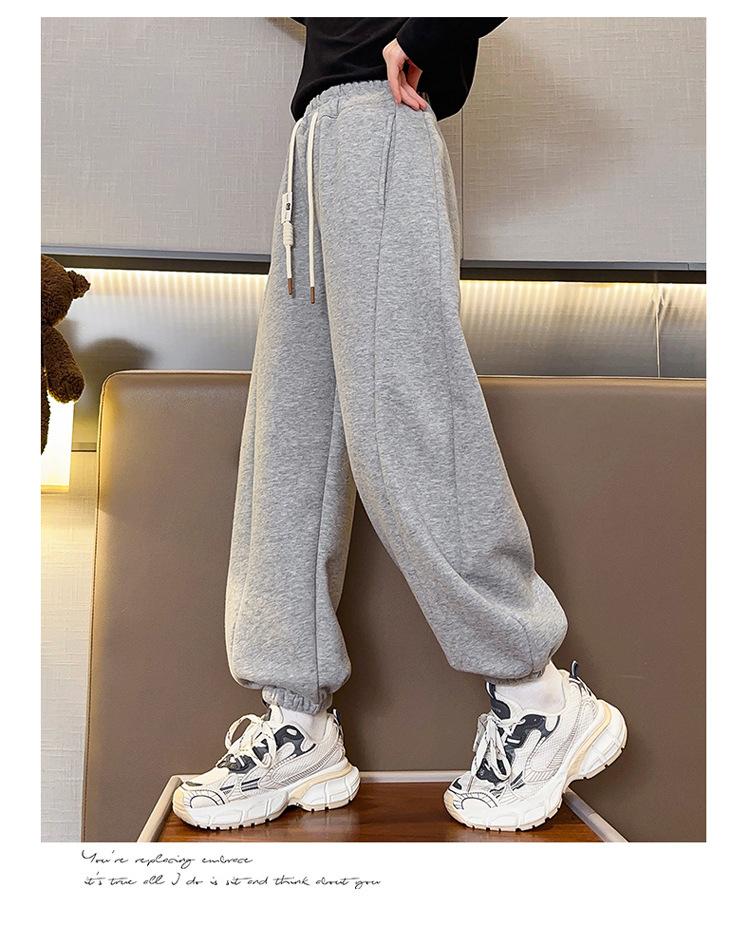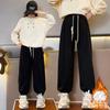 Pantalones de Chándal para Niñas Otoño e Invierno Color Sólido con Cordón Joggers 2025 Nuevo Estilo Modernos Pantalones Afelpados con Puños para Niños Mayores