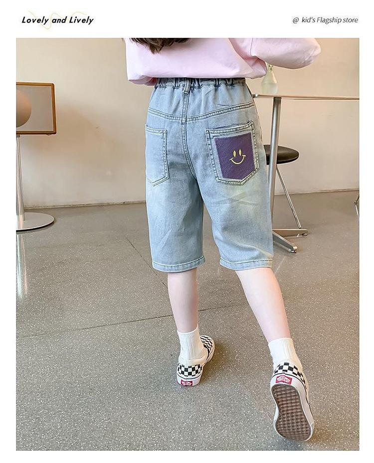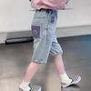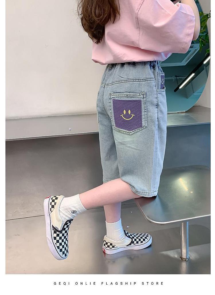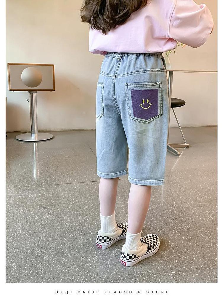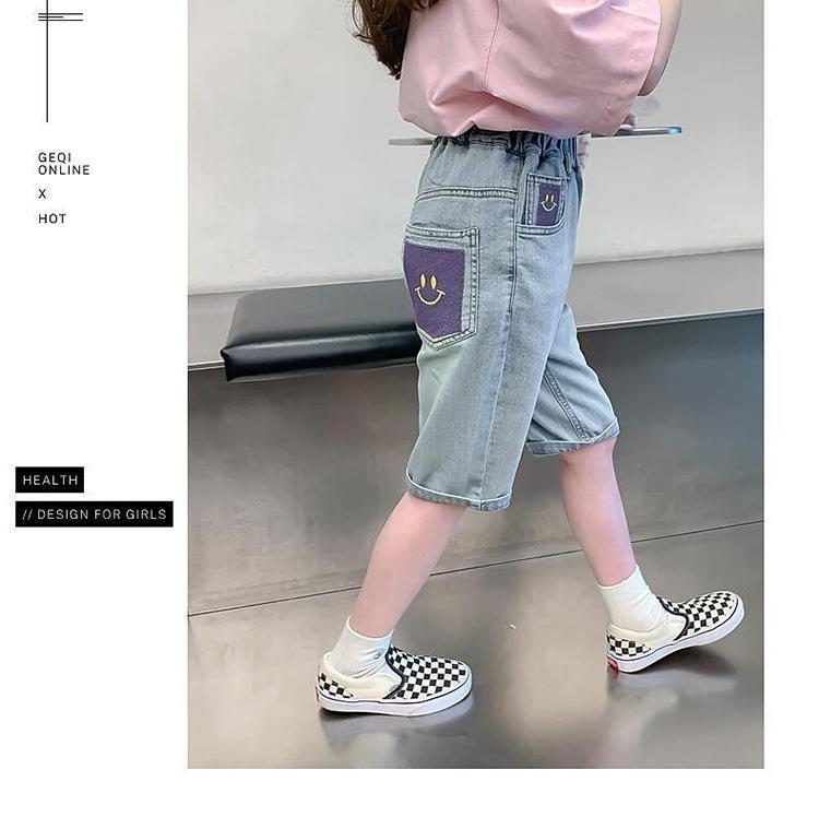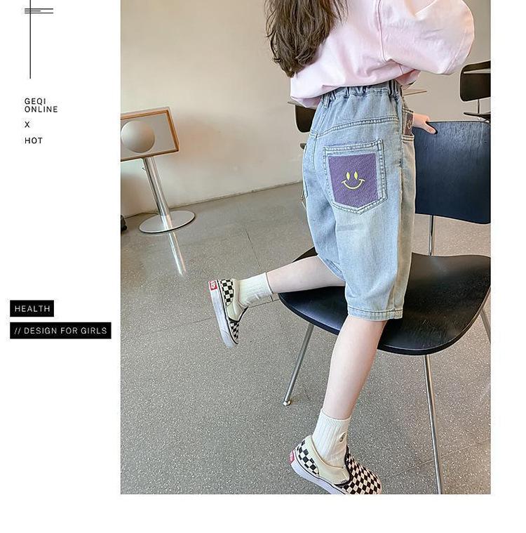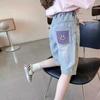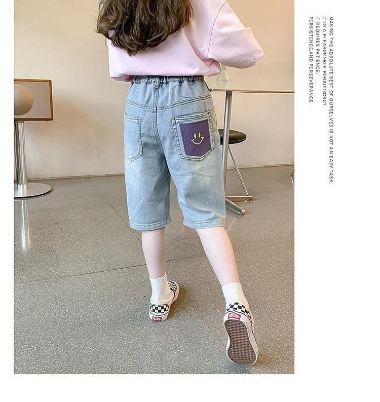 Shorts de mezclilla para niña, delgados de verano, nuevo estilo, shorts holgados de pierna recta para niñas mayores y niñas pequeñas, pantalones de cinco puntos a la moda