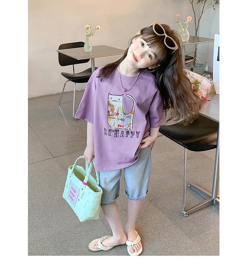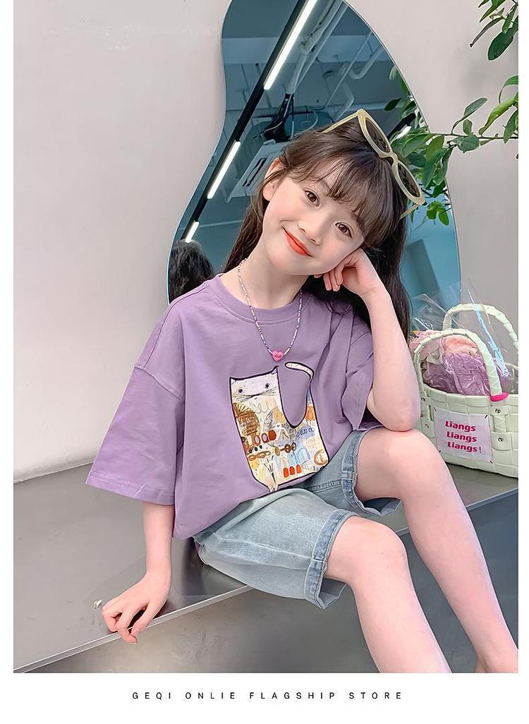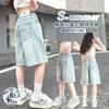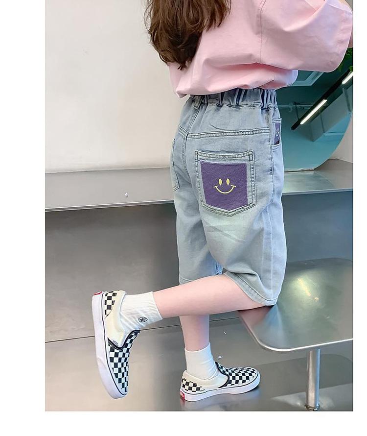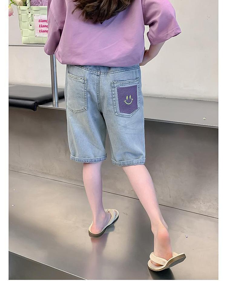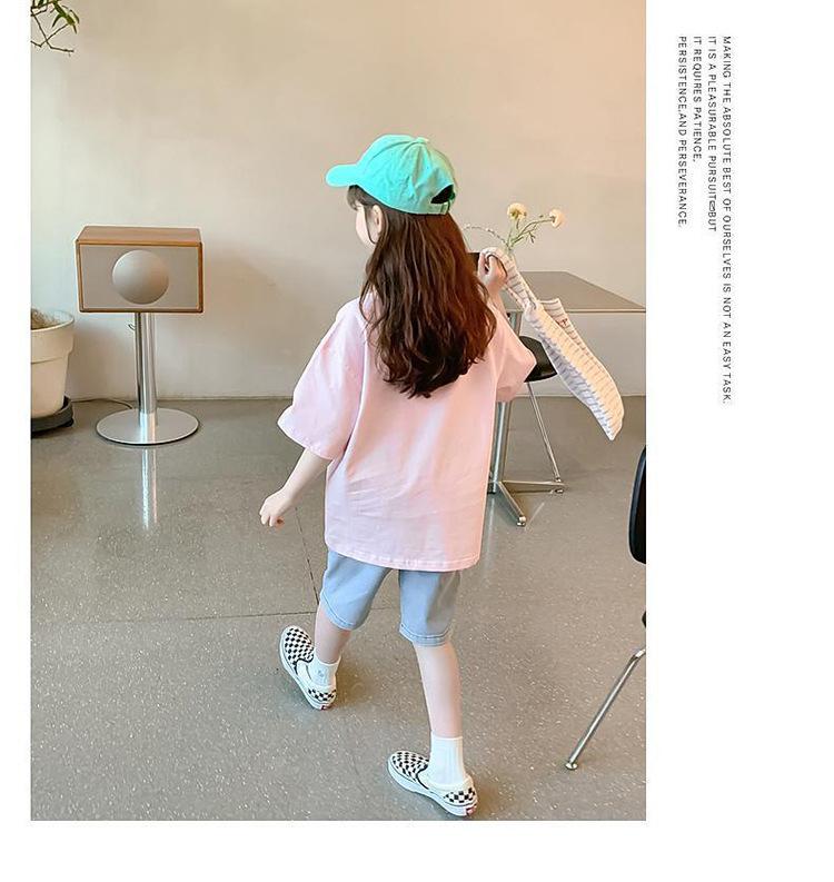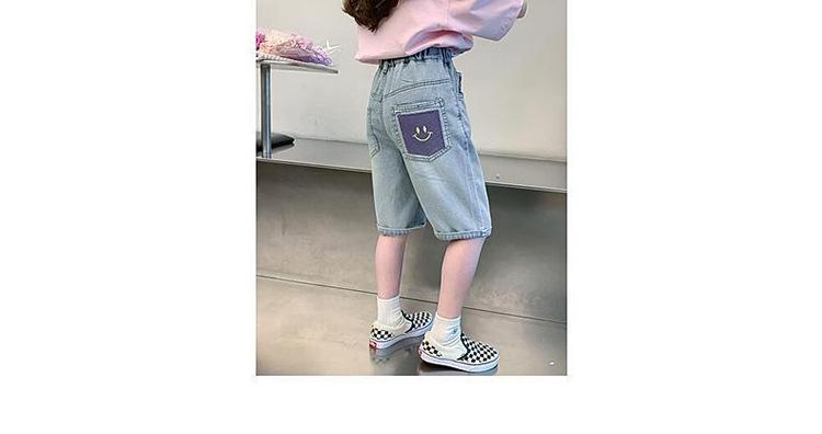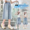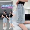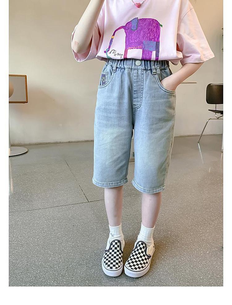 Shorts de mezclilla para niña, delgados de verano, nuevo estilo, shorts holgados de pierna recta para niñas mayores y niñas pequeñas, pantalones de cinco puntos a la moda