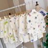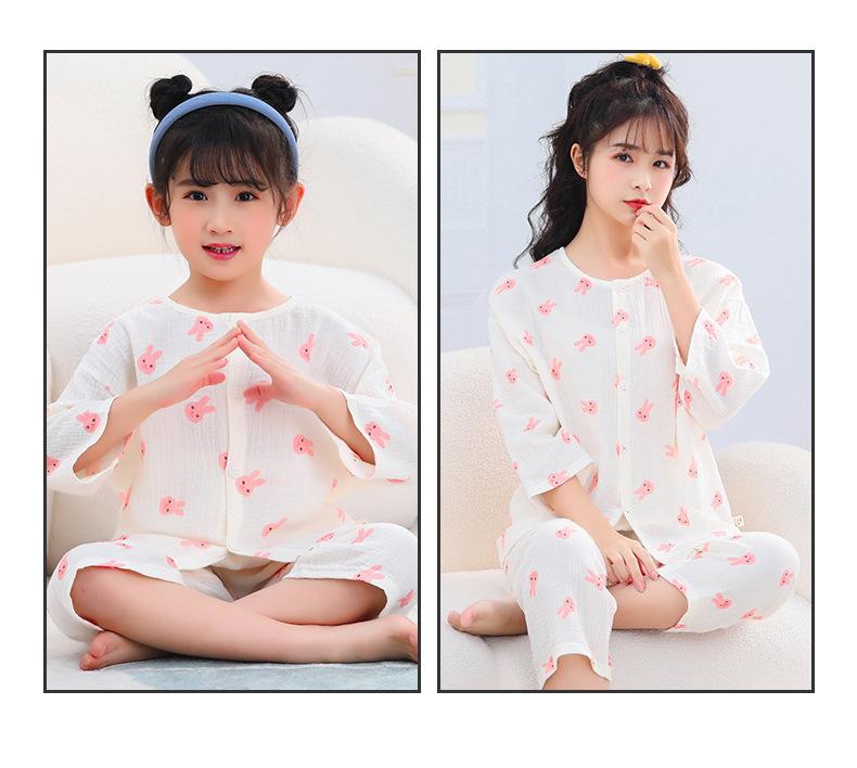 Pijamas para niños, Ropa para el hogar para niños, Ropa familiar, Trajes de manga corta de algodón puro para verano para niñas, Ropa para bebés y niños medianos y grandes para aire acondicionado