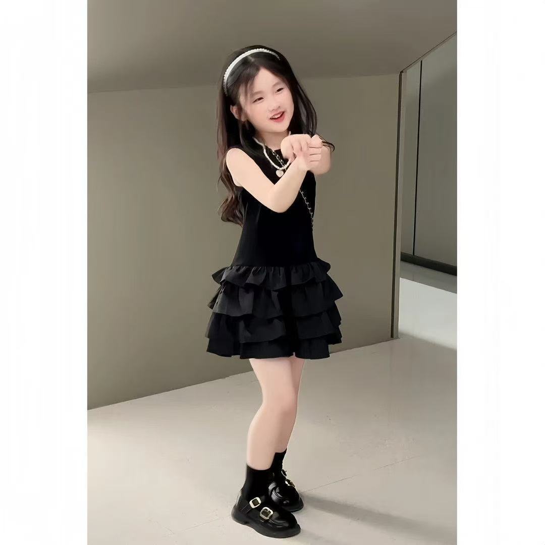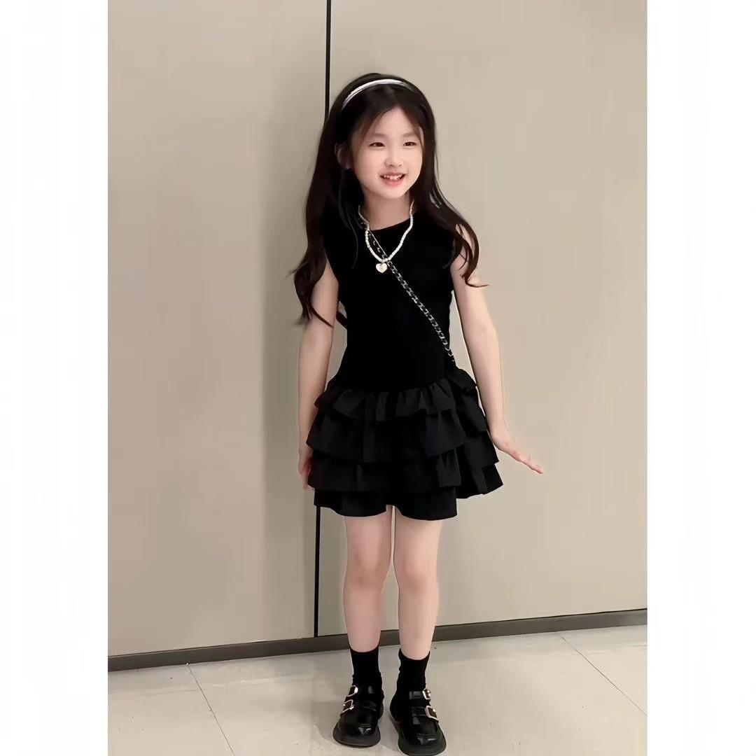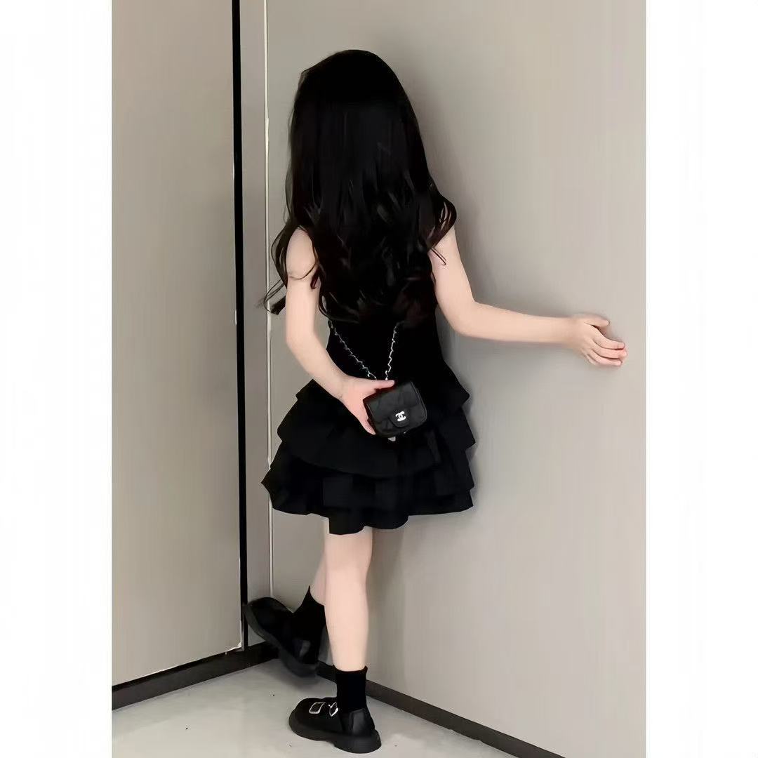 Vestido de Verano para Niñas Estilo Hepburn Francés Vestido Elegante para Niños Falda Pastel Chaleco de Verano para Niñas Falda de Princesa