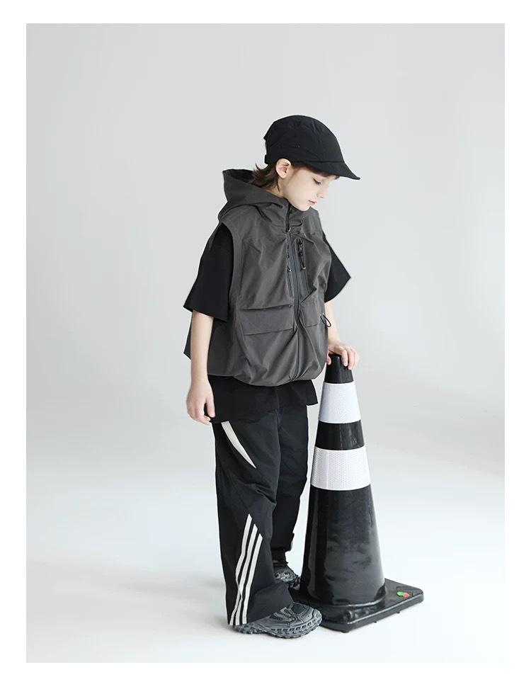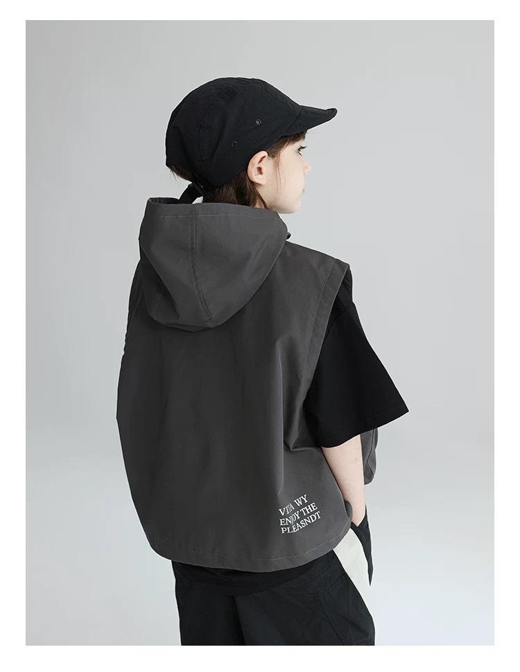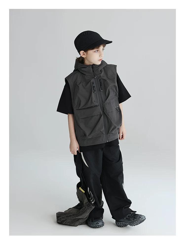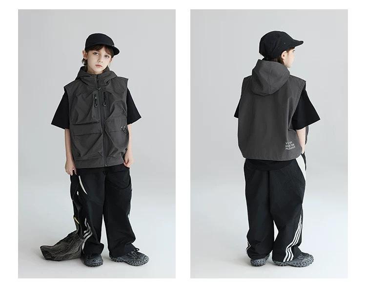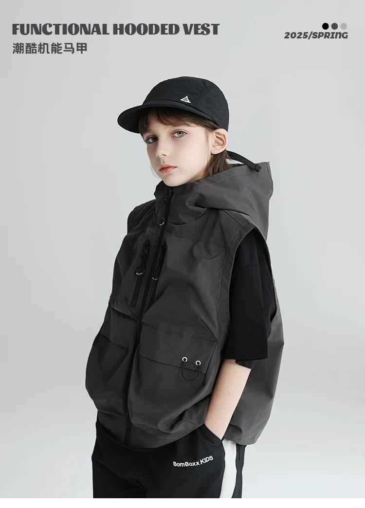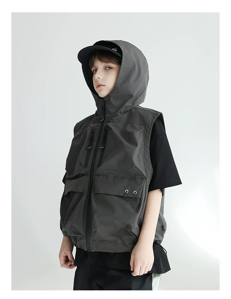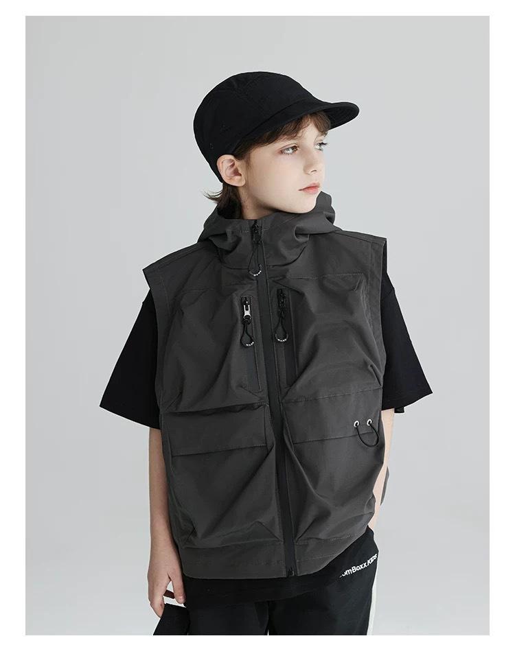 Marca de Moda Infantil Funcional Multibolsillos Bebé Verano Sin Mangas Niños 2025 Nuevo Chaleco Cargo con Capucha