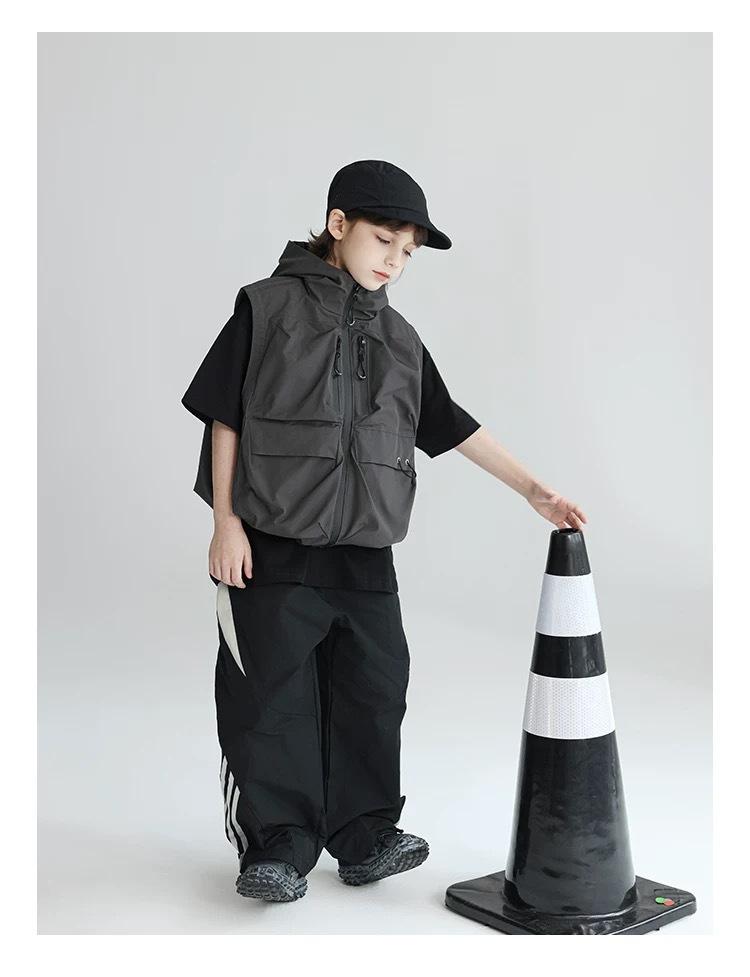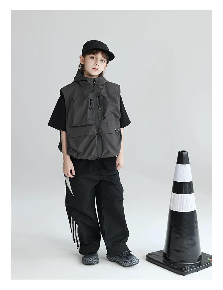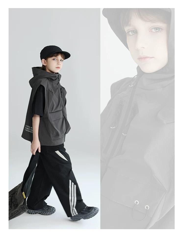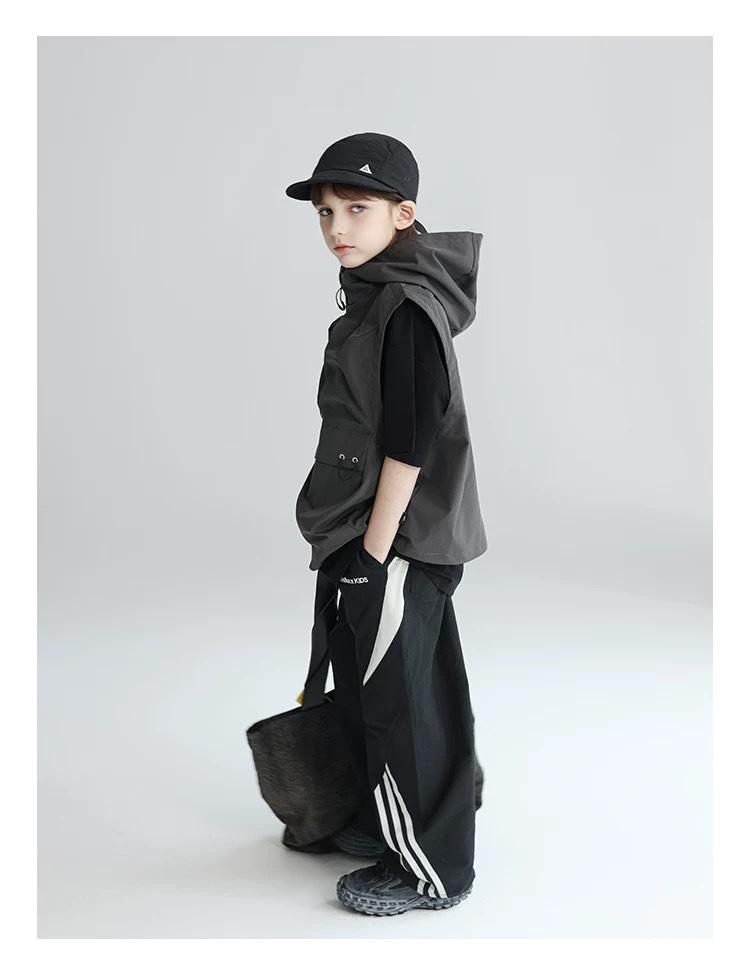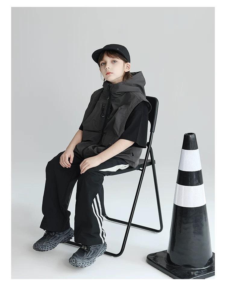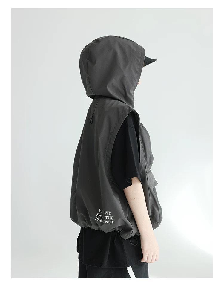 Marca de Moda Infantil Funcional Multibolsillos Bebé Verano Sin Mangas Niños 2025 Nuevo Chaleco Cargo con Capucha