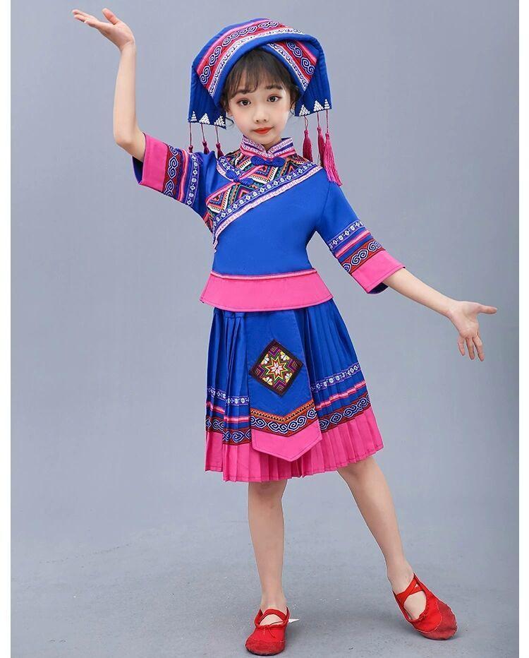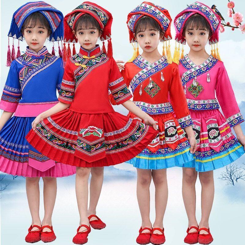 Nuevos Disfraces Étnicos Minoritarios para Niñosren 3 de Marzo Disfraces de Danza Zhuang y Miao para Niñas Disfraces Tujia e Yi