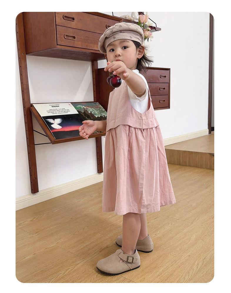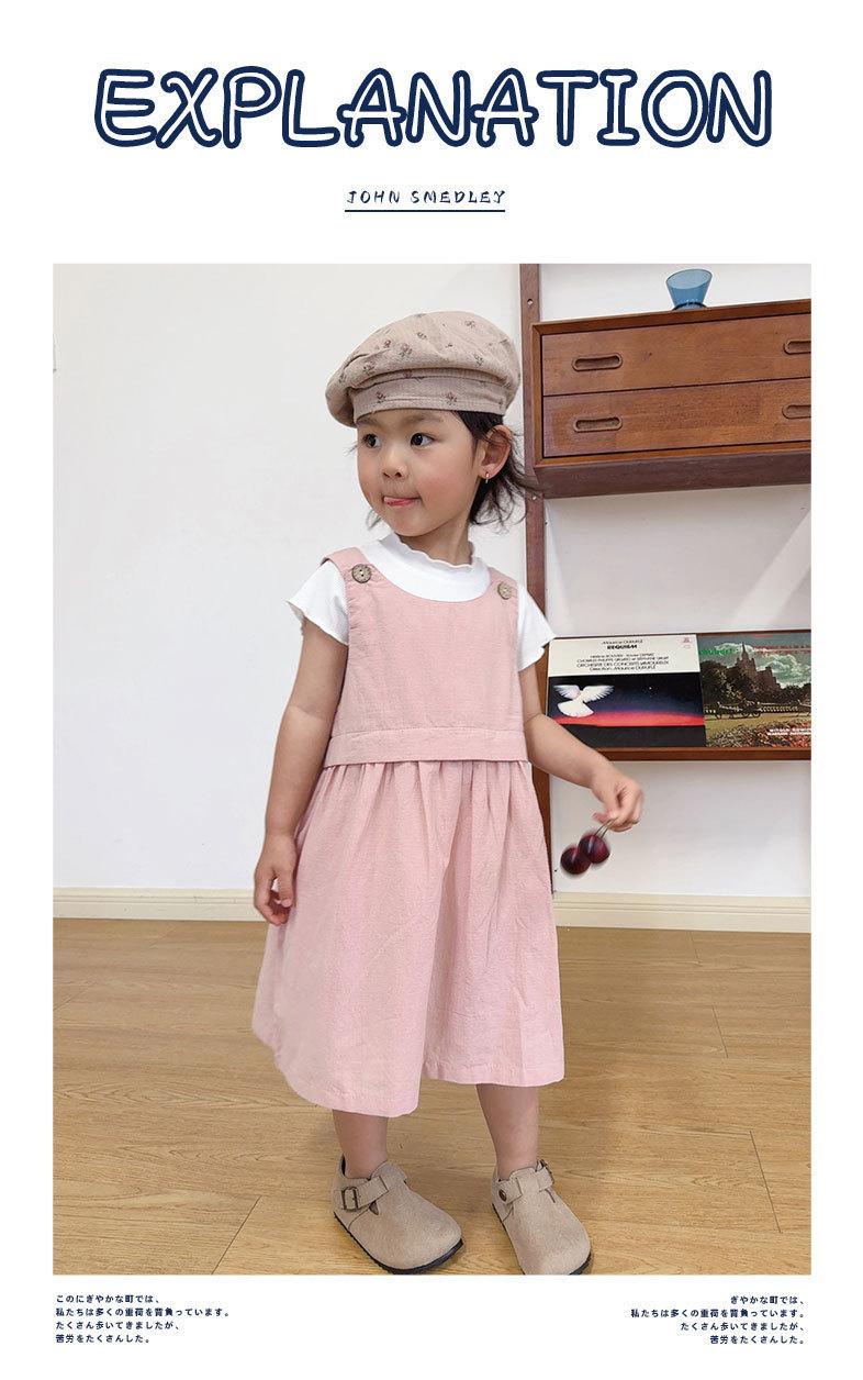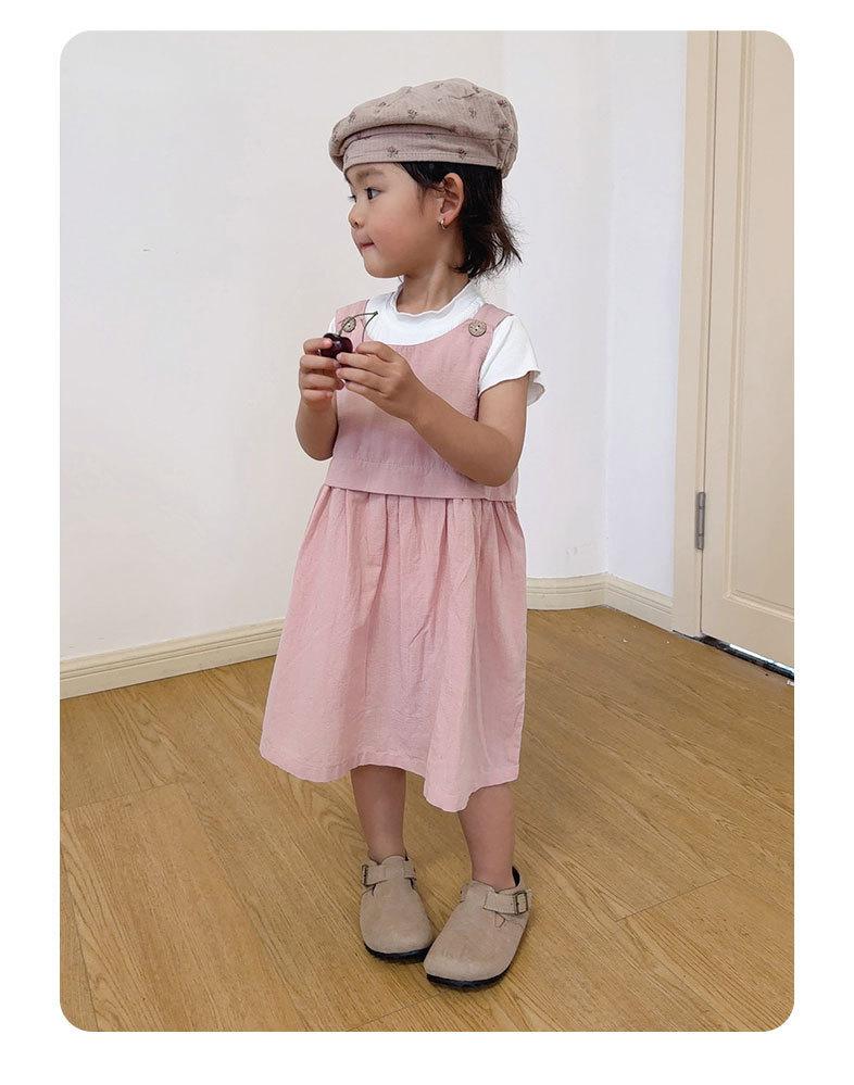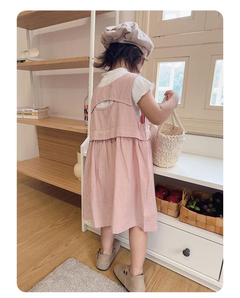 Vestido para Niñas 2025 Verano Nuevo Vestido Rosa Infantil Falso de Dos Piezas Vestido de Tirantes Estilo Chaleco para Bebé