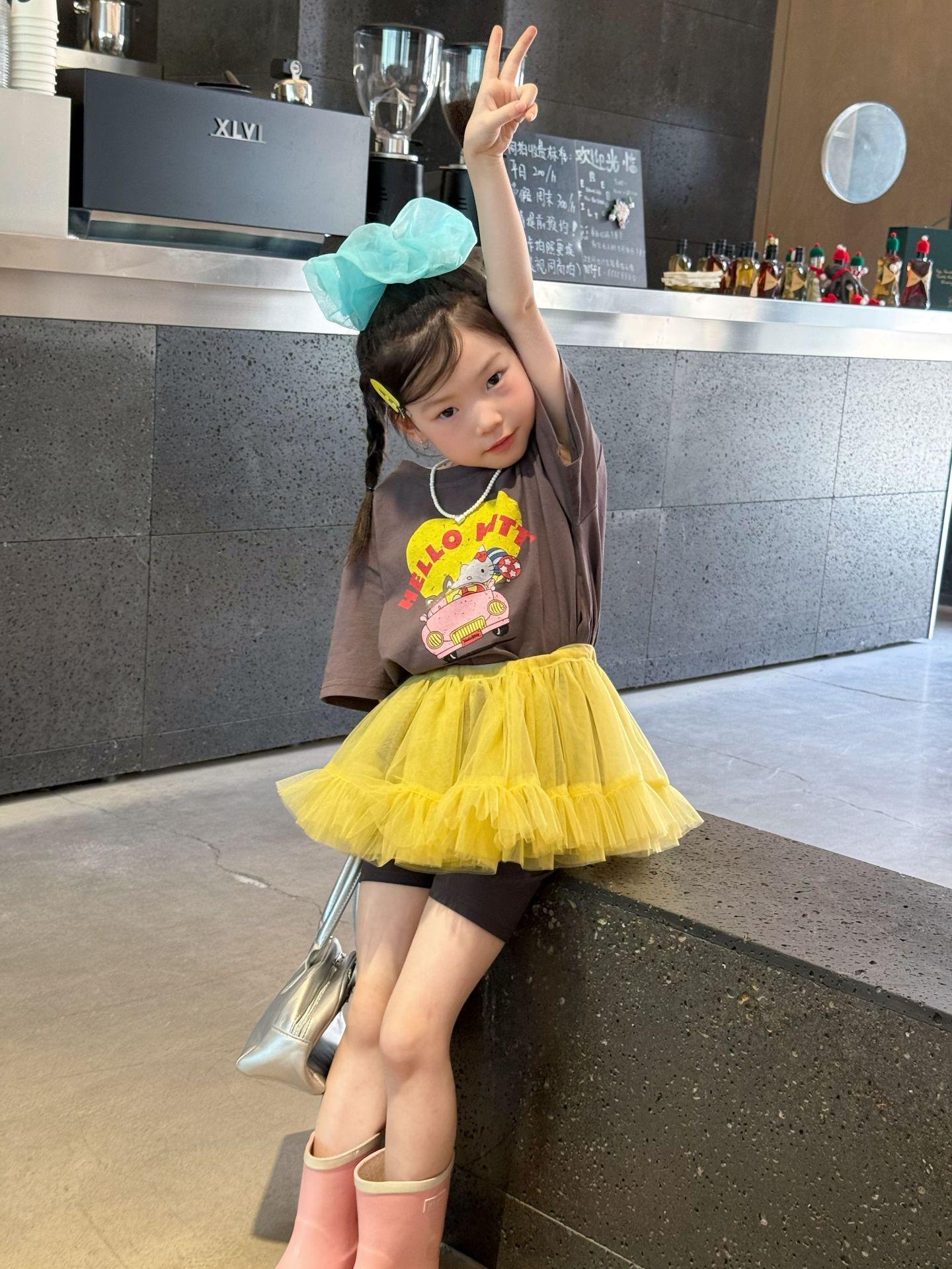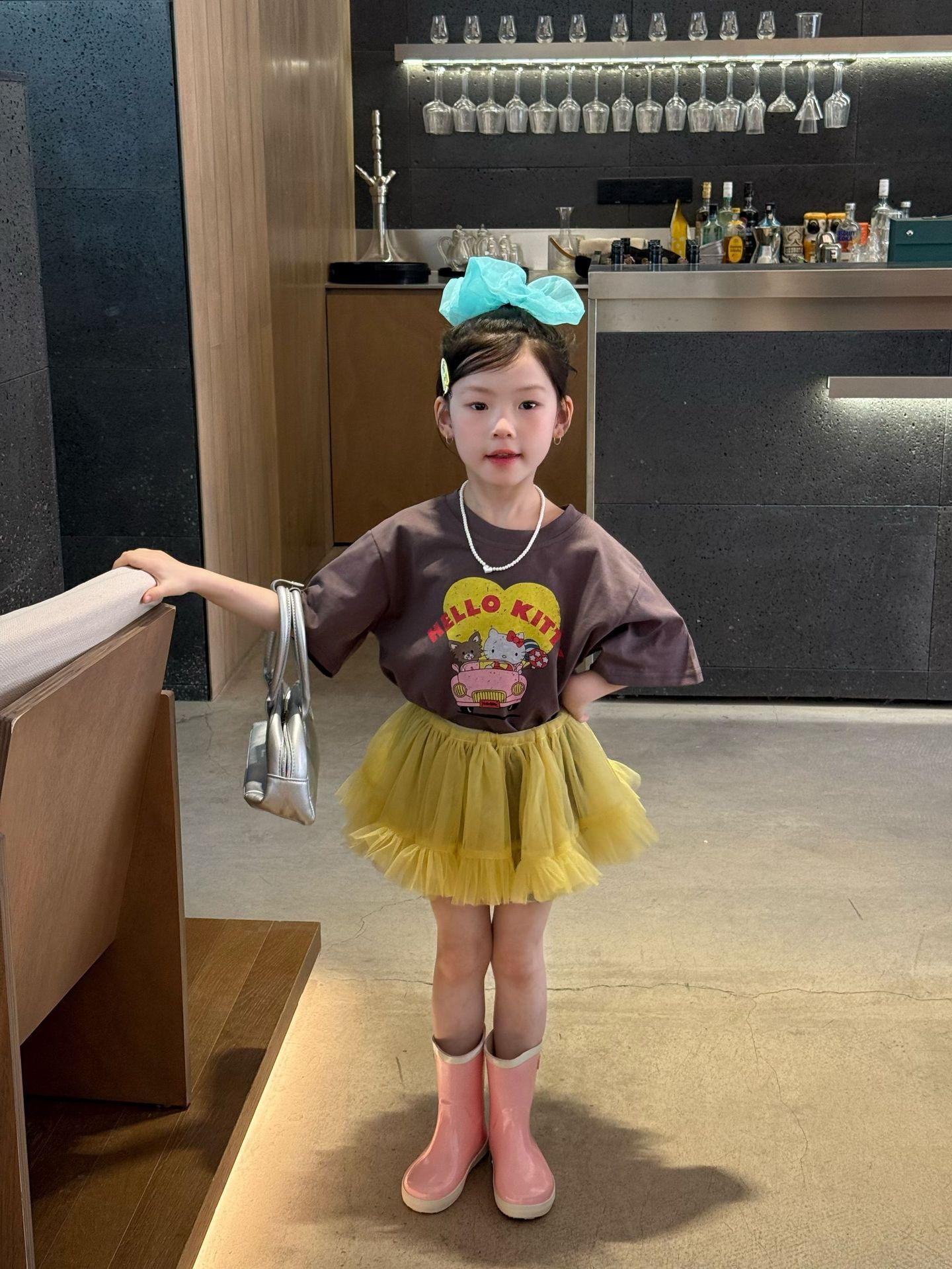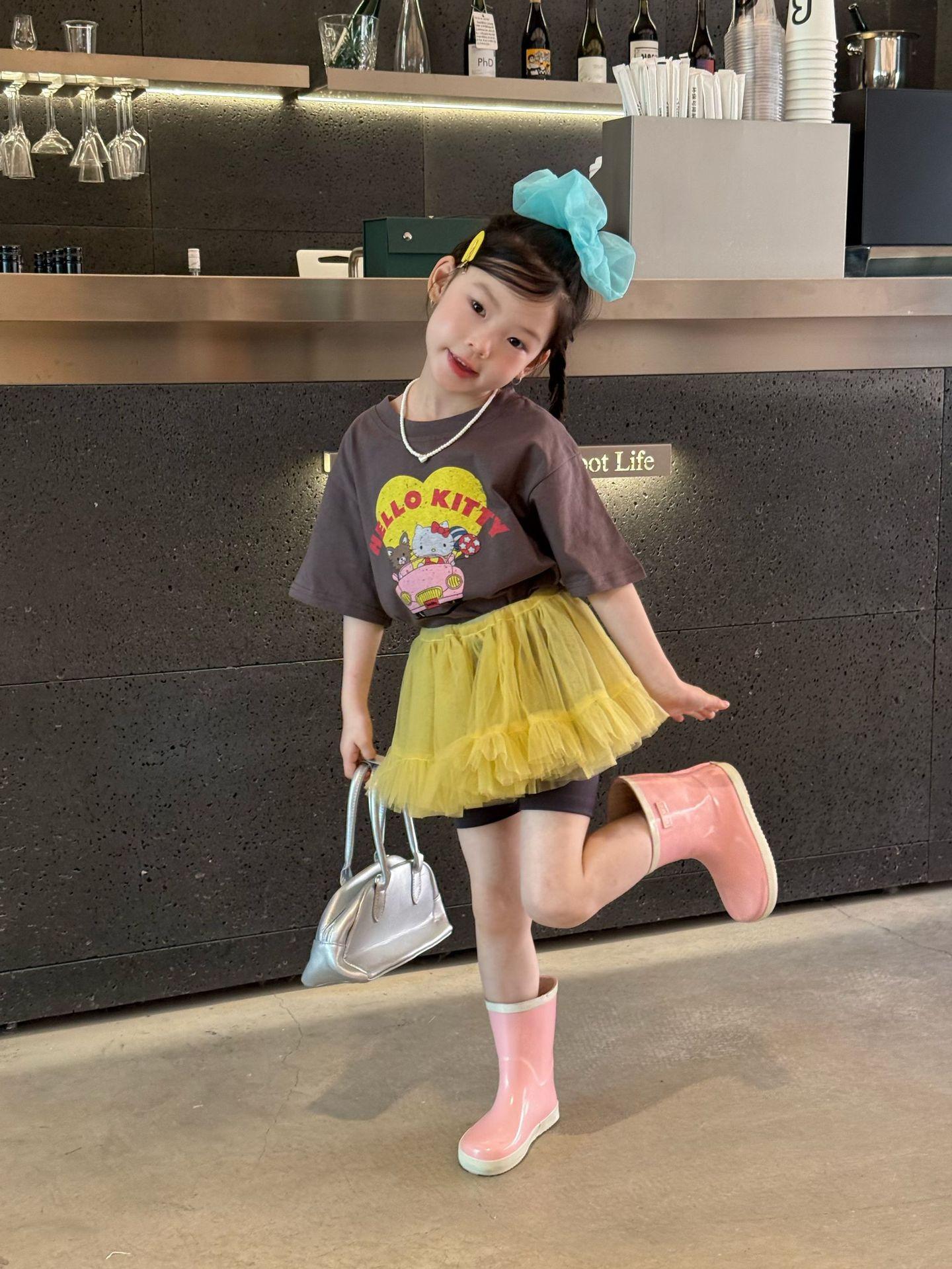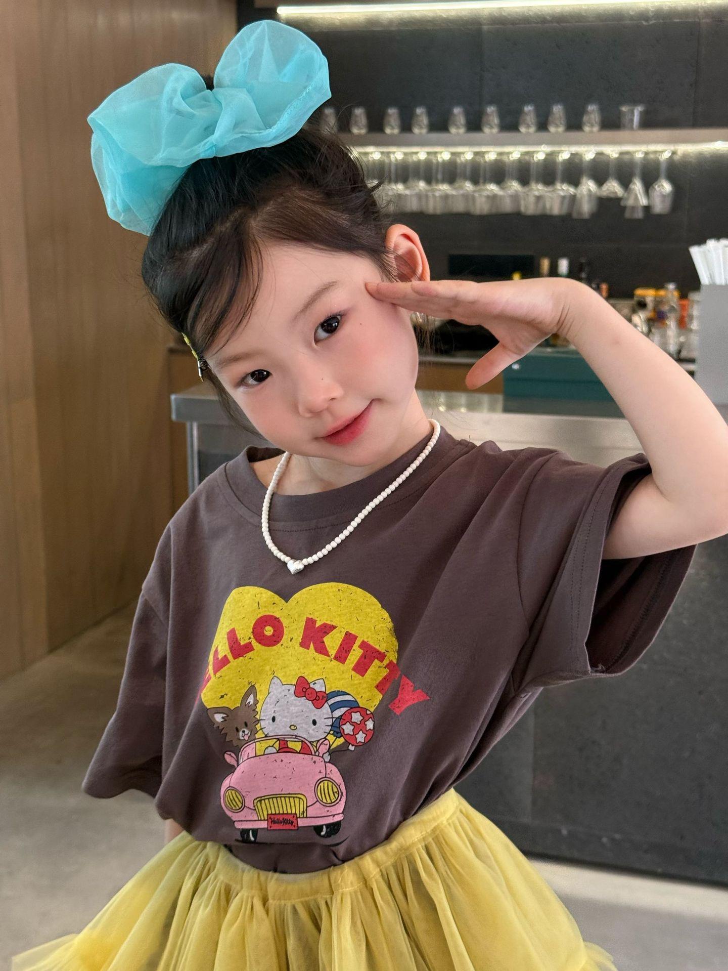 2025 verano nueva ropa para niños ropa coreana para niños camisetas de manga corta con estampado de dibujos animados para niñas camiseta de moda verano