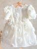 Vestido de Princesa con Mangas Abullonadas para Niñas 2026 Nuevo Estilo Sencillo Dulce Lindo Floral Blanco Vestido para Bebé de un Año Verano