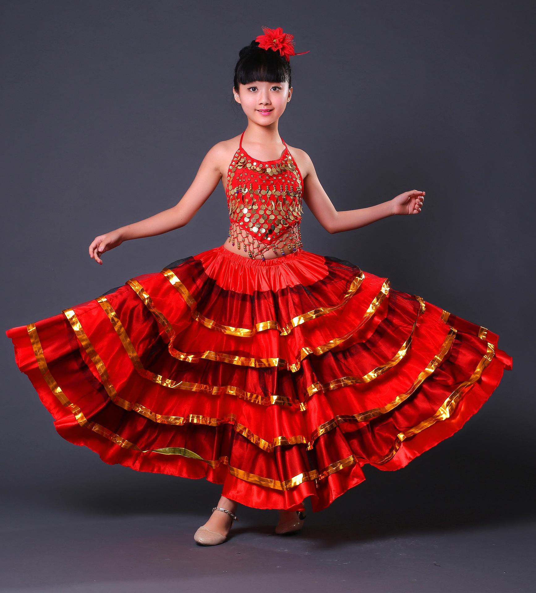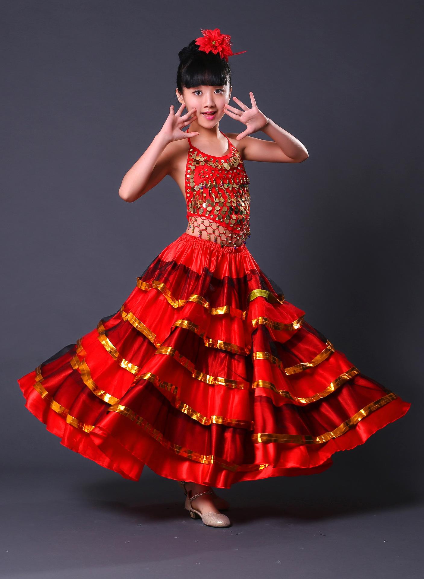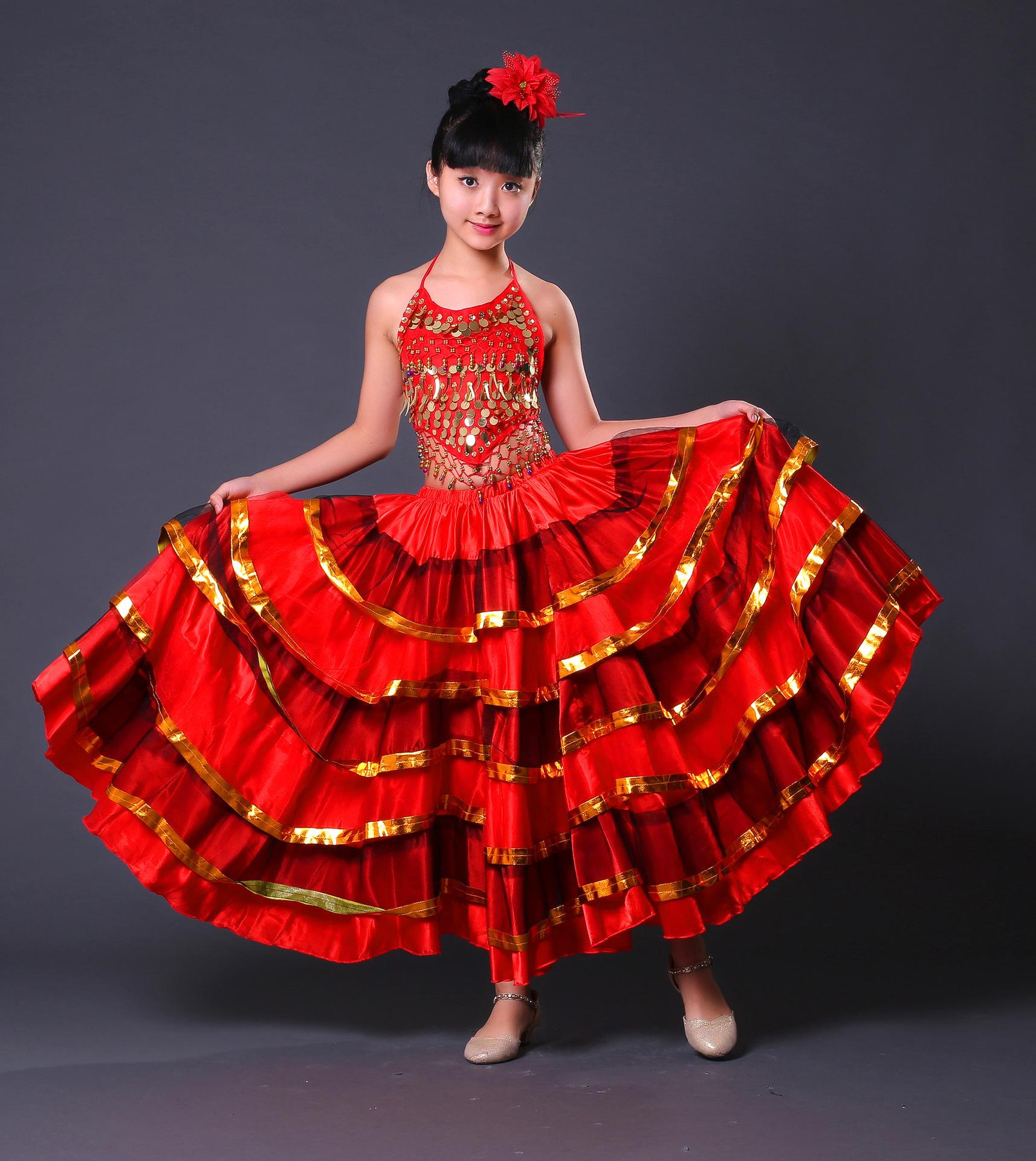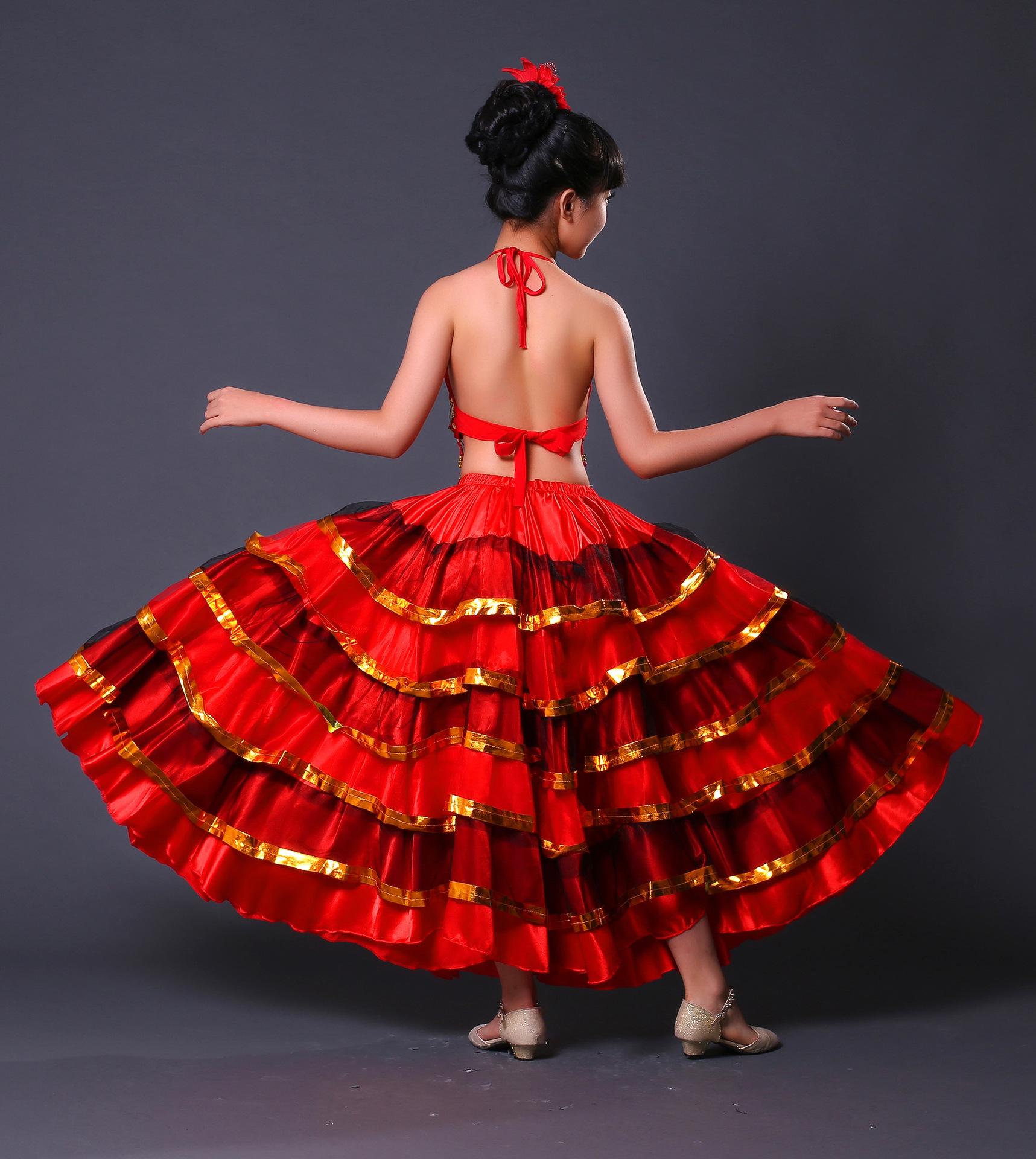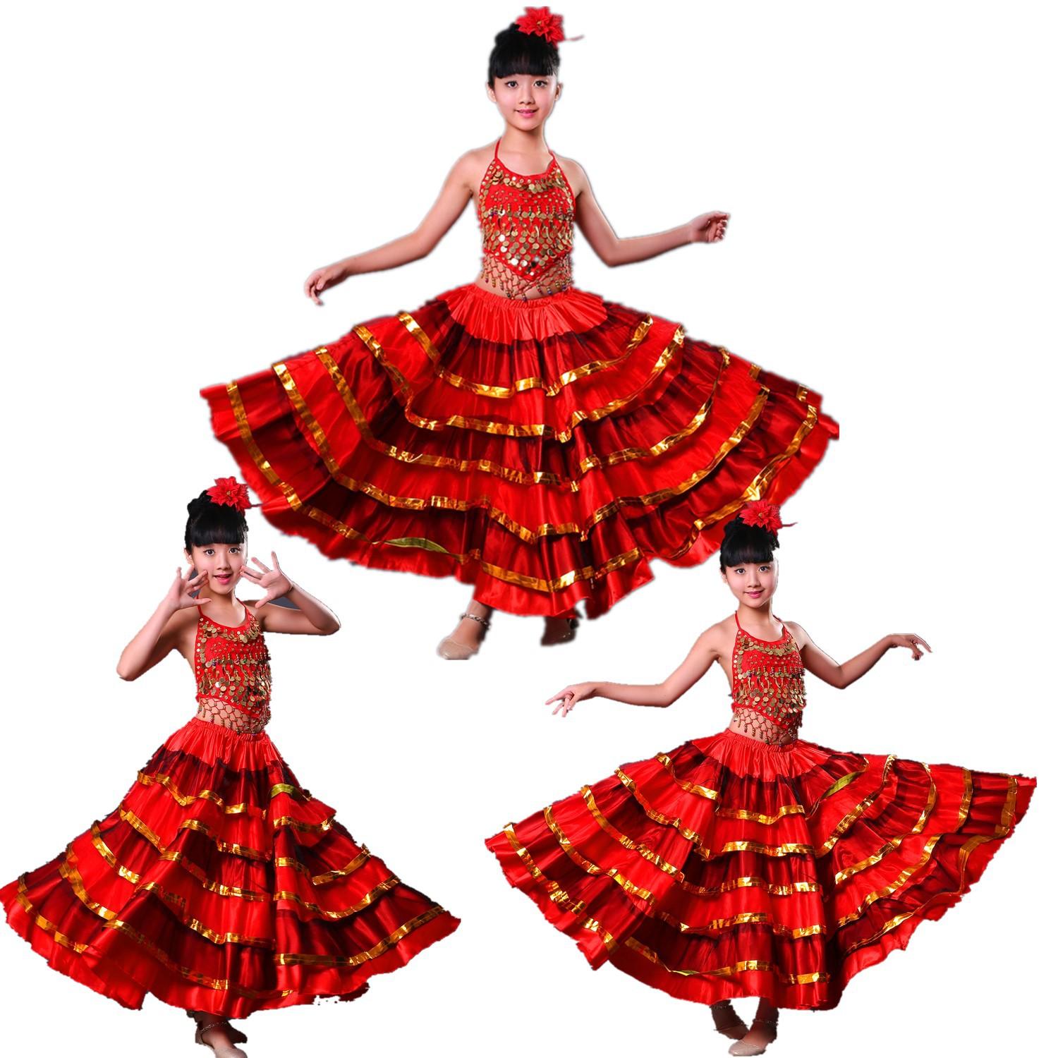 Ropa de Actuación para Niños Vestido de Baile de Tauromaquia Española Vestido de Baile de Apertura Ropa de Actuación para Escenario Niñas Rojo