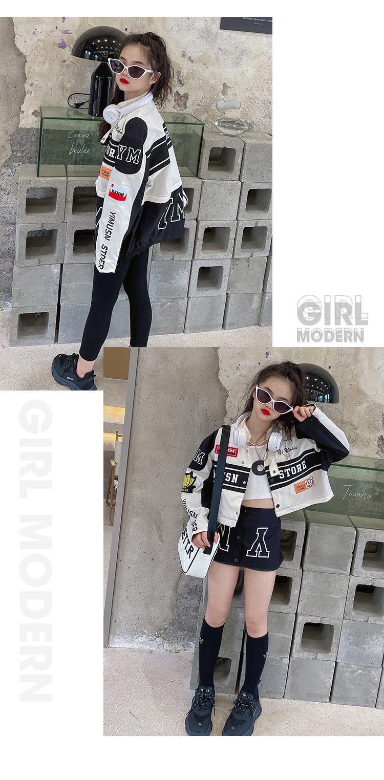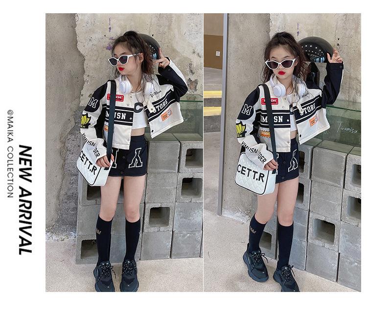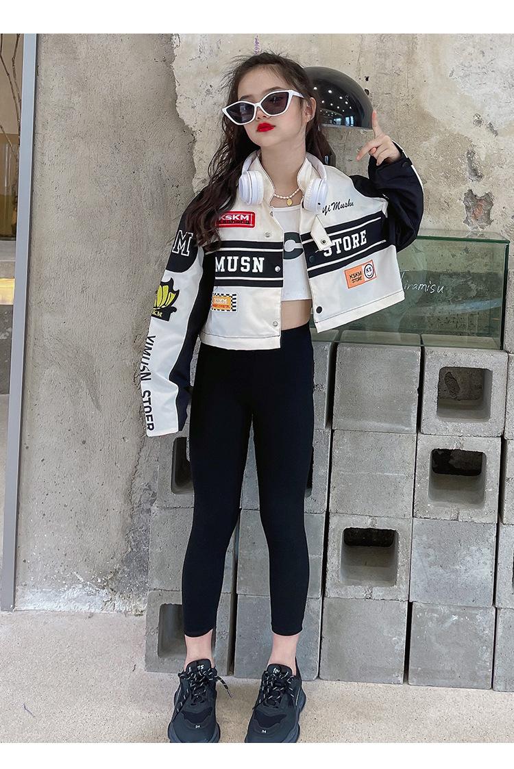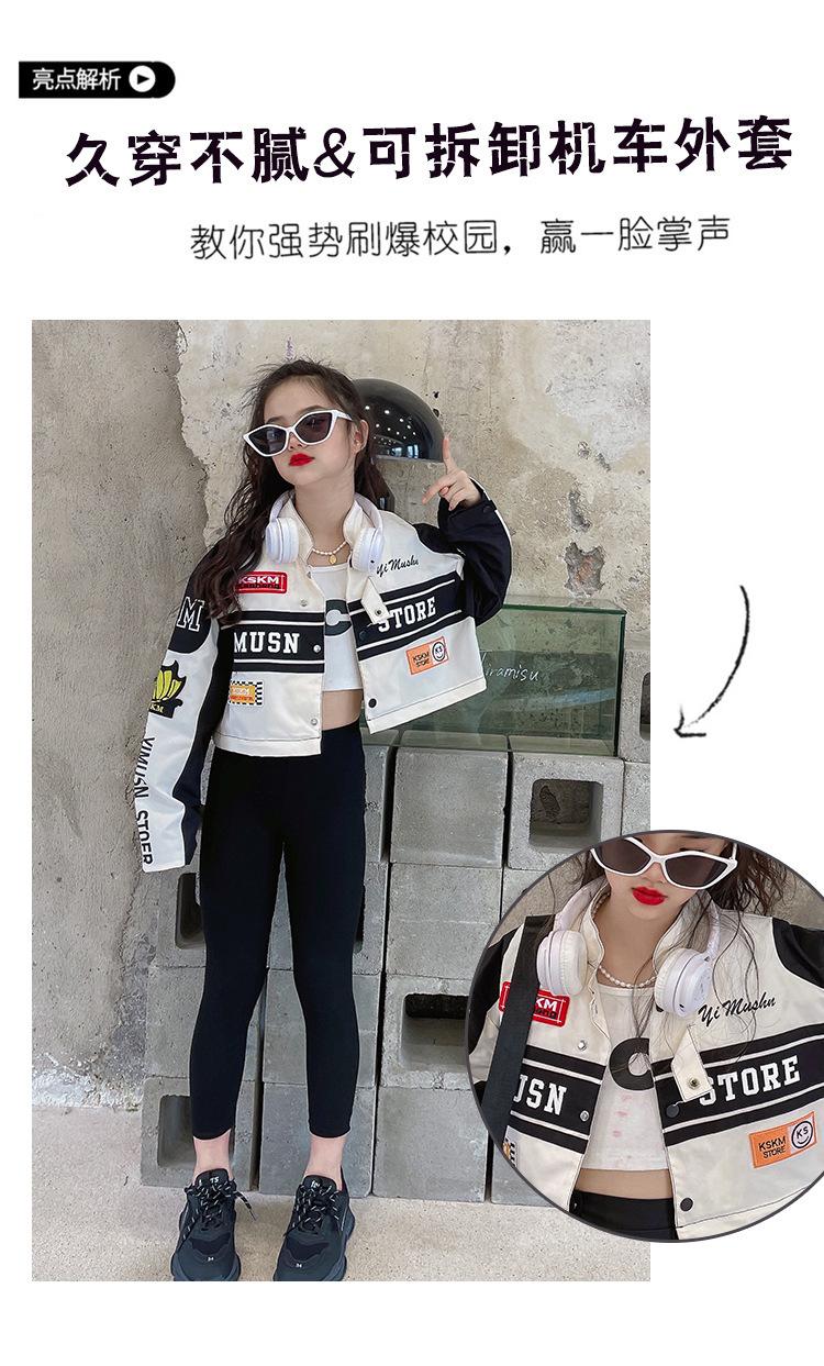 Chaqueta de motociclista para niñas de primavera y otoño, mayorista 2024, nueva chaqueta corta casual de estilo occidental para niños grandes
