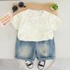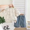 Traje de verano para niño Verano 2025 Nuevo estilo Estilo coreano Niños Manga corta Pantalones cortos Conjunto de dos piezas para bebé Cabello a la moda