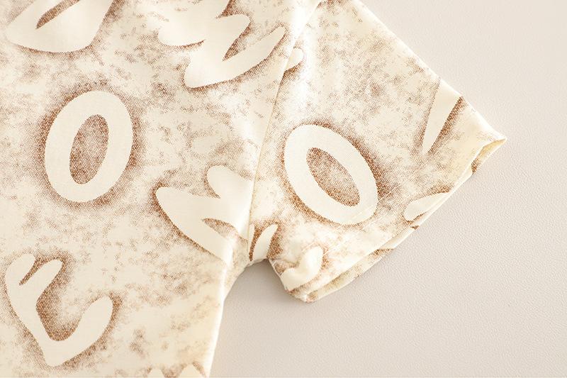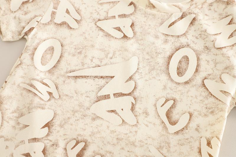 Brown all-over printed letter round neck short-sleeved suit, Green all-over printed letter round neck short-sleeved suit