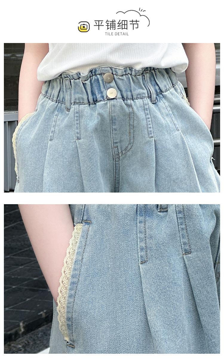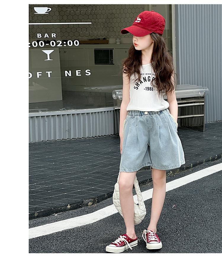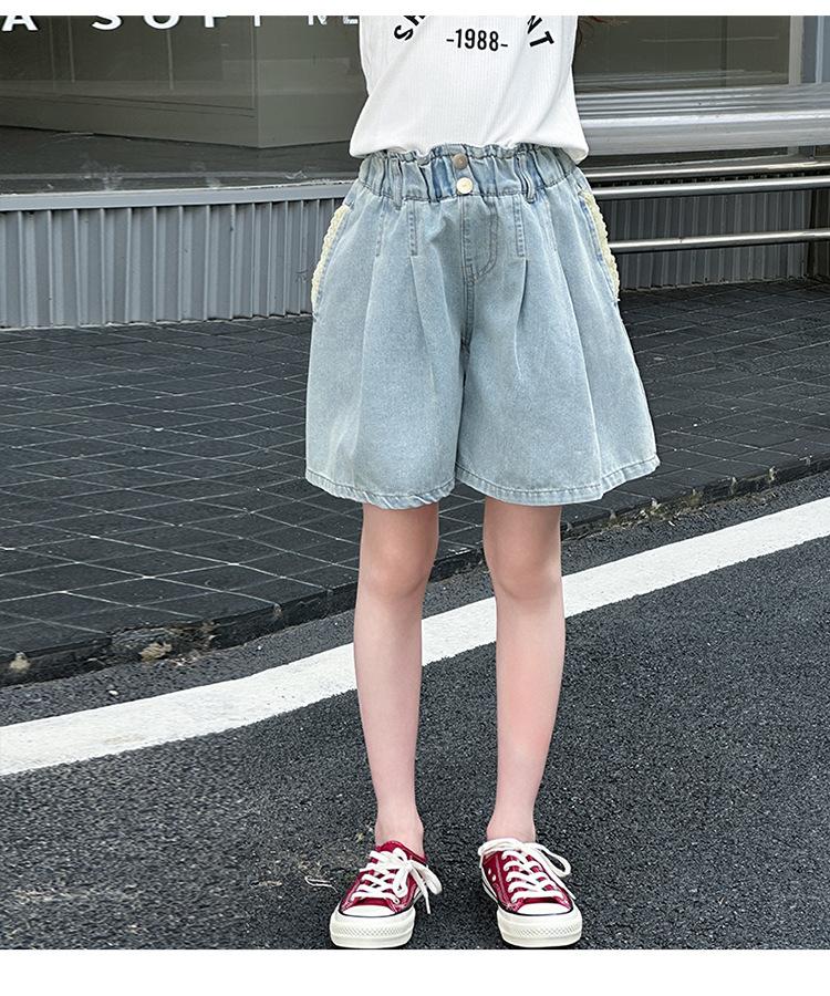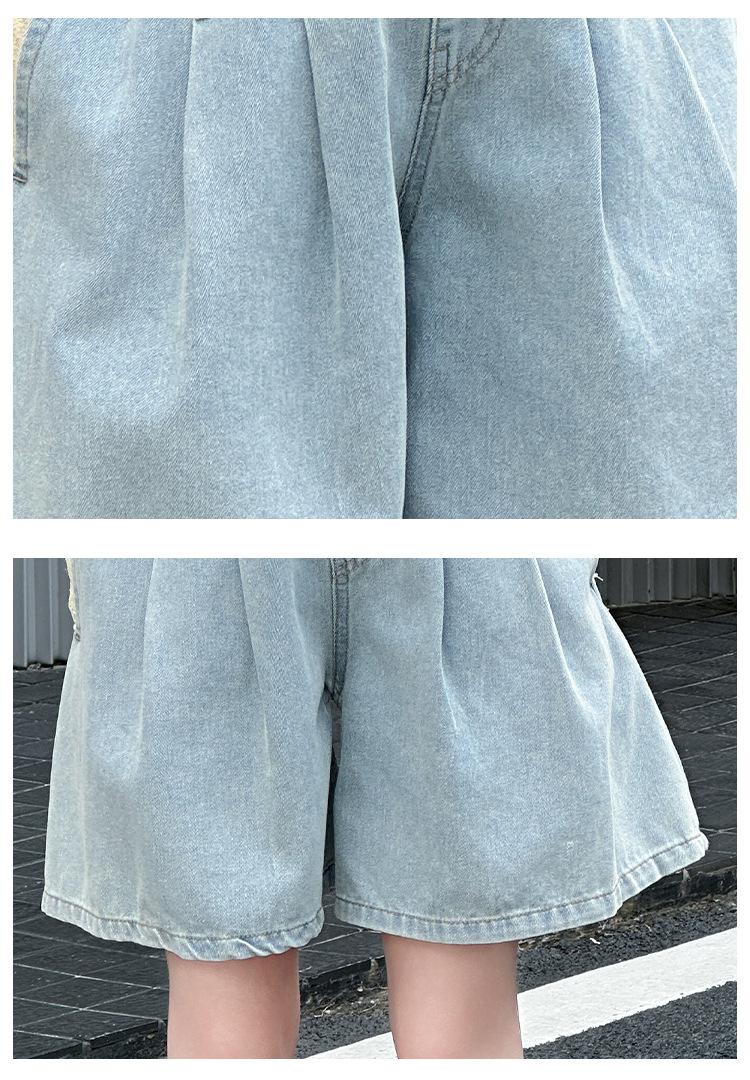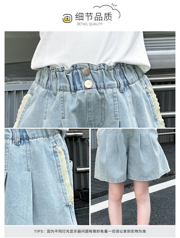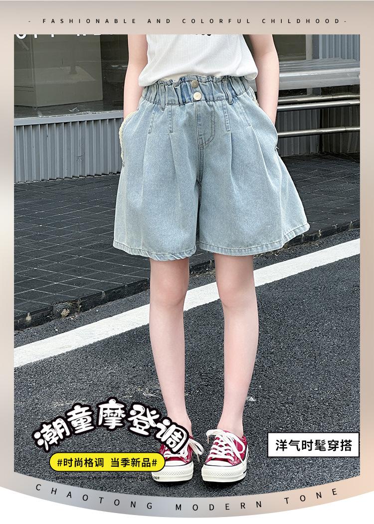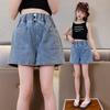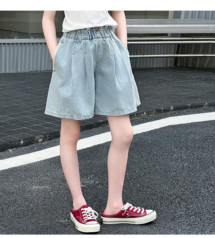 Shorts de Mezclilla para Niñas Verano Delgados 2025 Nuevos Pantalones Elegantes para Niños Mayores Shorts Anchos hasta la Rodilla