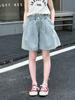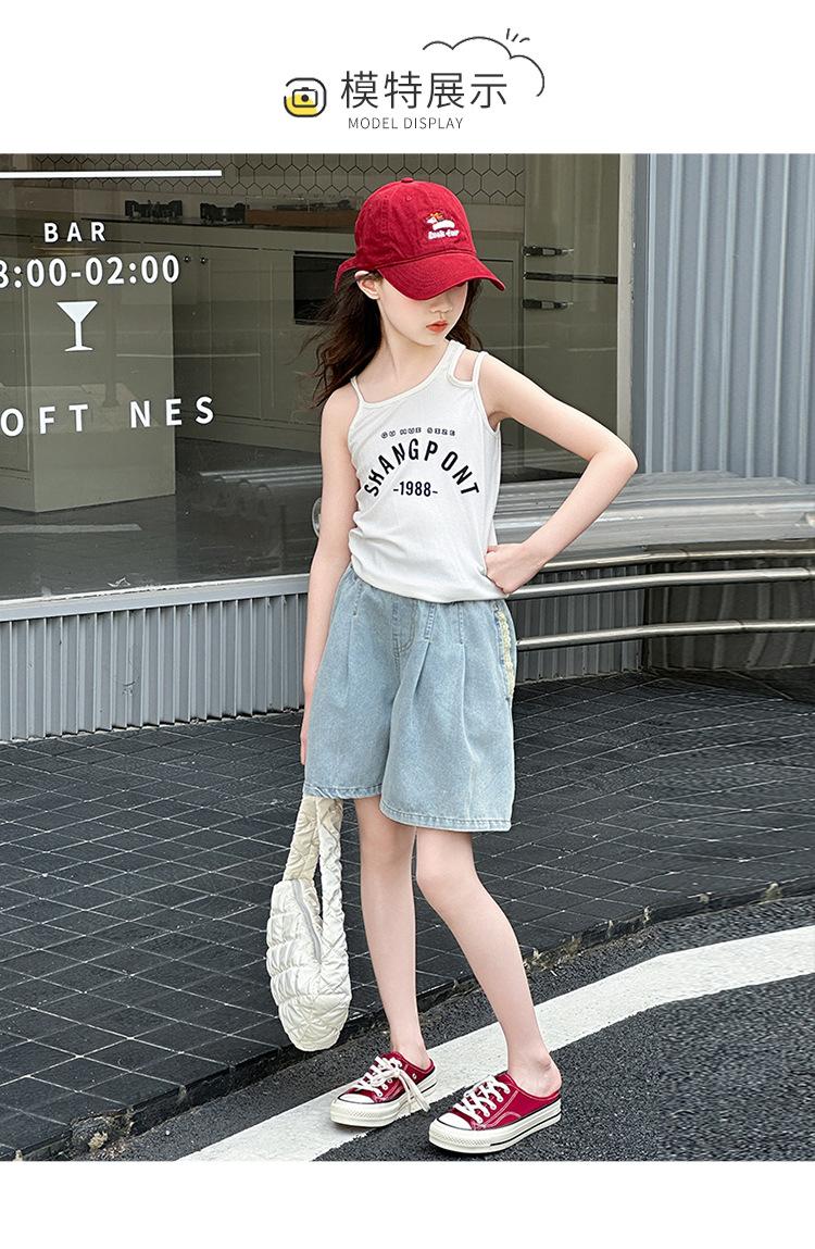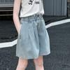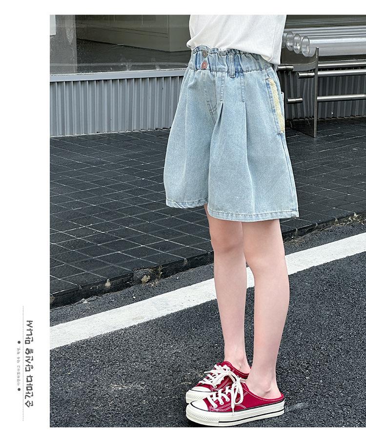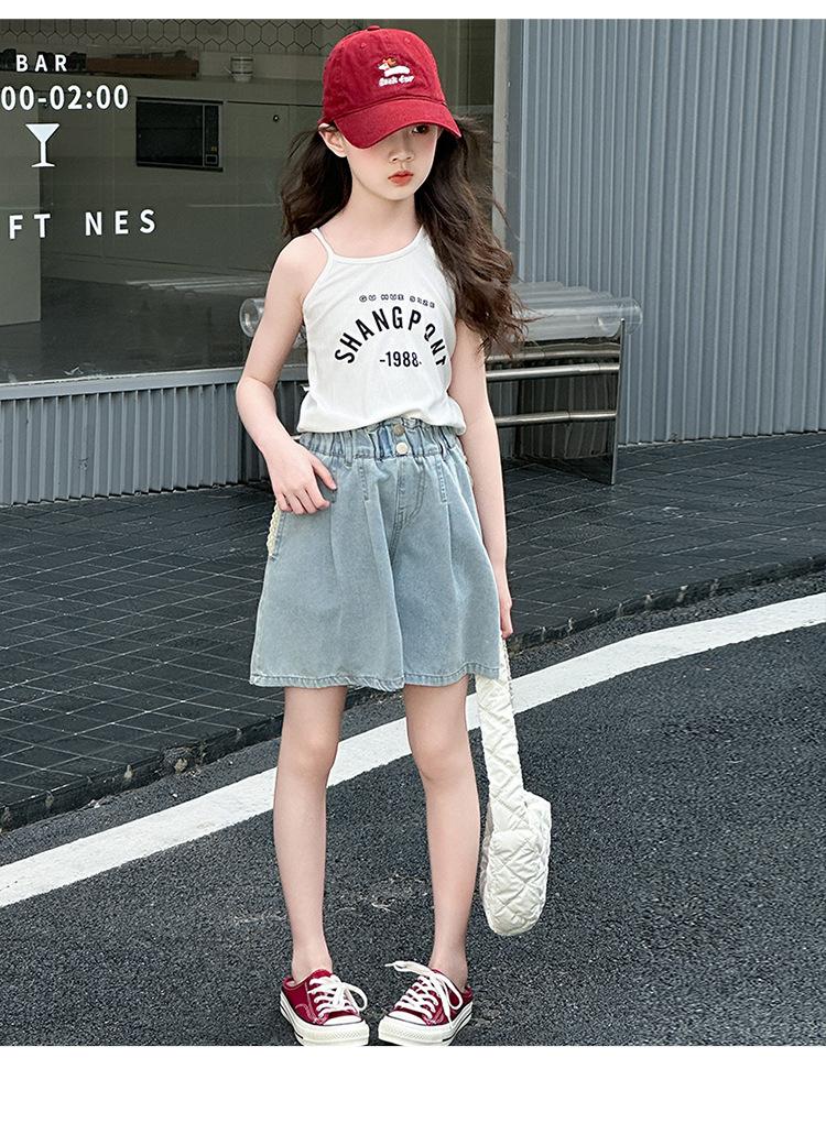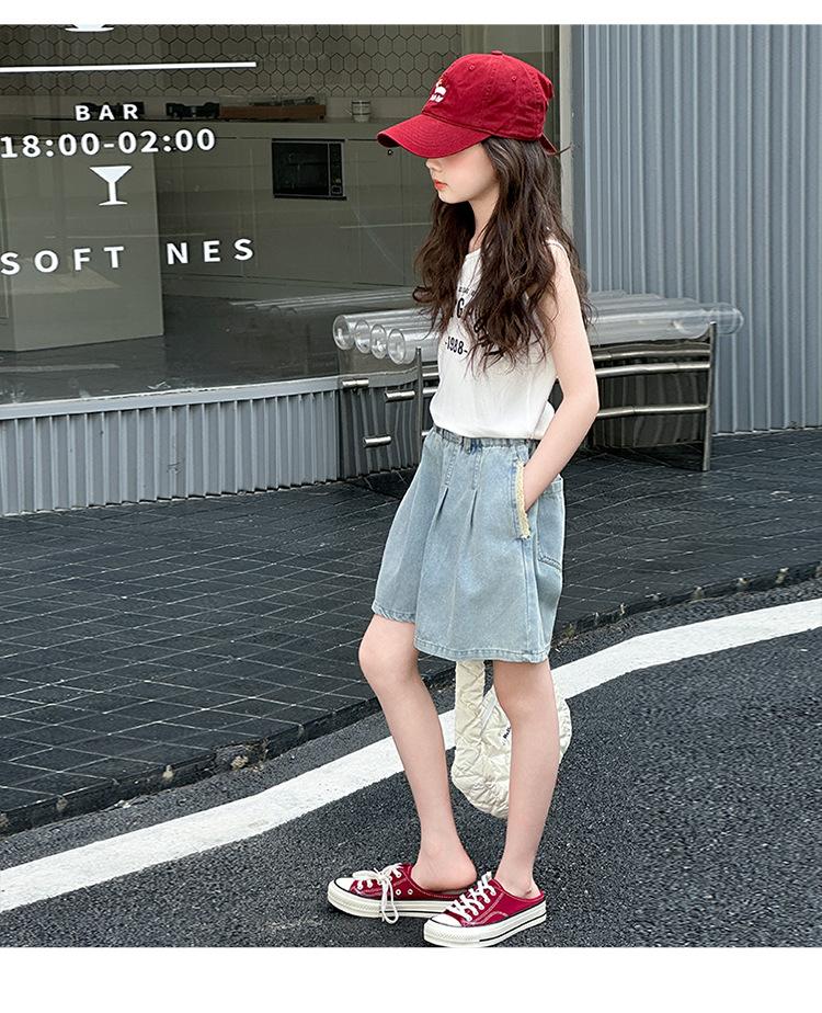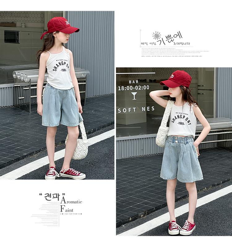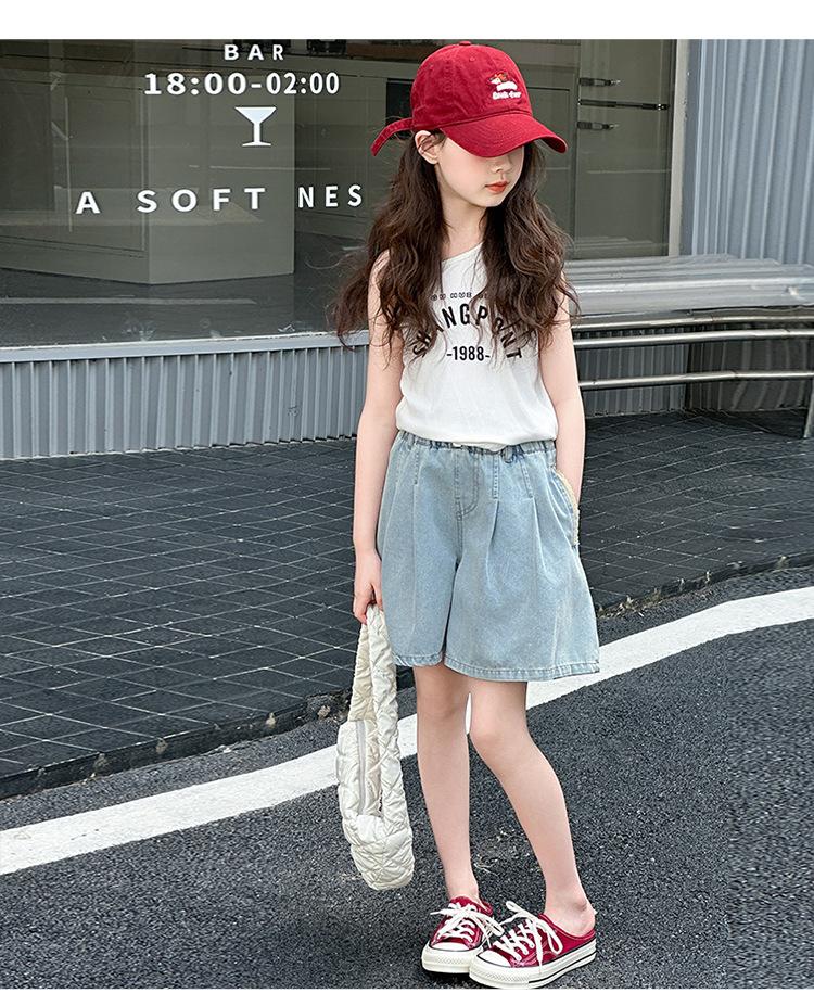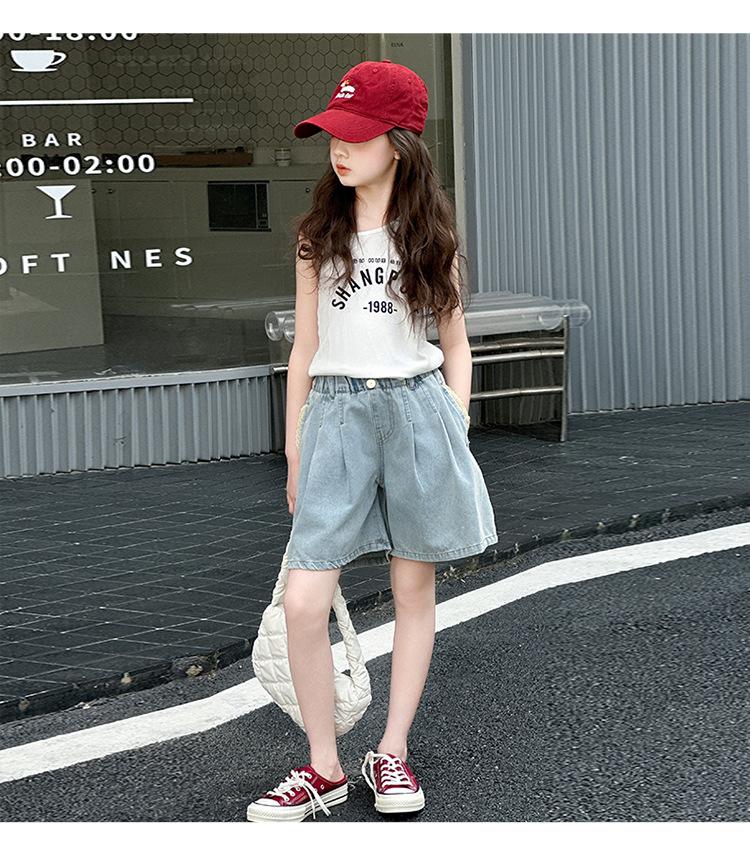 Shorts de Mezclilla para Niñas Verano Delgados 2025 Nuevos Pantalones Elegantes para Niños Mayores Shorts Anchos hasta la Rodilla