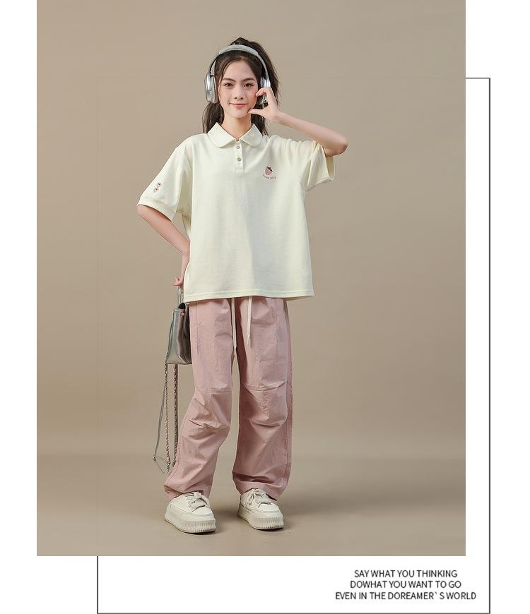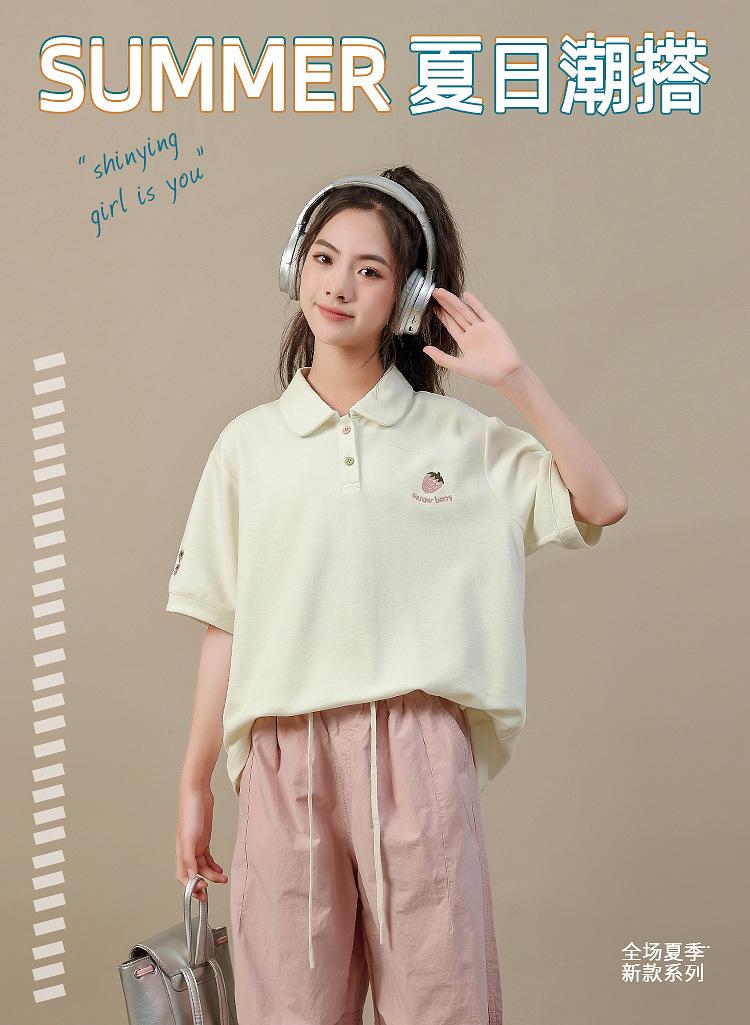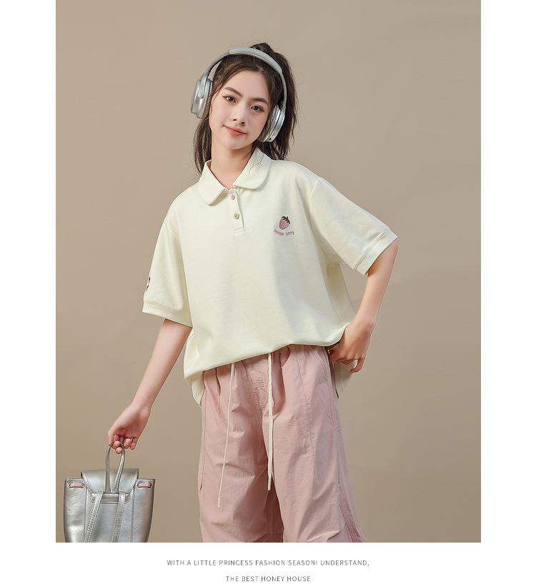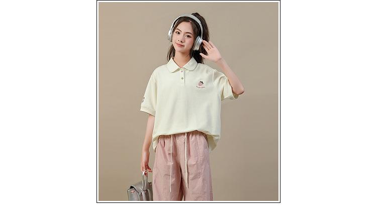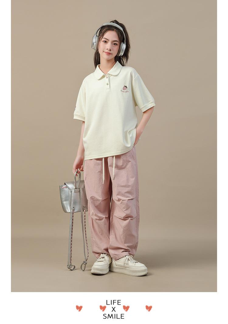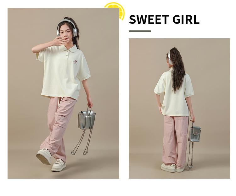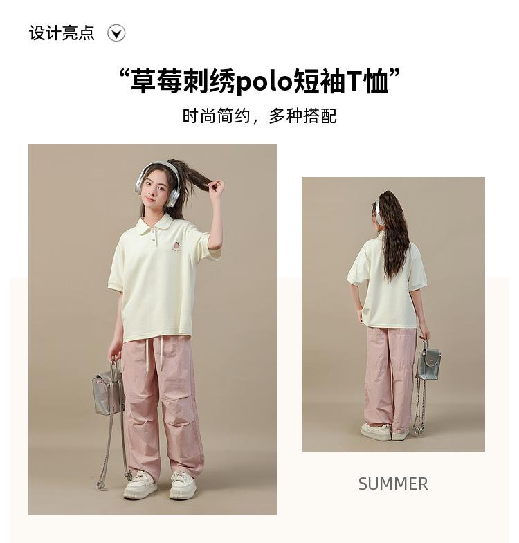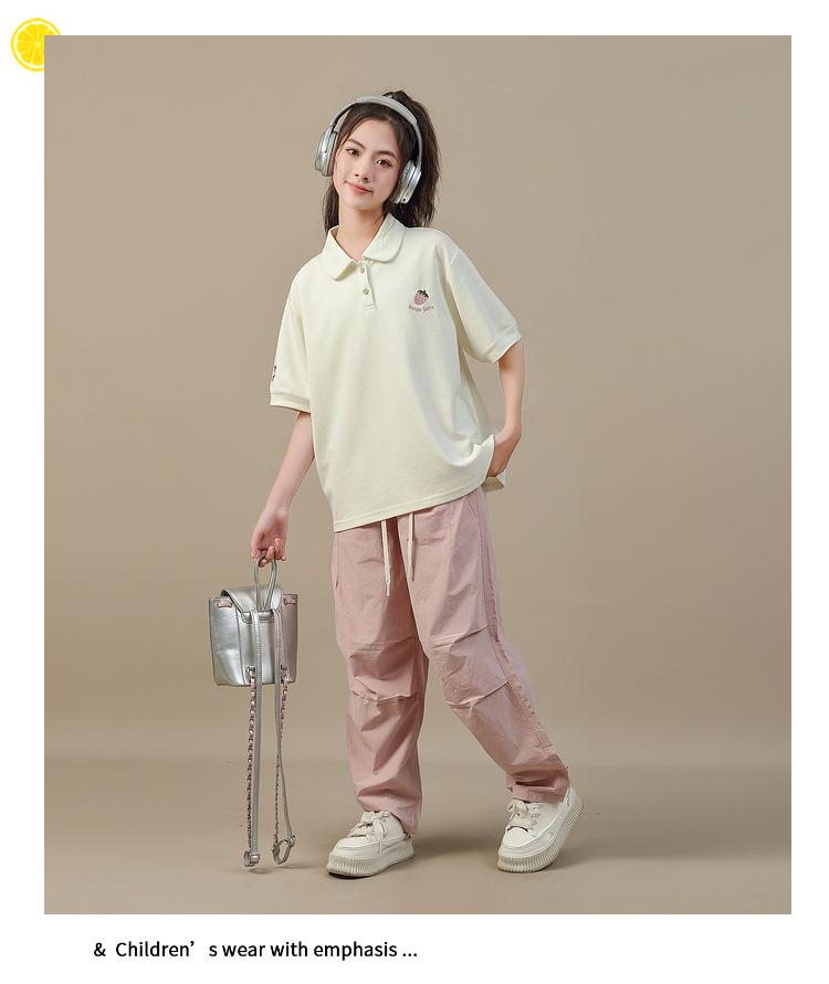 Top de cuello polo para niña Ropa de verano 2024 Nuevo estilo Estilo infantil para niños Niños grandes Verano de manga corta Camiseta de manga corta para niña