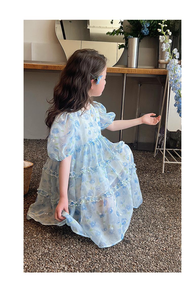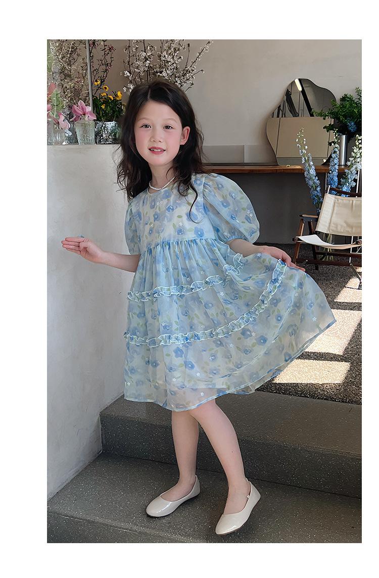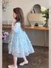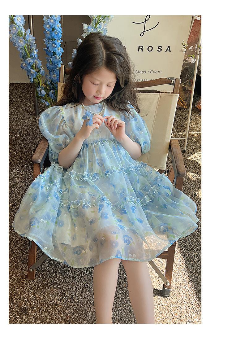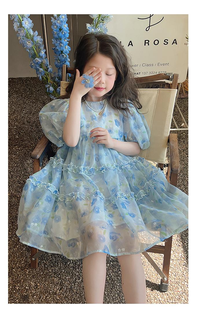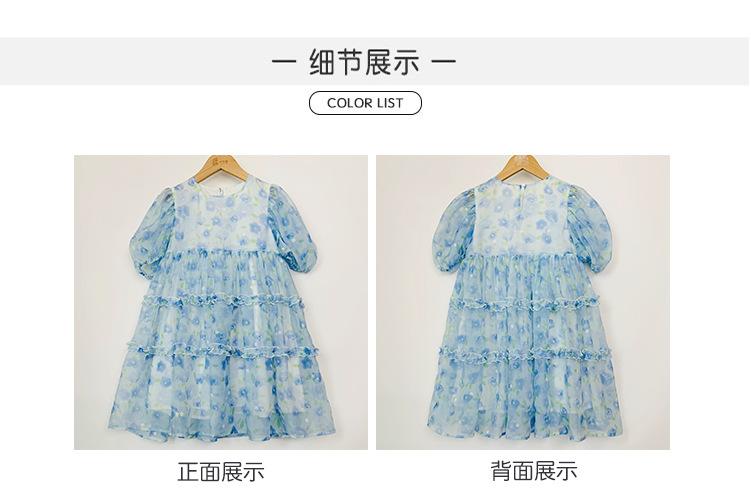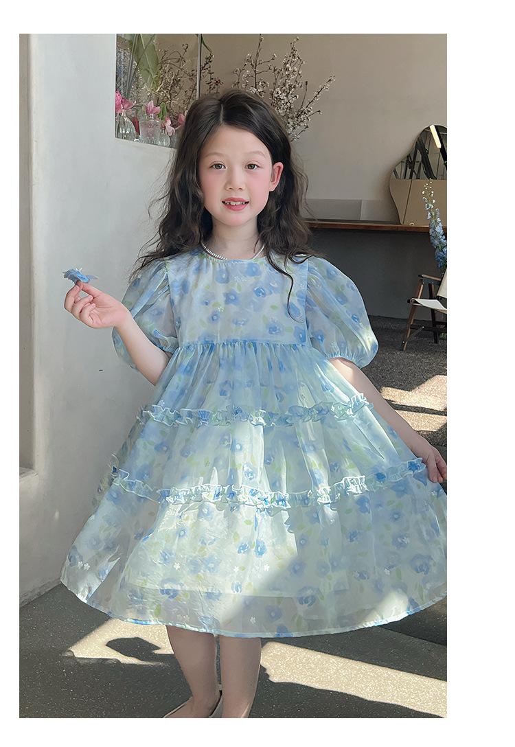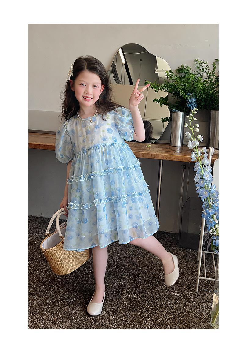 Vestido de Malla para Niñas Vestido de Princesa Floral de Manga Corta para Niña de Estilo Occidental para Niños Grandes Verano 2025 Nuevo Estilo