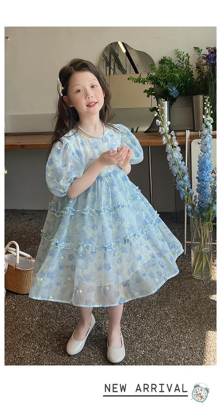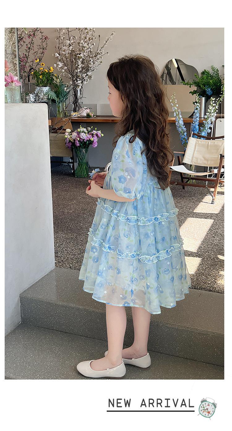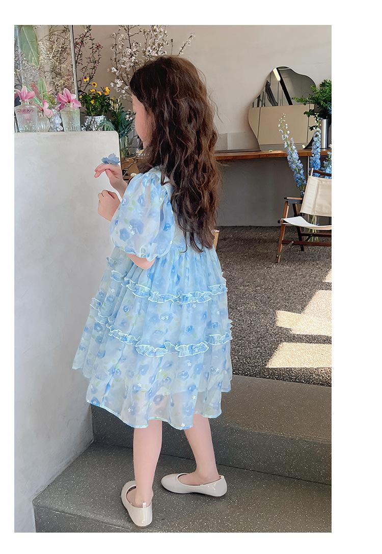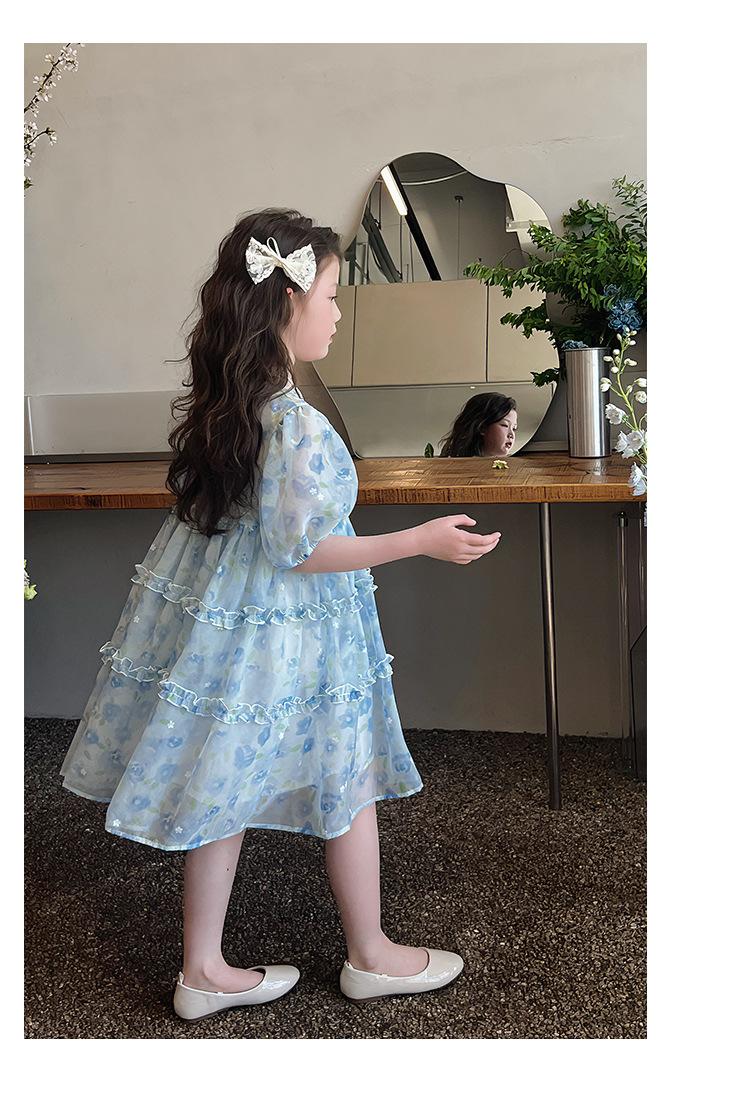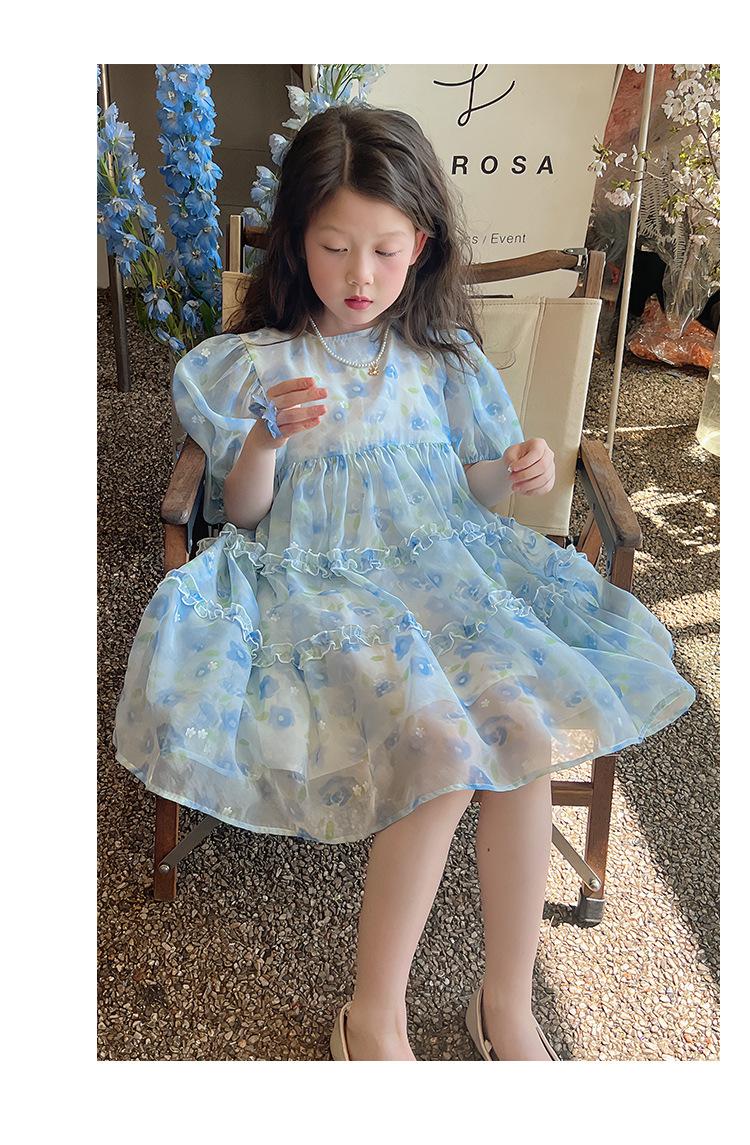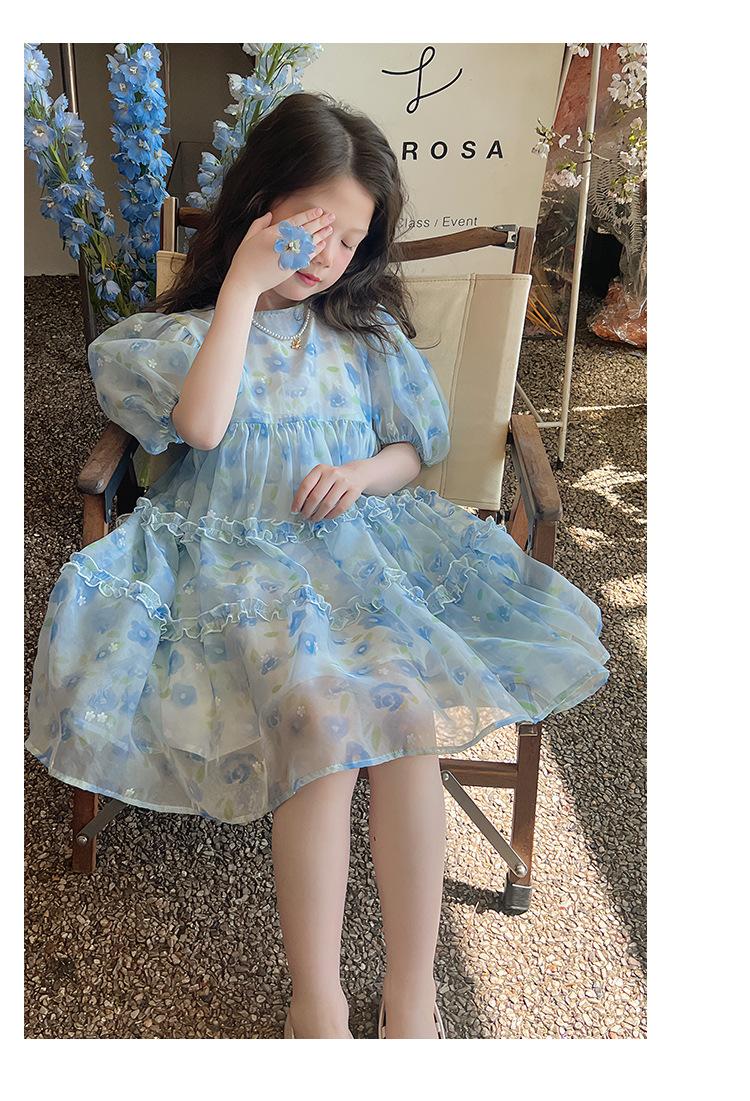 Vestido de Malla para Niñas Vestido de Princesa Floral de Manga Corta para Niña de Estilo Occidental para Niños Grandes Verano 2025 Nuevo Estilo