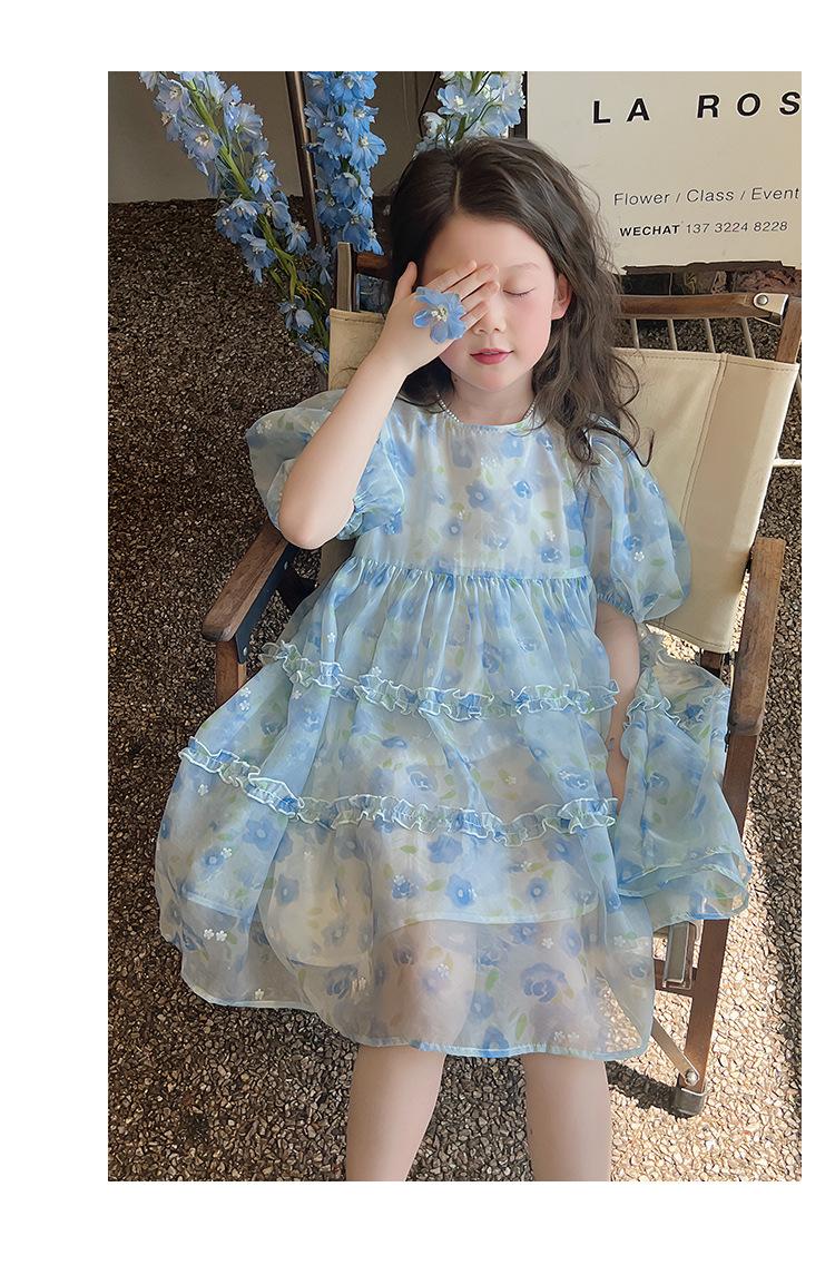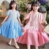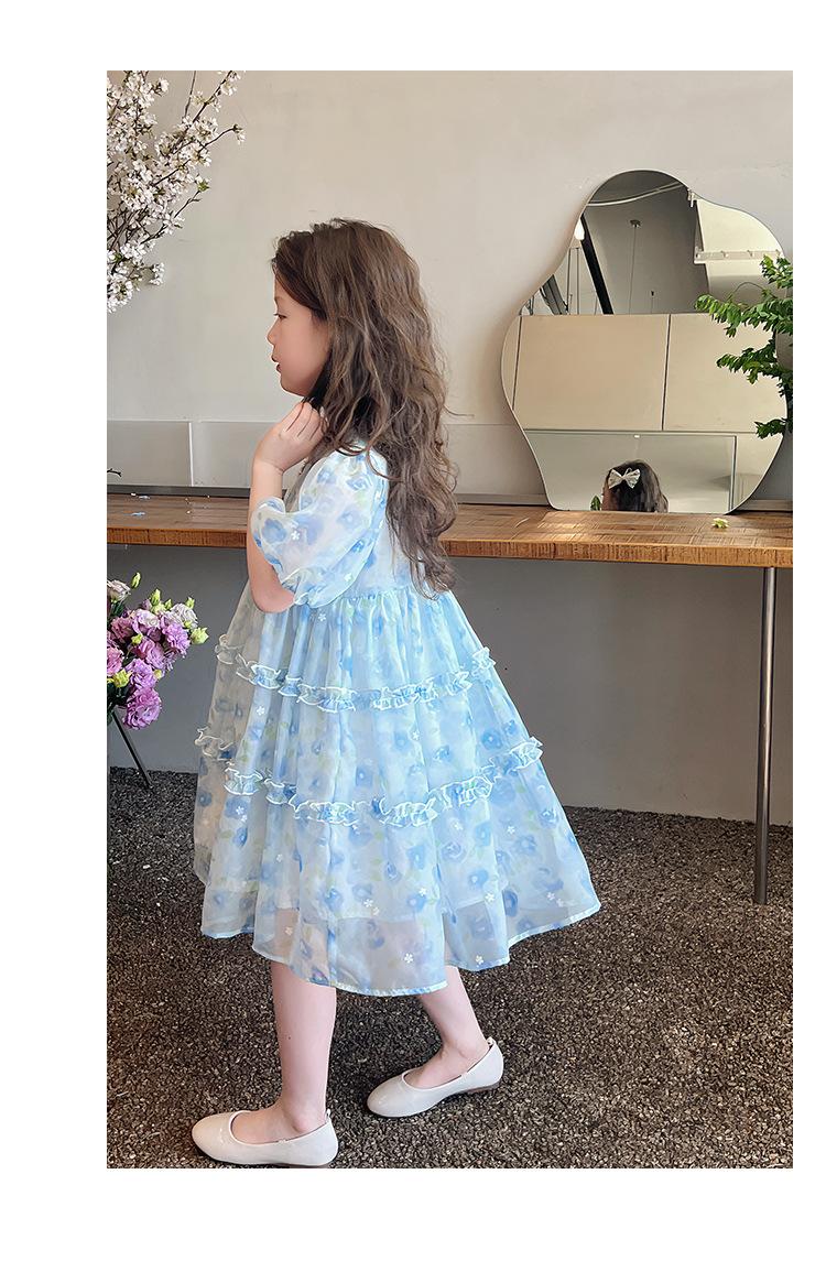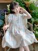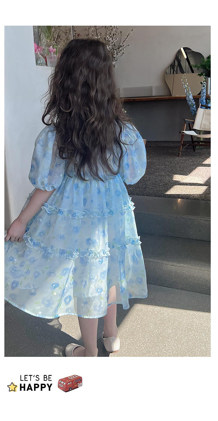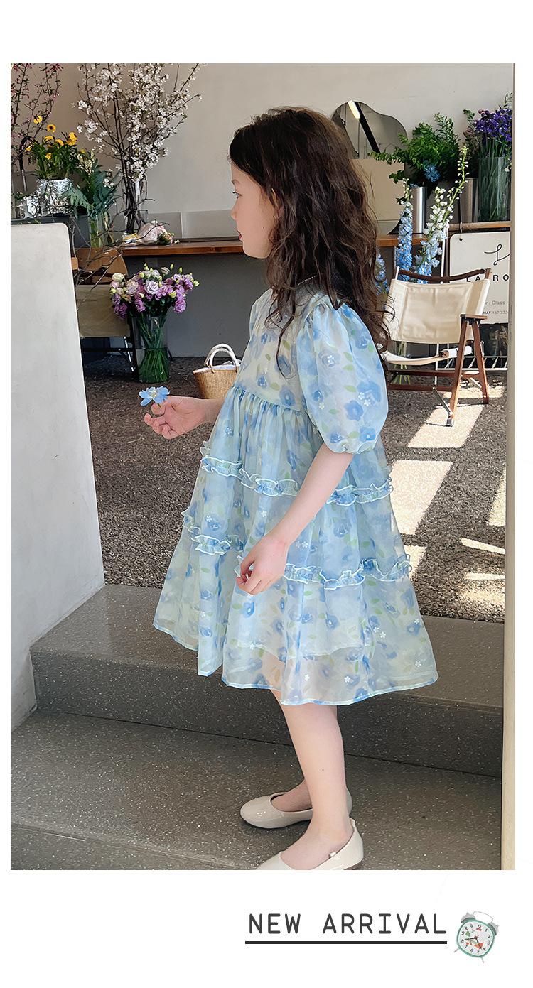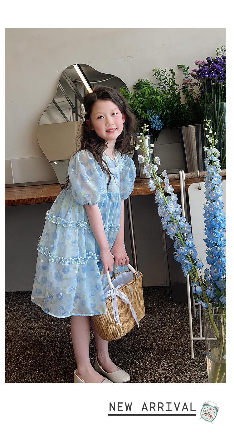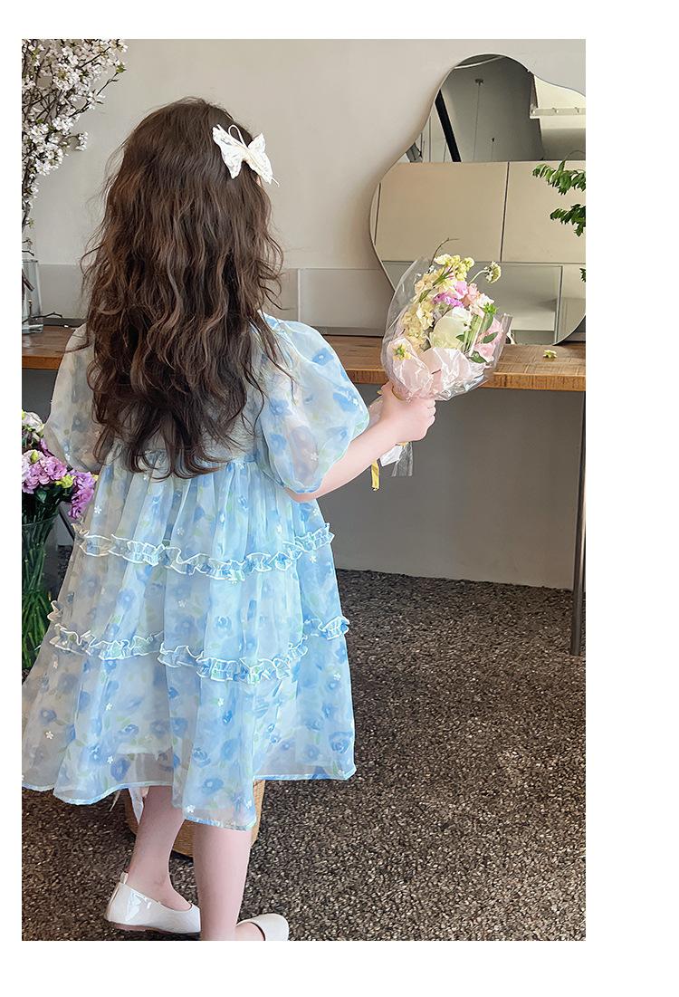 Vestido de Malla para Niñas Vestido de Princesa Floral de Manga Corta para Niña de Estilo Occidental para Niños Grandes Verano 2025 Nuevo Estilo