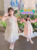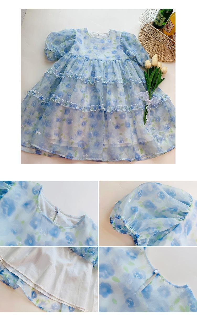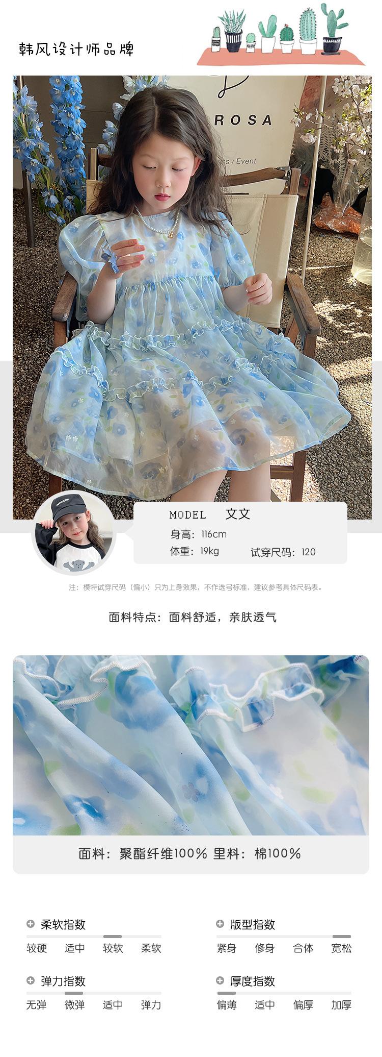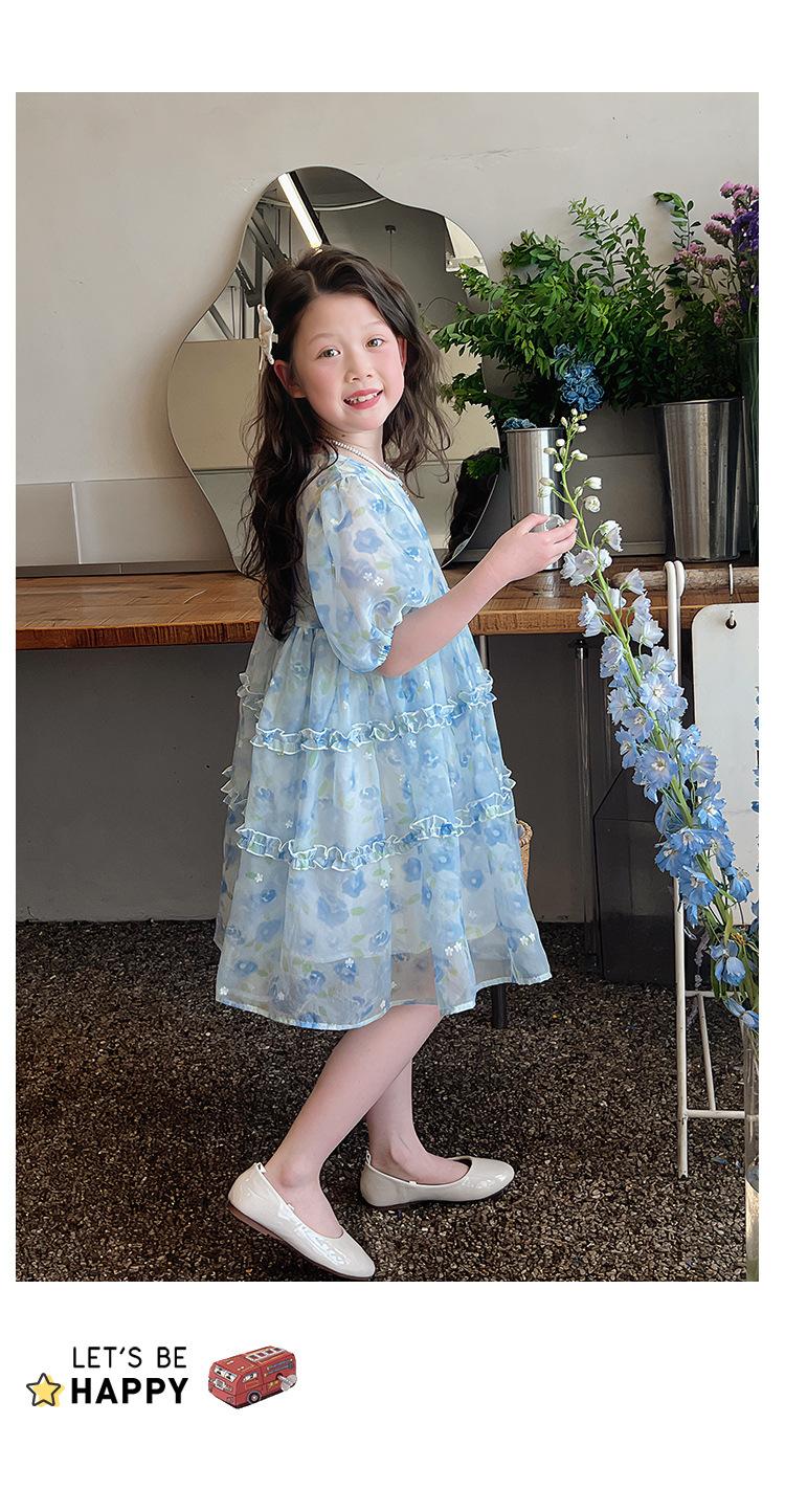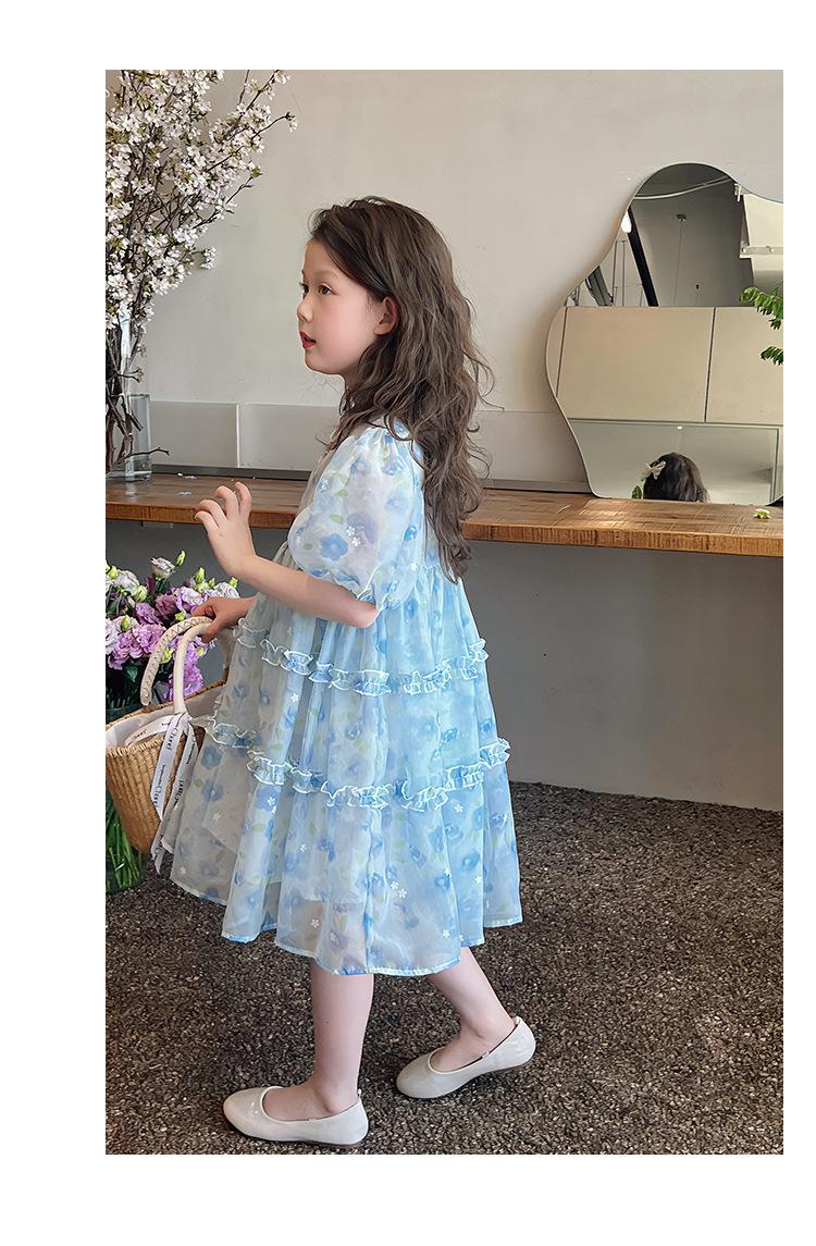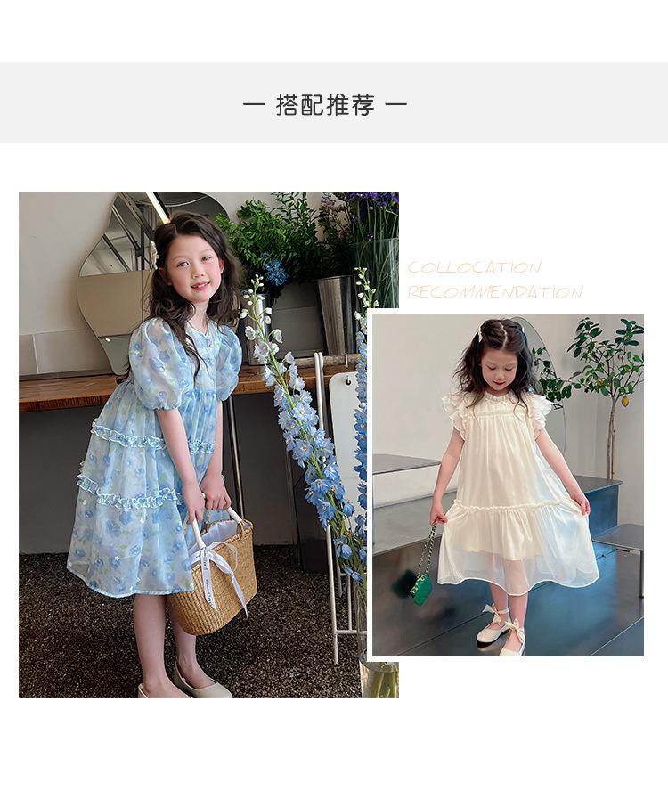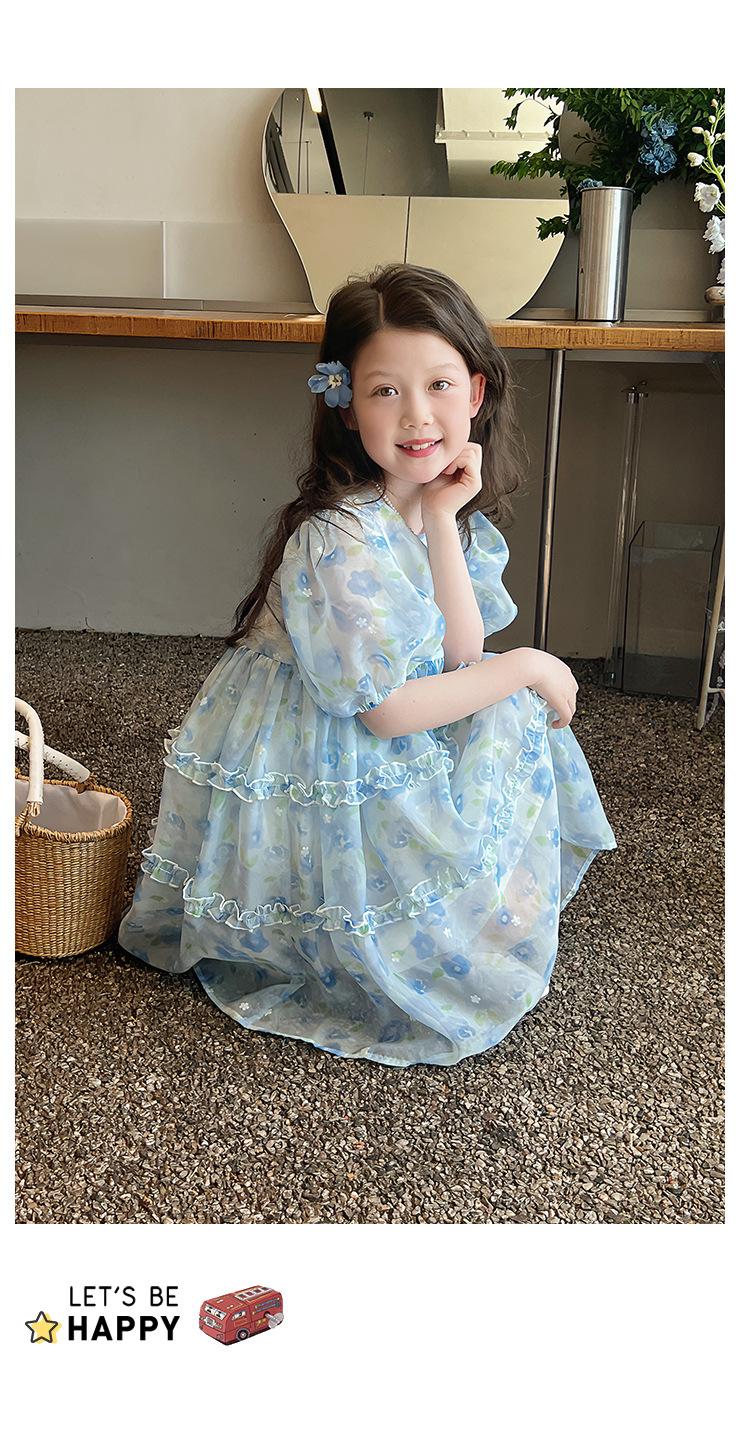 Vestido de Malla para Niñas Vestido de Princesa Floral de Manga Corta para Niña de Estilo Occidental para Niños Grandes Verano 2025 Nuevo Estilo