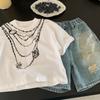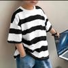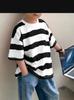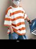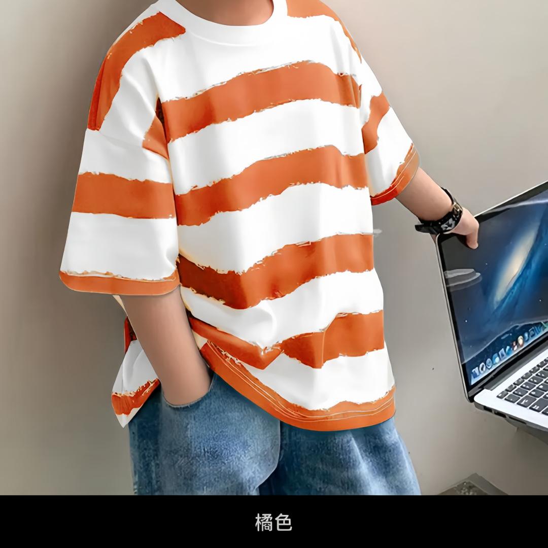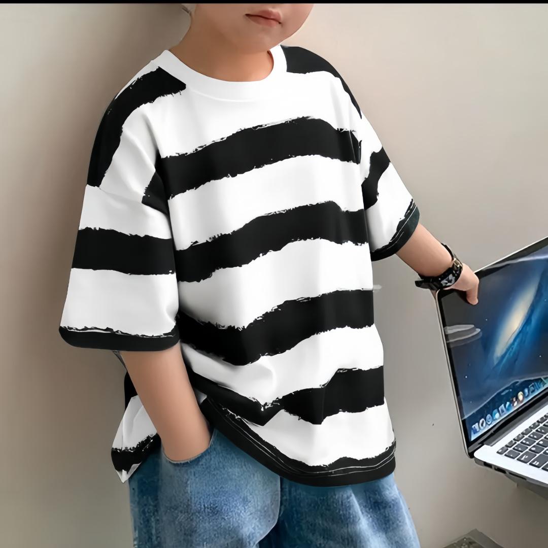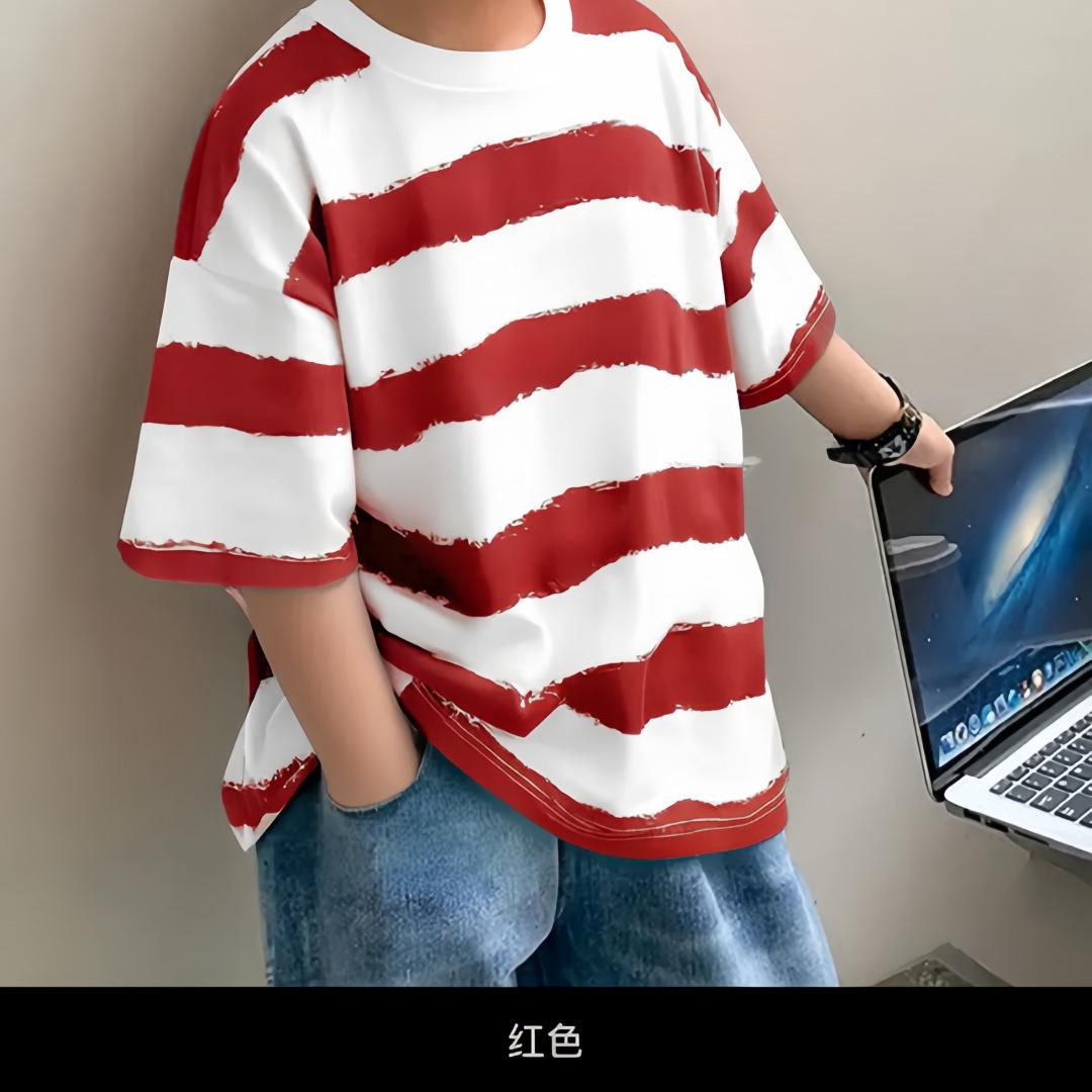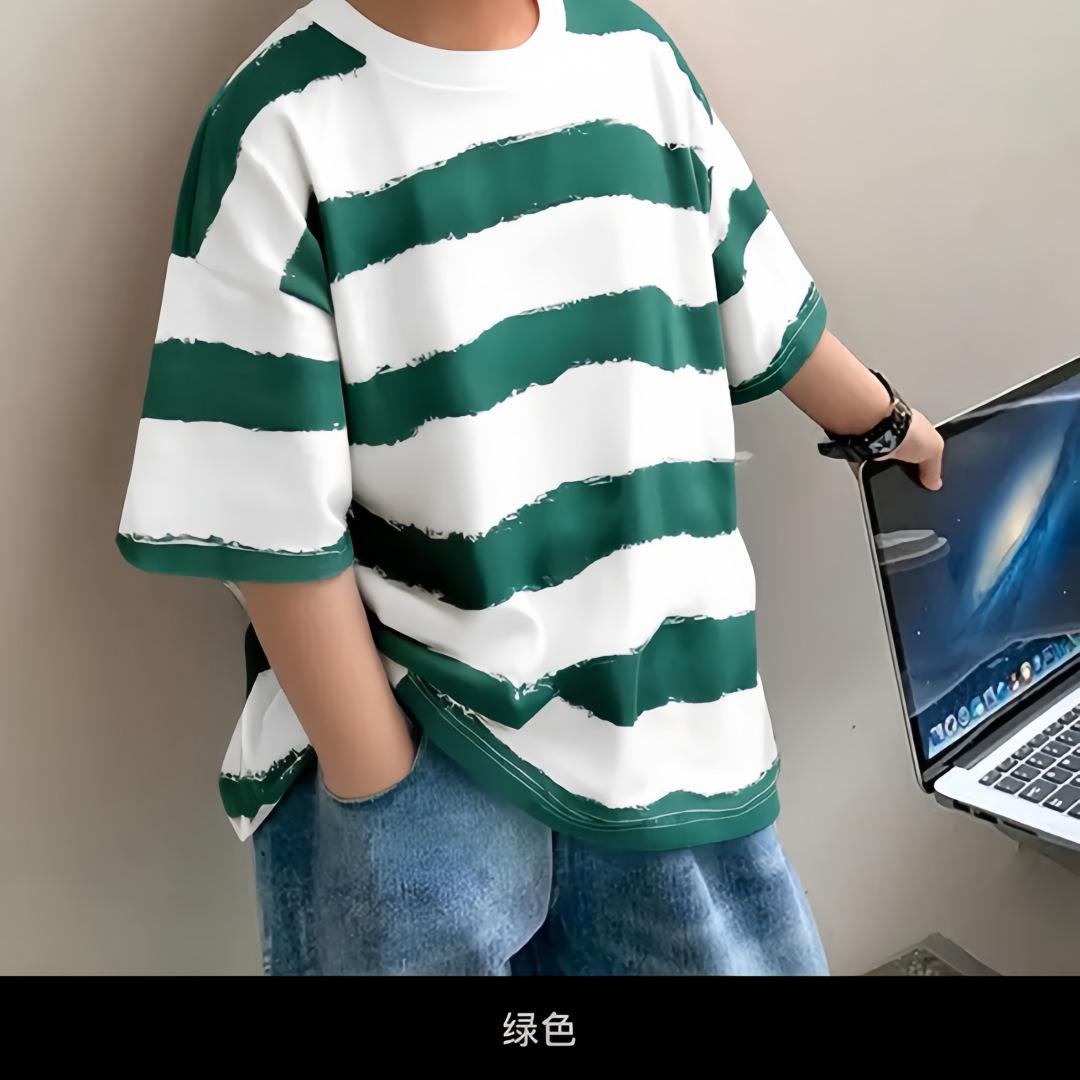 Ropa para niños Camiseta de rayas de manga corta para niño Ropa de verano de manga media y cuello redondo para niños Estilo coreano Algodón Combinación con todo Guapo Ropa de verano para niño