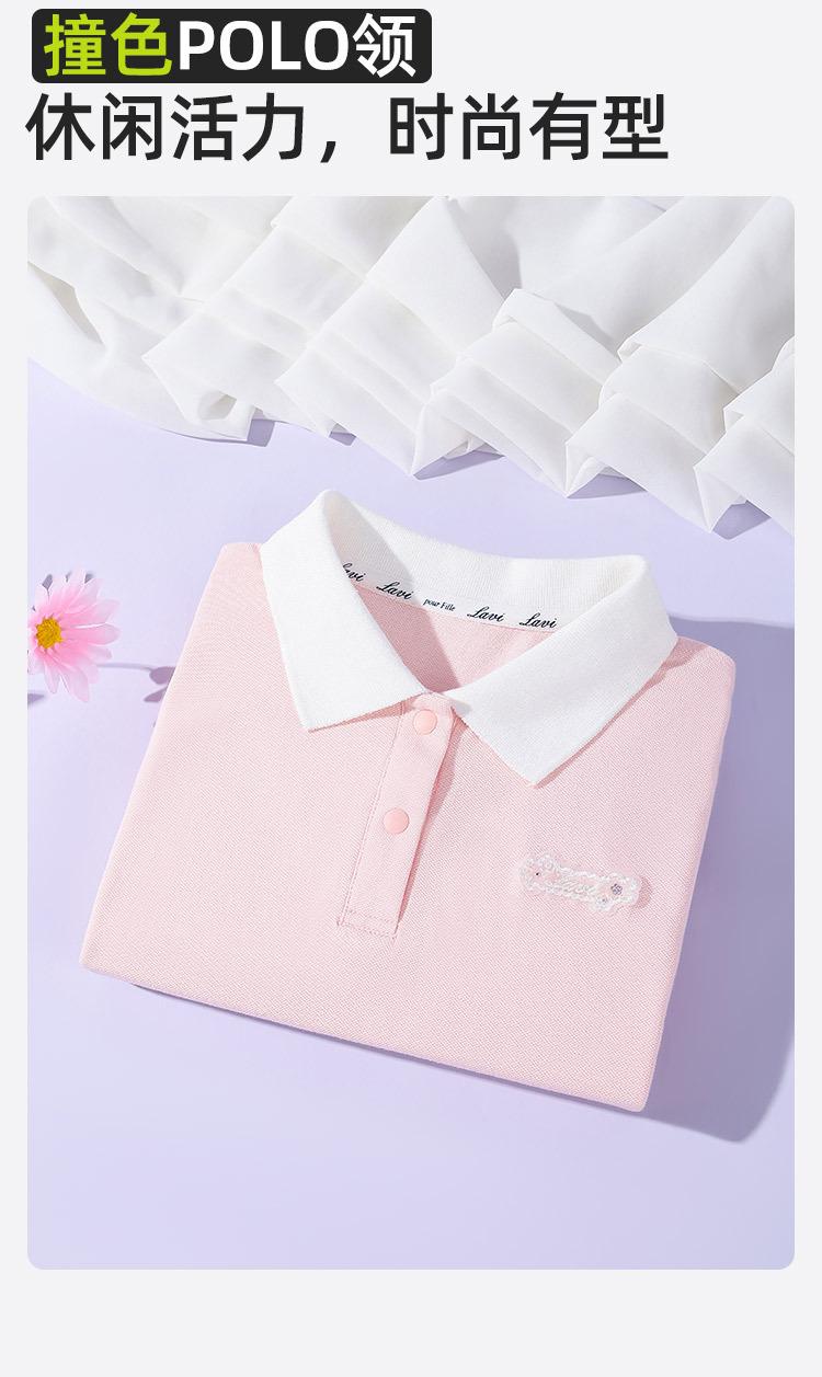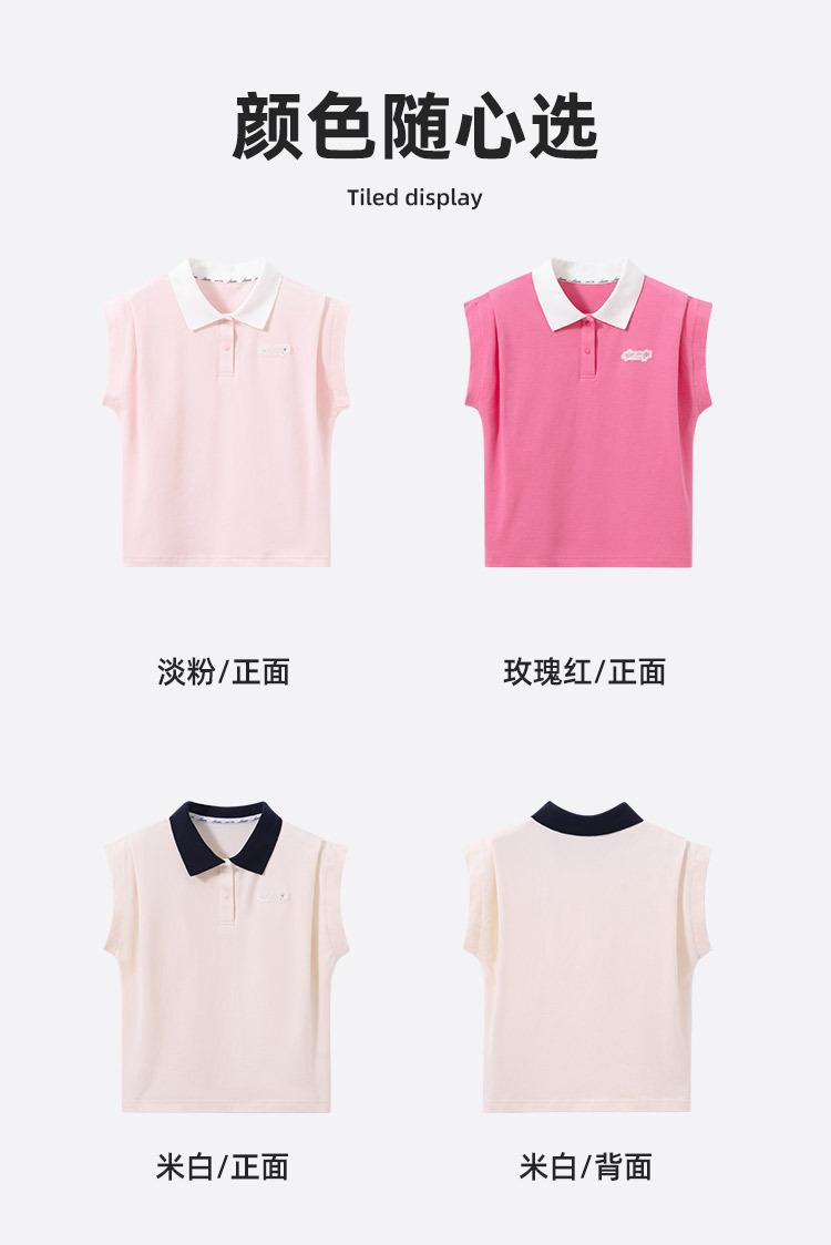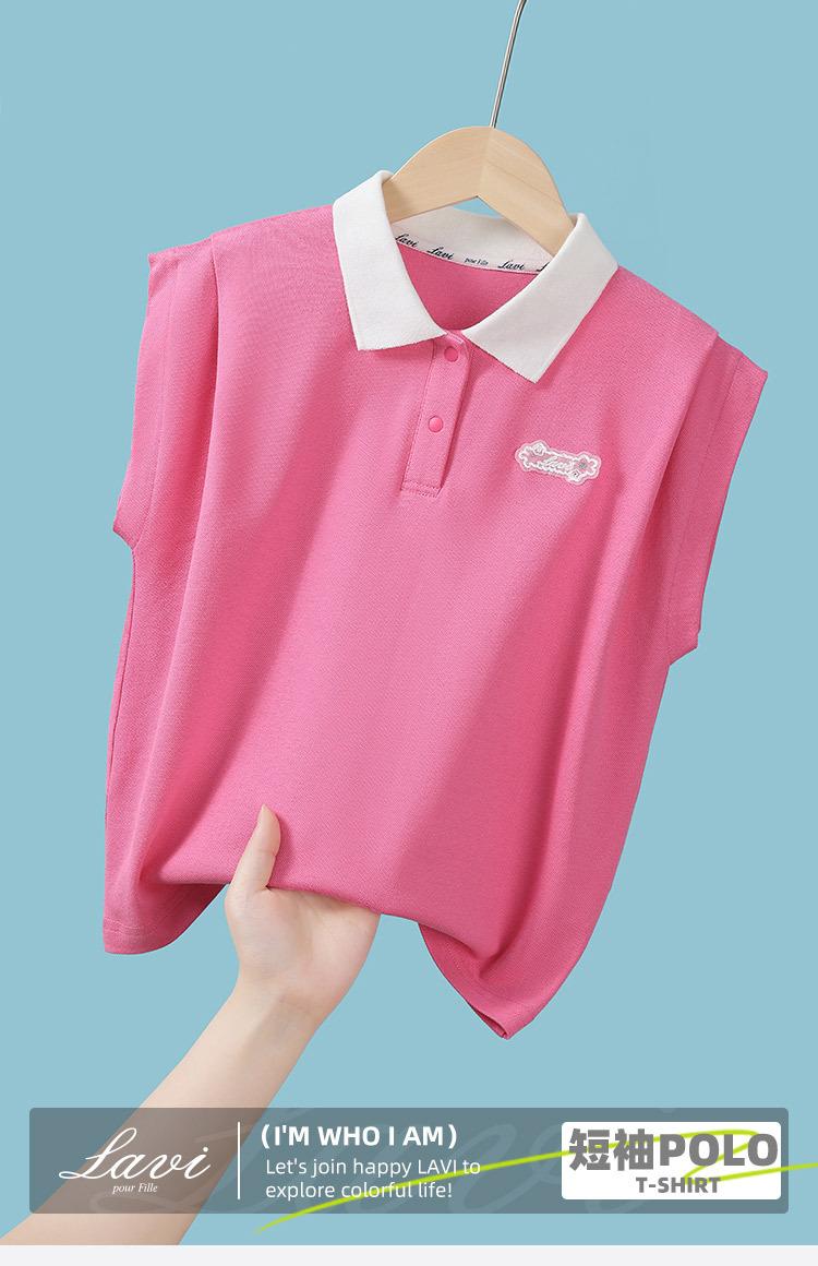 Polo de manga corta con cuello vuelto para niñas Lavi 2025 Verano Nuevo Top sin mangas para niños mayores Moda Versátil Trendy