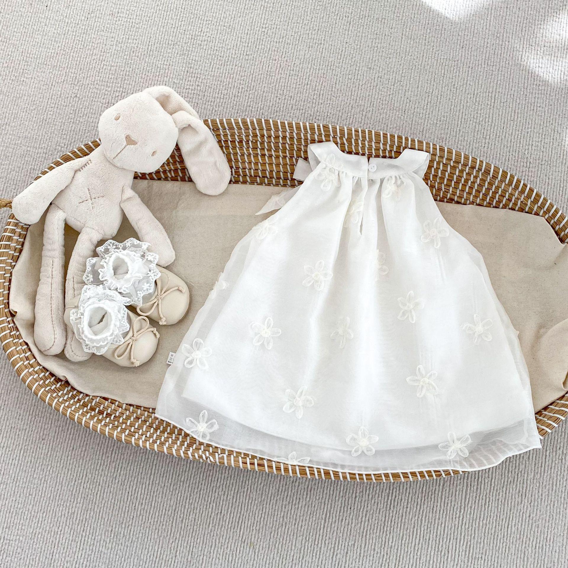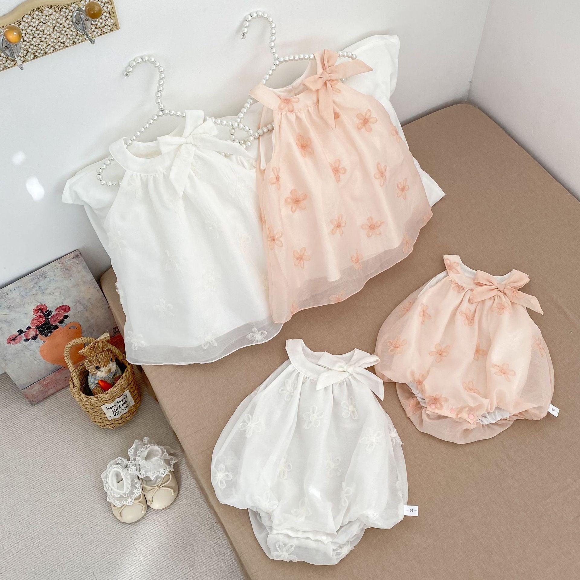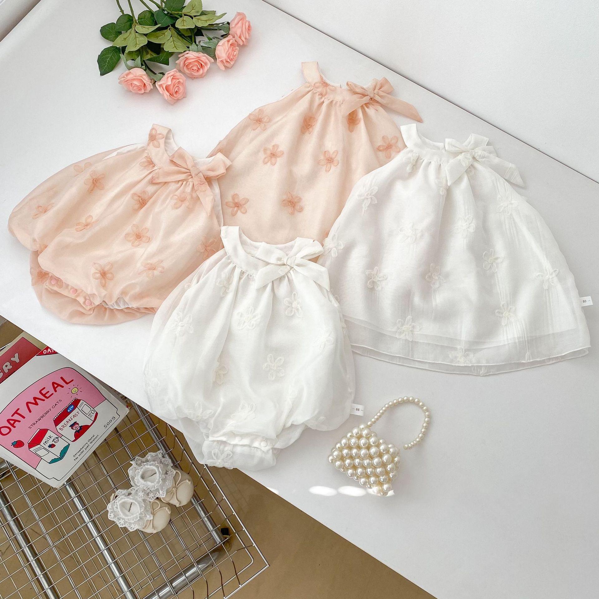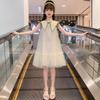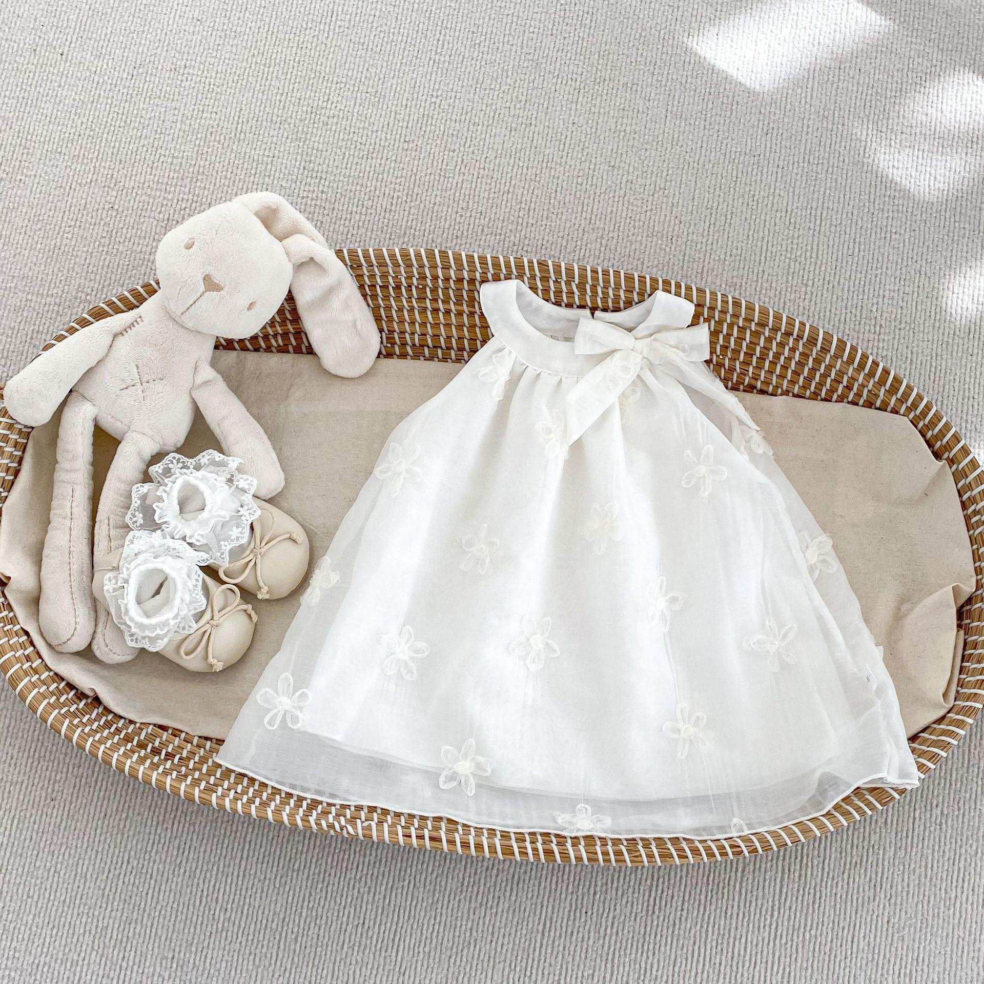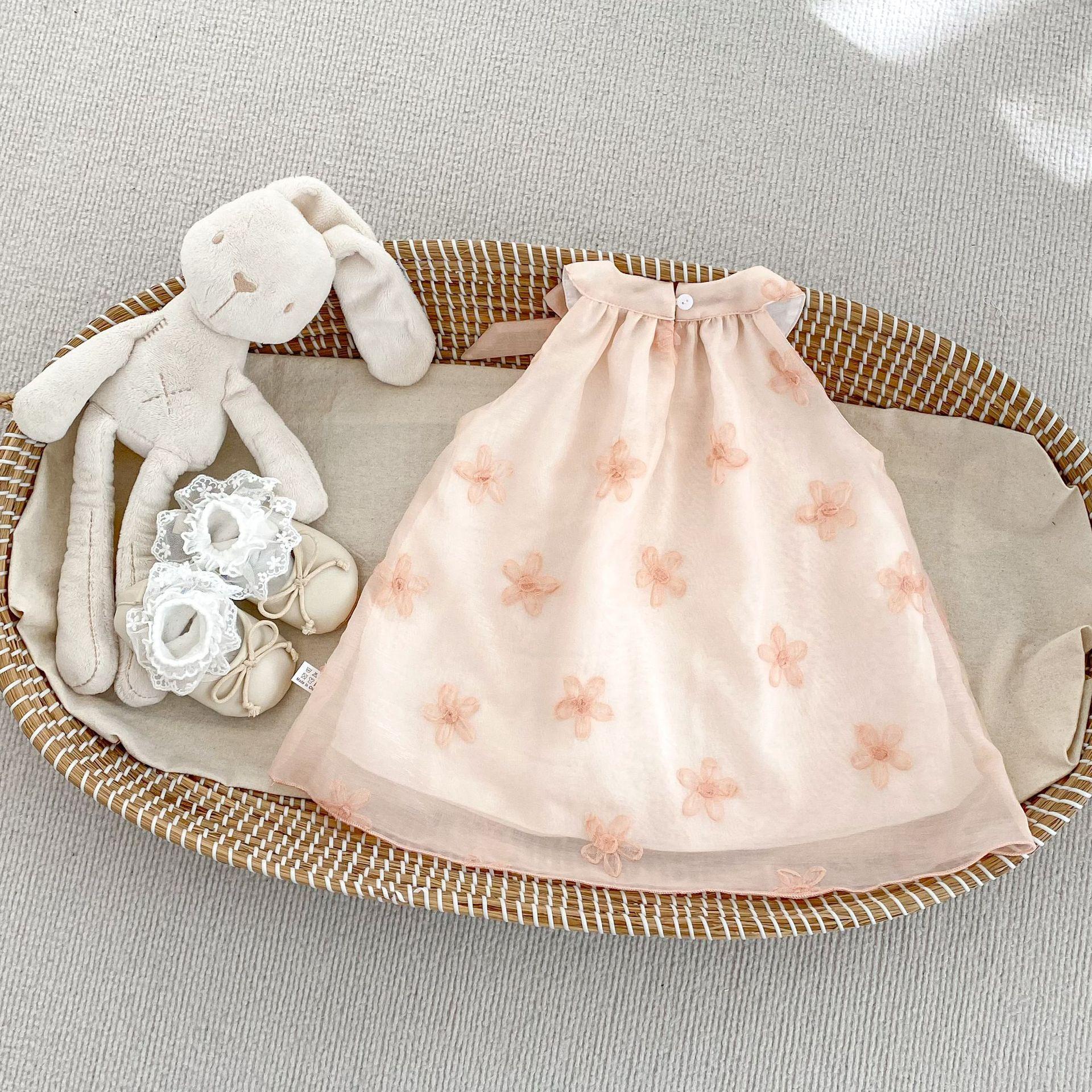 Vestido elegante sin mangas para niñas, nuevo vestido de verano a la moda para bebés, falda de malla bordada con lazo, vestido de princesa