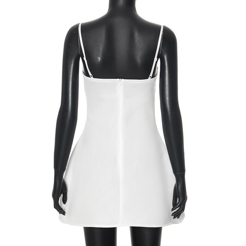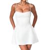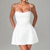 Ropa Nueva de Primavera y Verano para Mujer Transfronteriza Europea y Americana Sexy Espalda Descubierta Color Sólido Fresco Tirantes Cintura Alta Vestido Falda Corta Venta al por Mayor