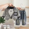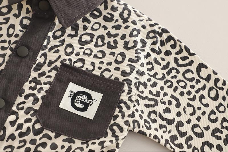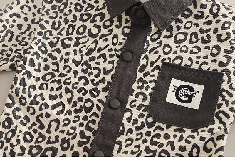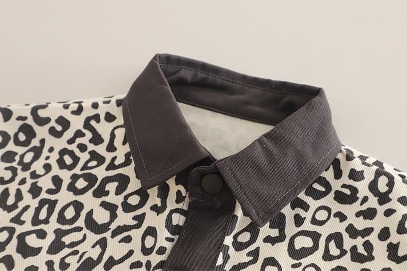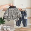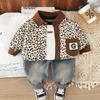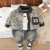 Conjunto de Ropa de Otoño para Niño 2025 Nuevo Bebé Infantil Casual Estilo Occidental Bebé Primavera y Otoño Estampado de Leopardo Camisa de Manga Larga Conjunto de Tres Piezas