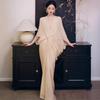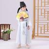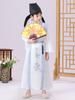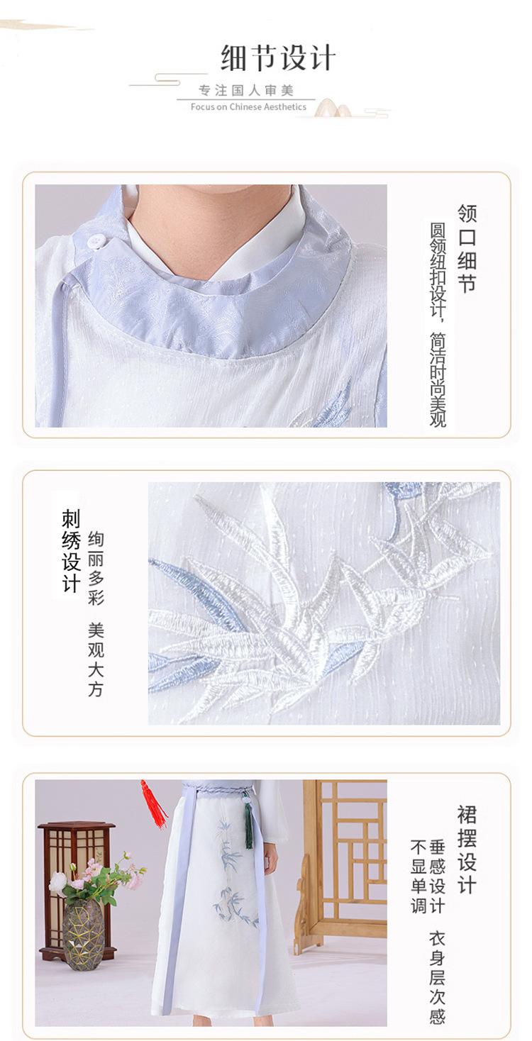 White embroidered bamboo han dynasty, White clothes + hat, Clothes+hat+fan, Round neck robe long sleeves, Roun...