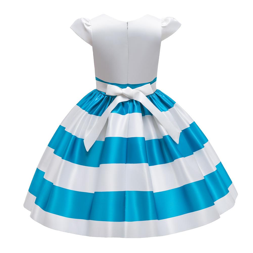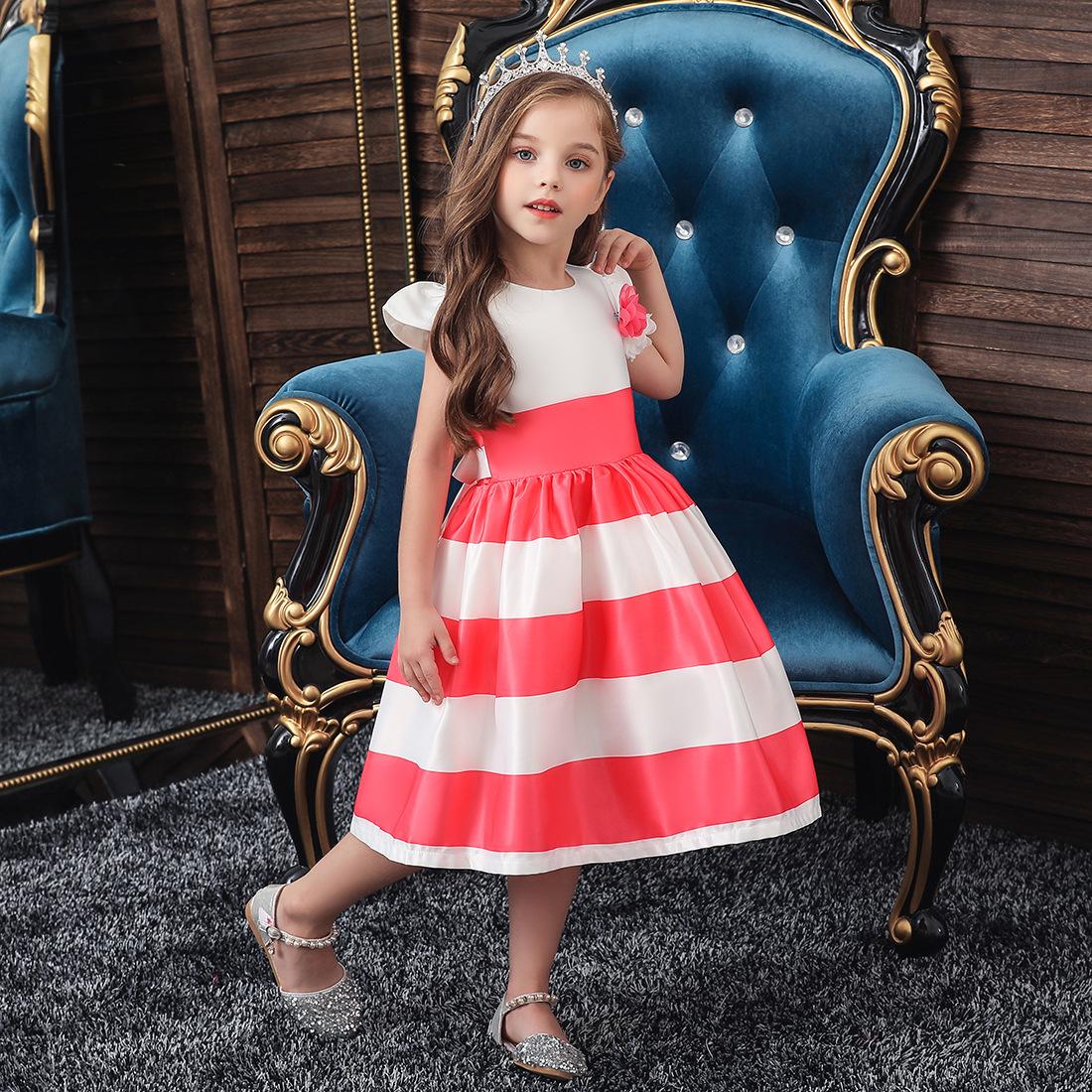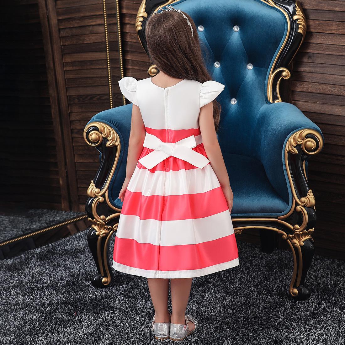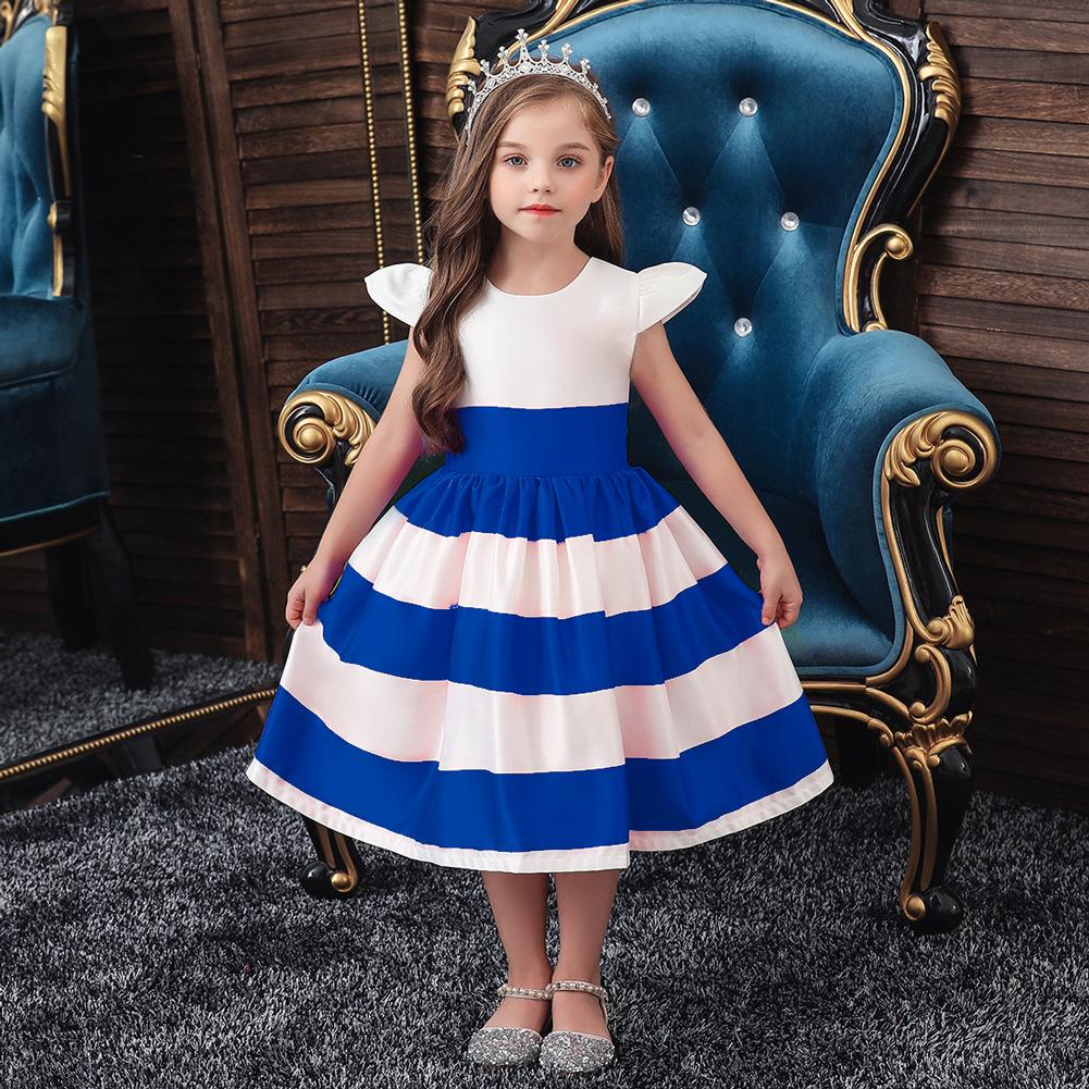 Vestido de Niña Transfronterizo Ropa de Actuación Vestido Chaleco Estampado para Niñas Vestido de Princesa con Lazo Plisado para Niños K7