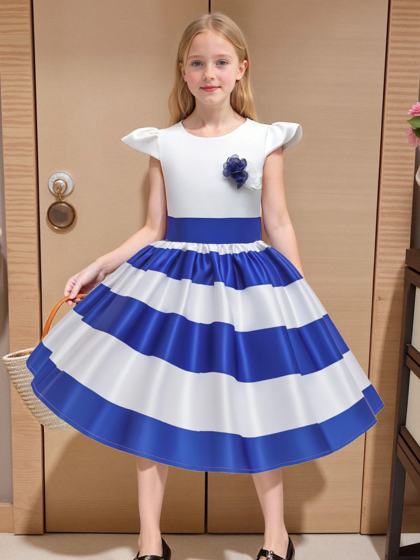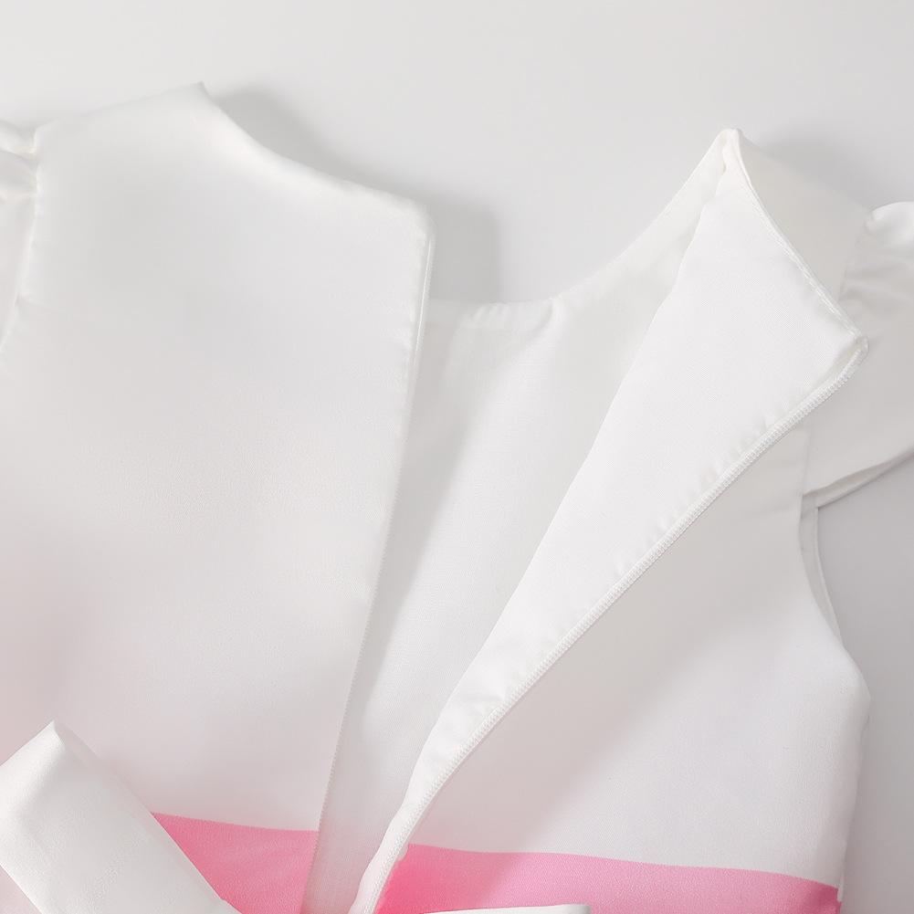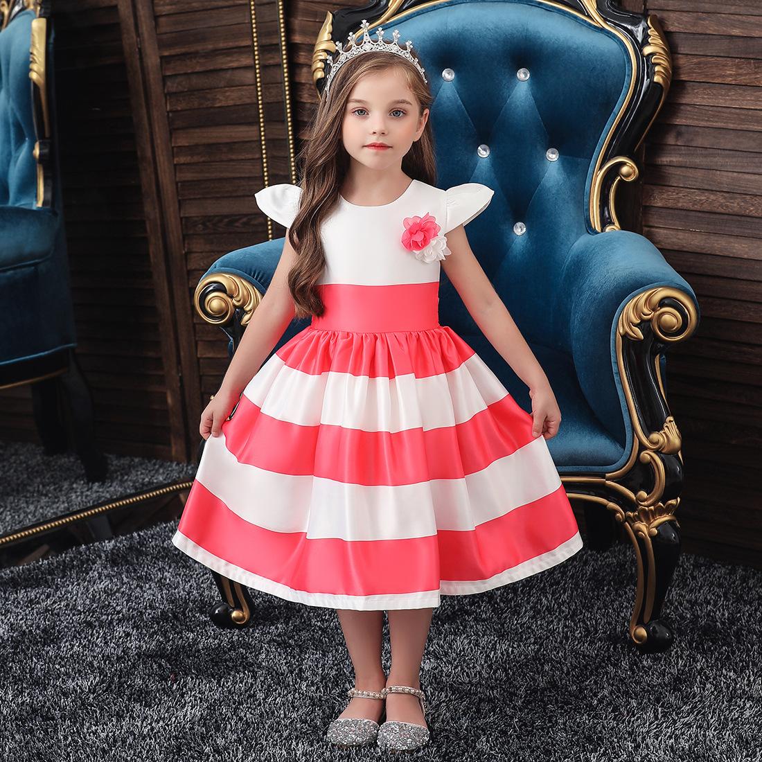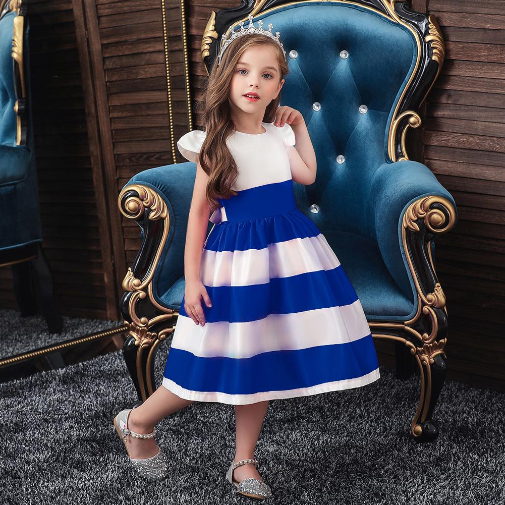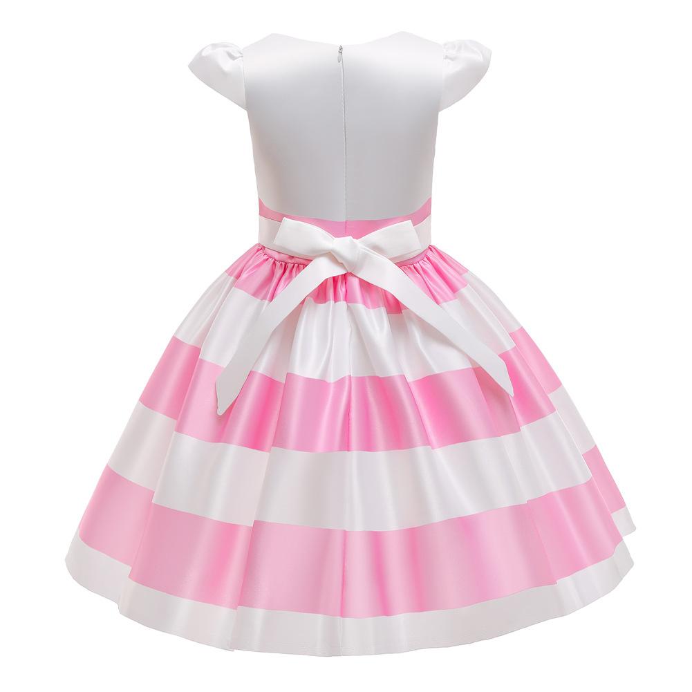 Vestido de Niña Transfronterizo Ropa de Actuación Vestido Chaleco Estampado para Niñas Vestido de Princesa con Lazo Plisado para Niños K7