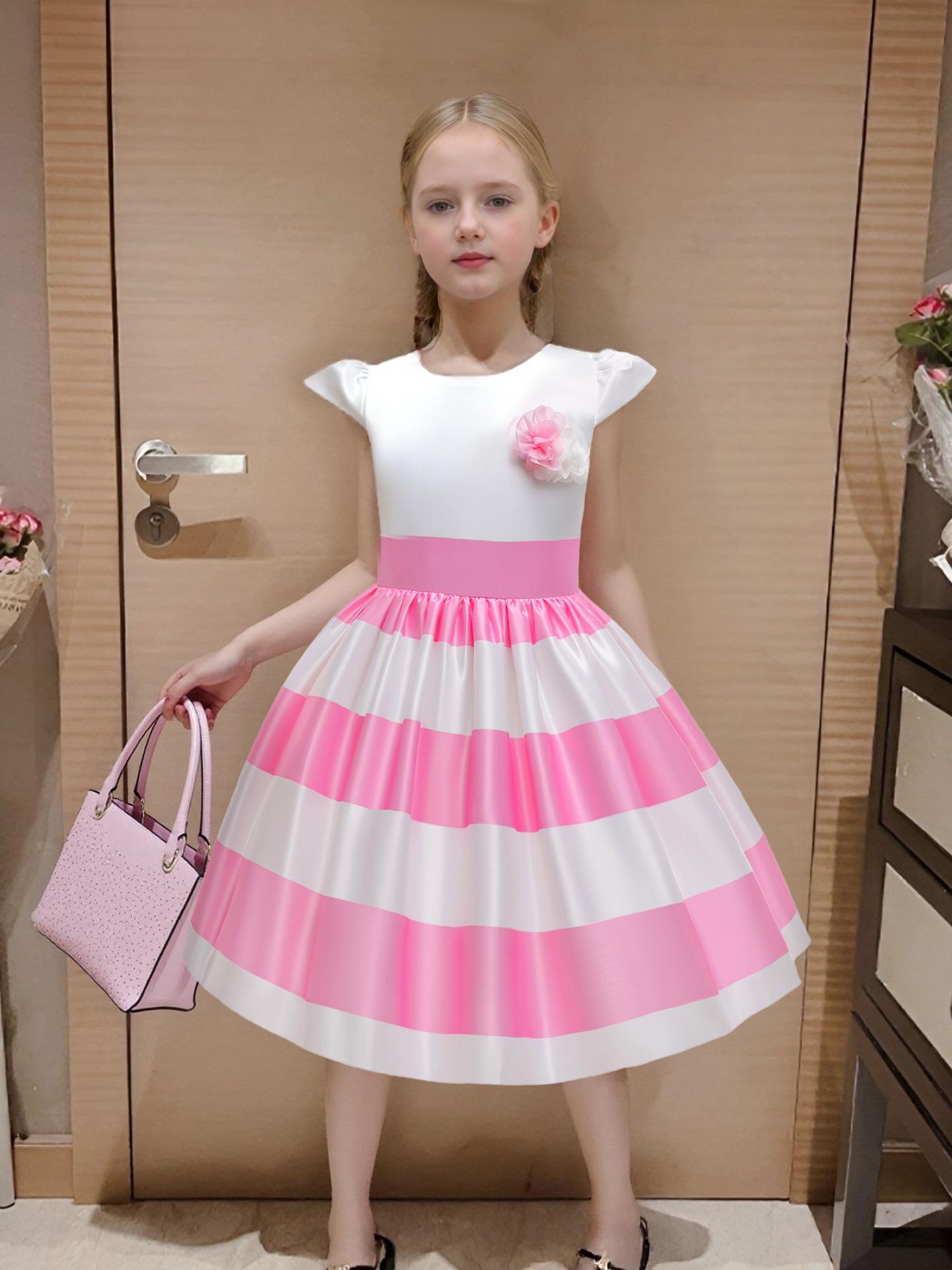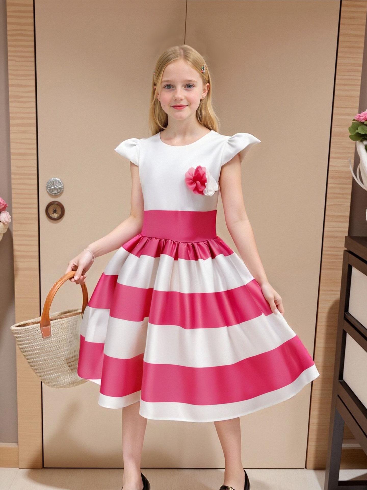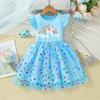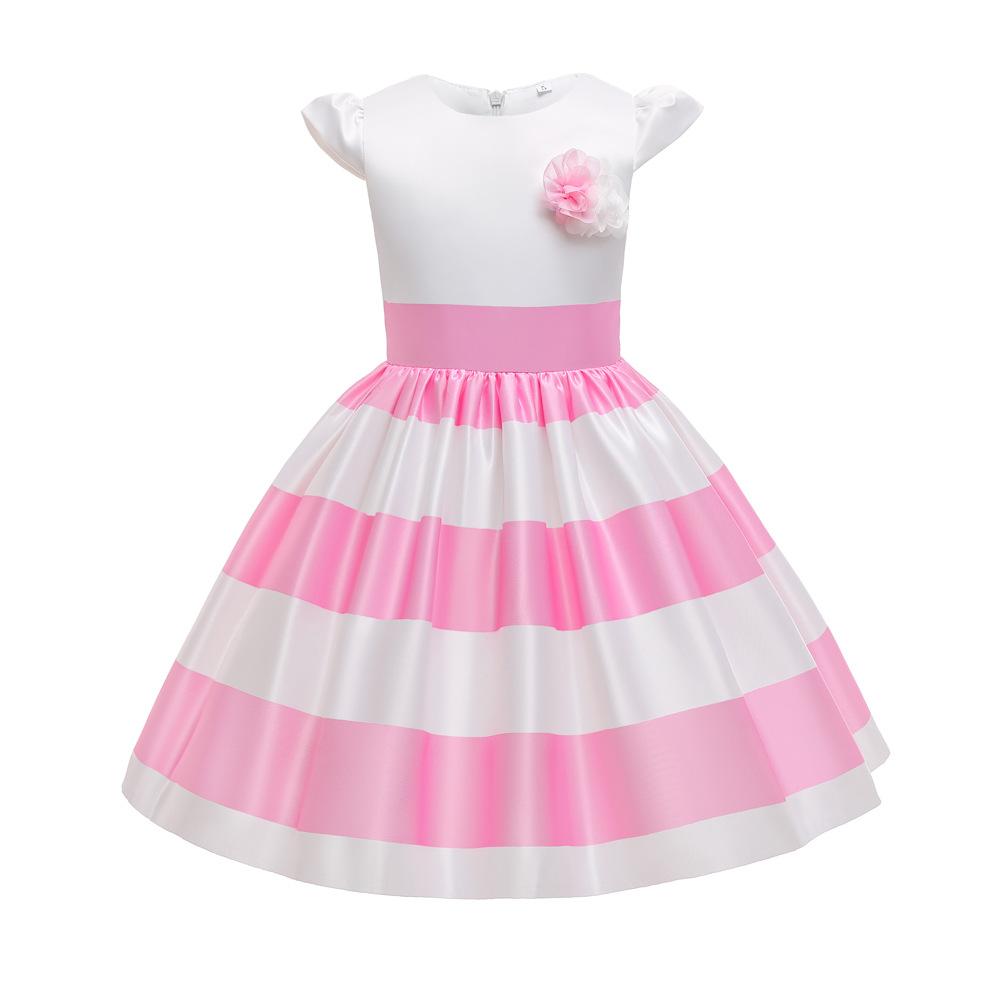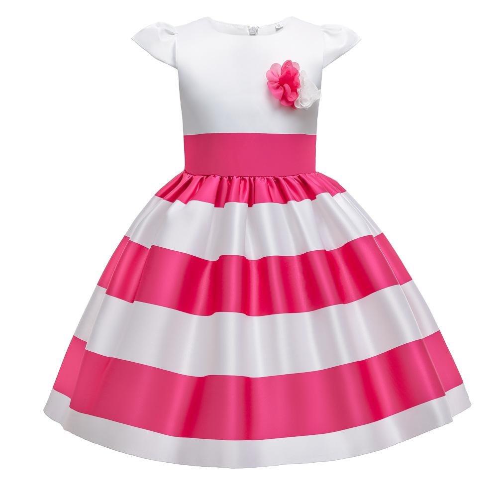 Vestido de Niña Transfronterizo Ropa de Actuación Vestido Chaleco Estampado para Niñas Vestido de Princesa con Lazo Plisado para Niños K7