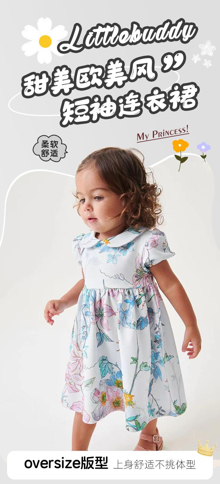 Littlebuddy Transfronterizo Verano Estilo Europeo y Americano Floral Vestido de Princesa Vestido para Niñas Vestido de Princesa Vestido de Una Pieza Dropshipping