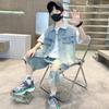 Chaleco para niños Ape Treasure Club 2025 Verano Nuevo Ropa de trabajo para niños Chaleco de mezclilla Chaleco desmontable para bebé