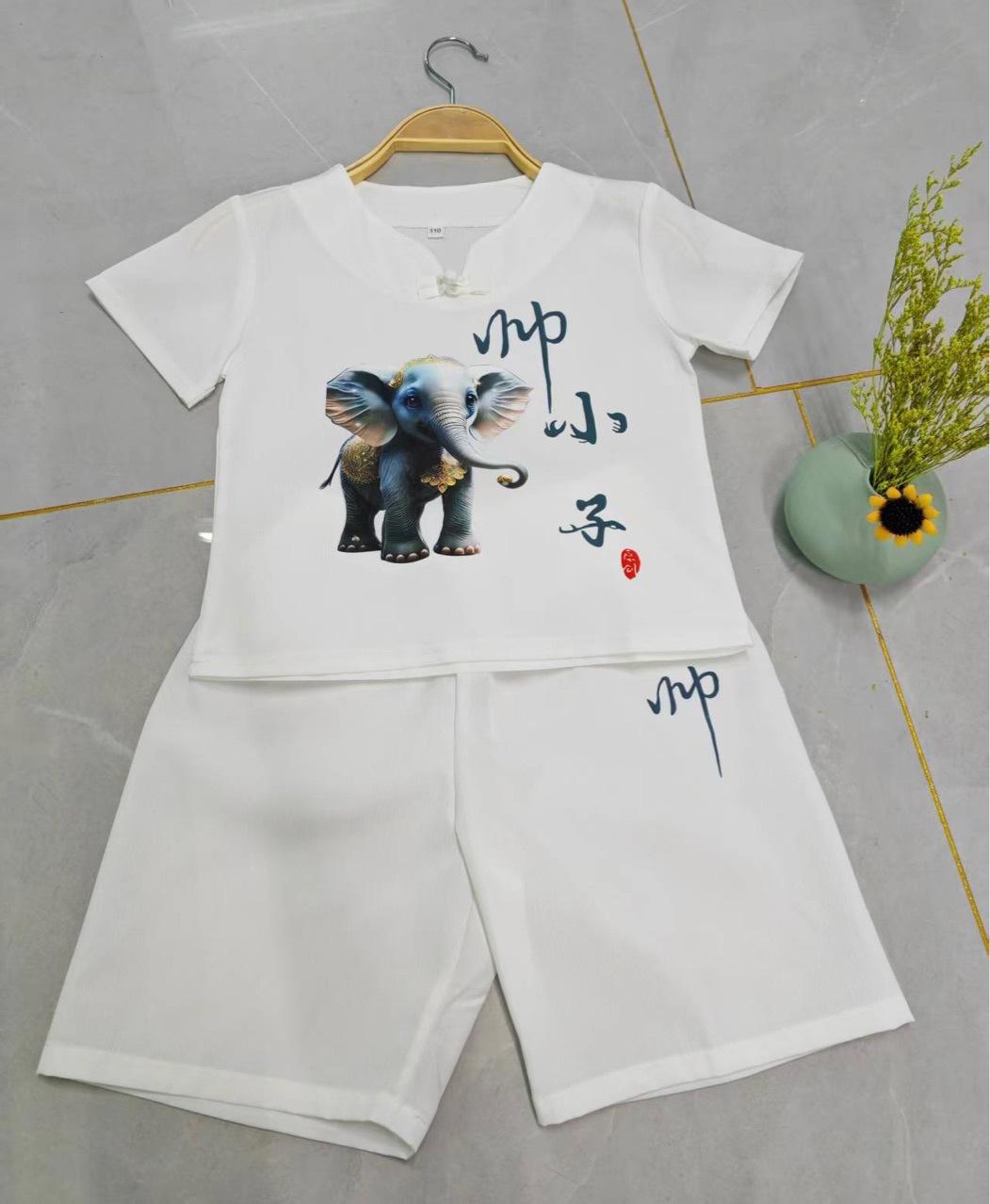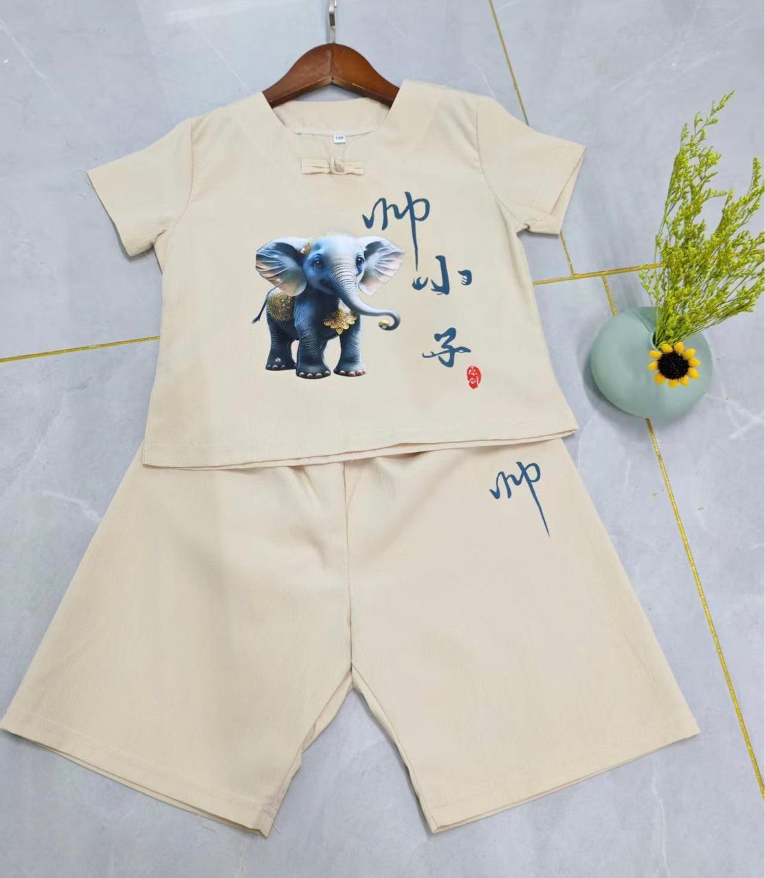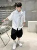 Traje de Verano Nuevo para Niño Estilo Chino Algodón Cáñamo Pantalones Antimosquitos Dos Piezas Casual Guapo Infantil Vintage Moda Han