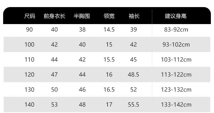 Children (3~8 years old, 100~140cm)