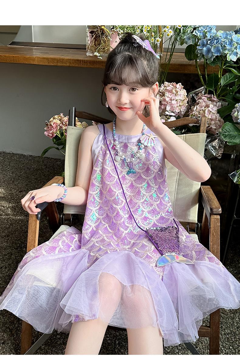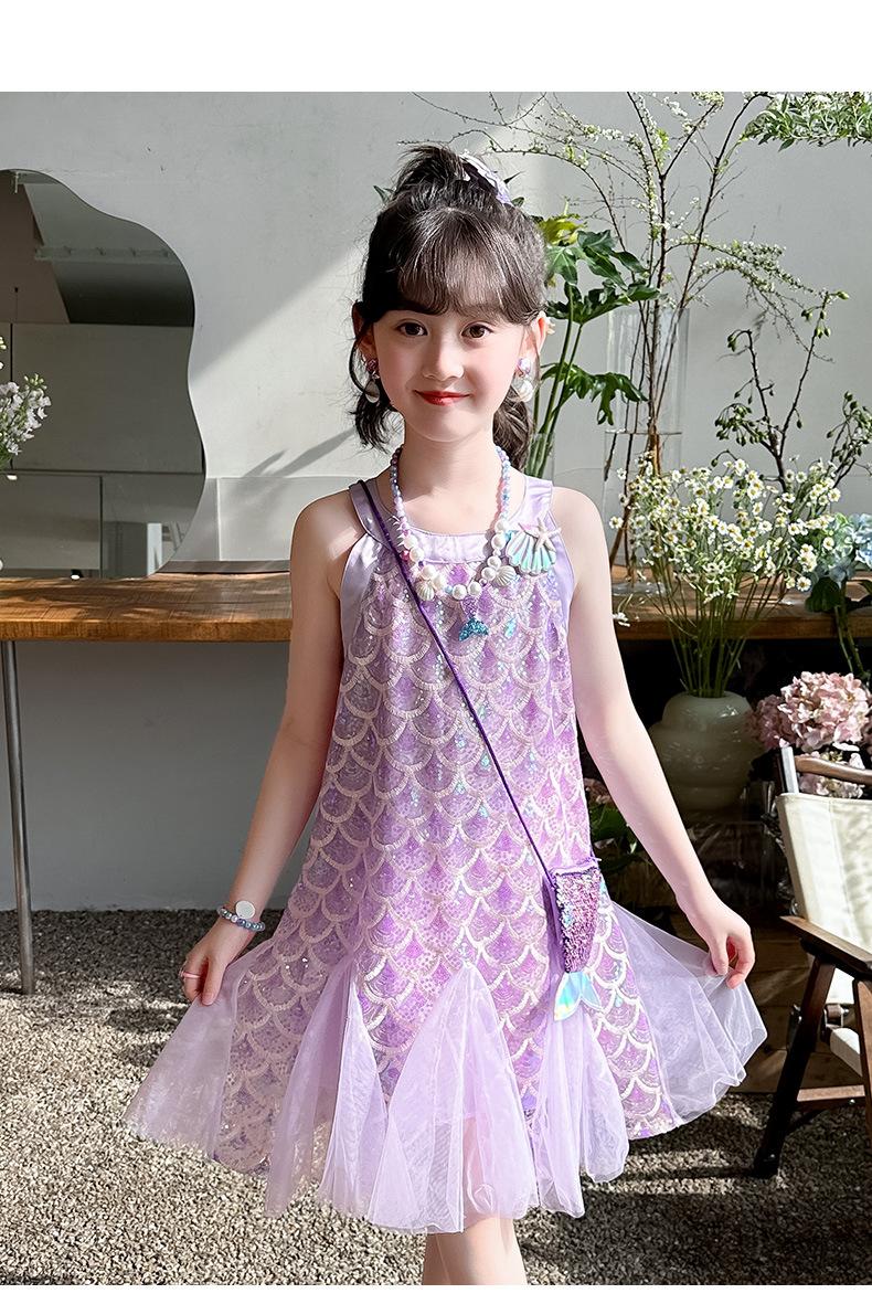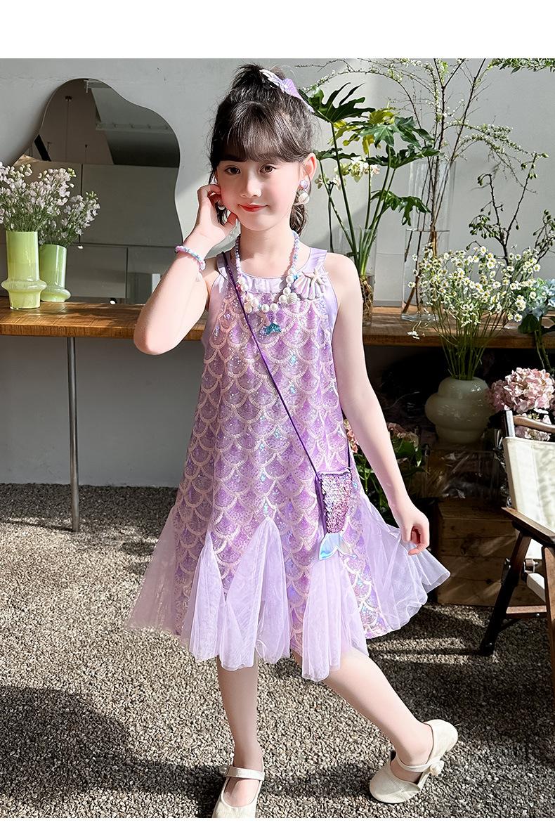 Vestido de Princesa Sirena Vestido de Verano para Niñas 2025 Nuevo Estilo Vestido para Niñas Chaleco de Verano para Niños Falda