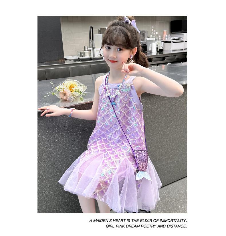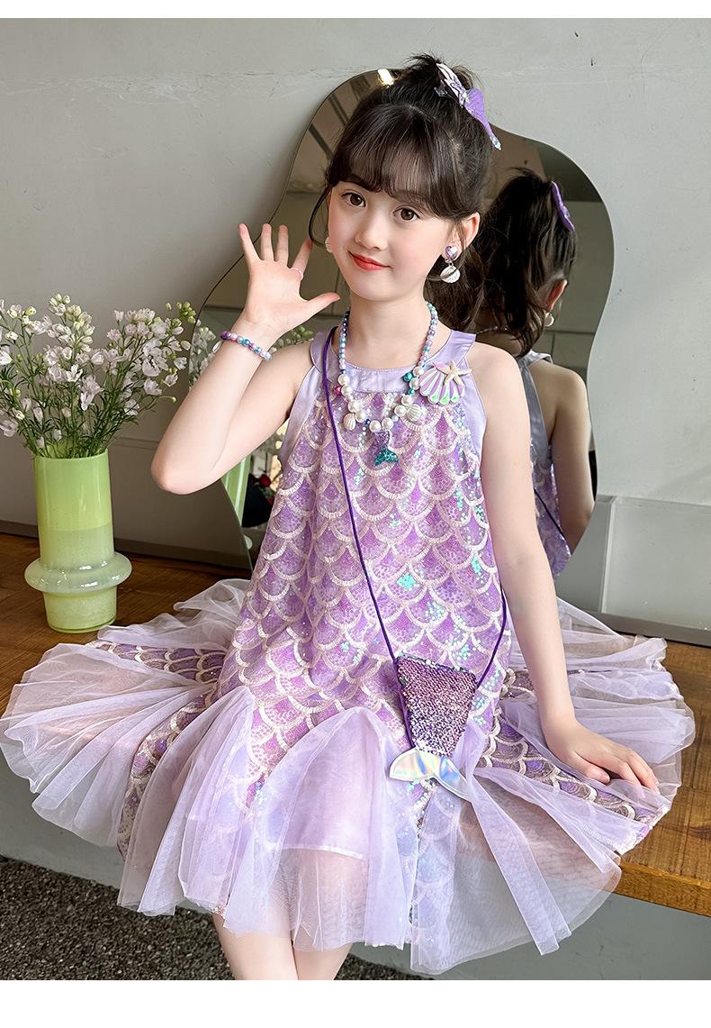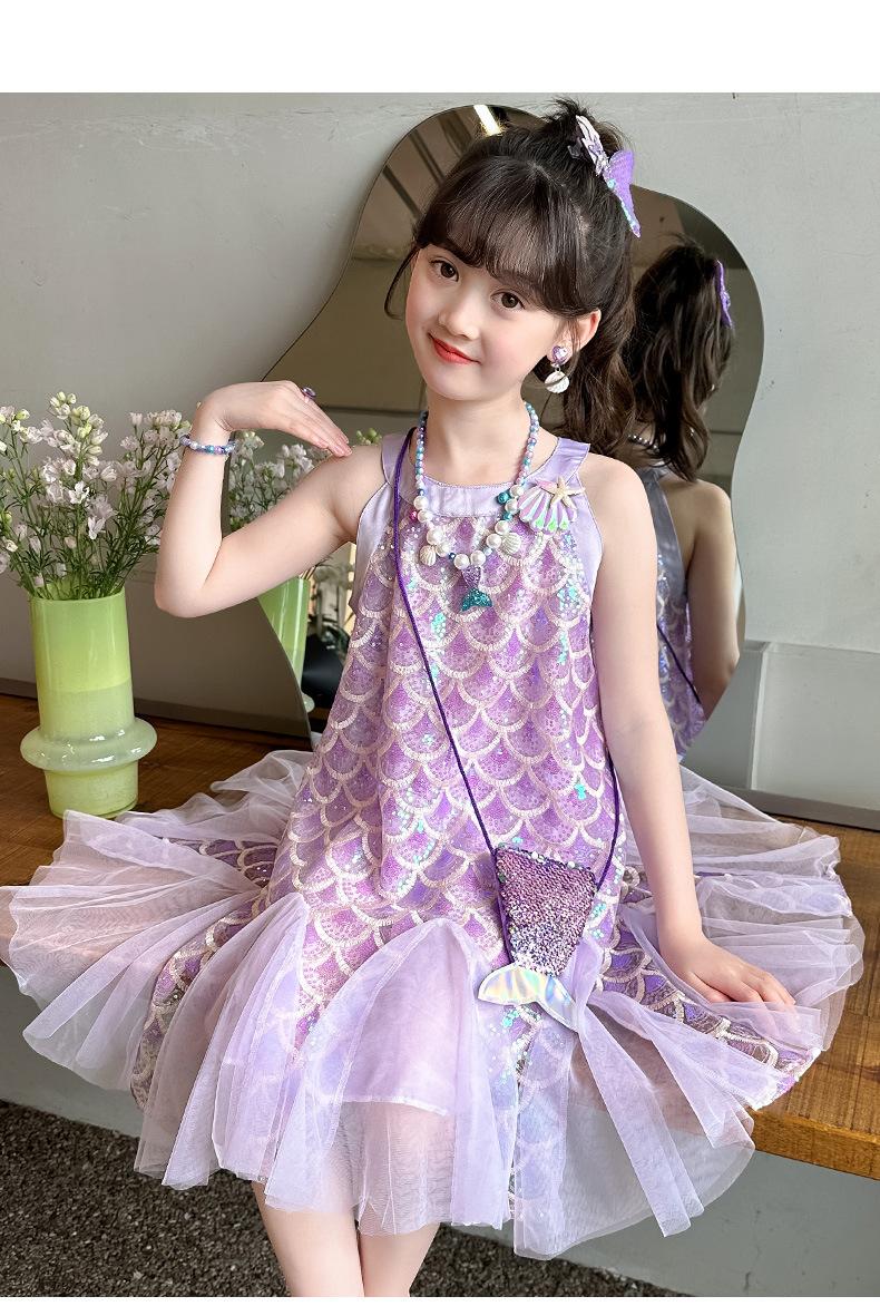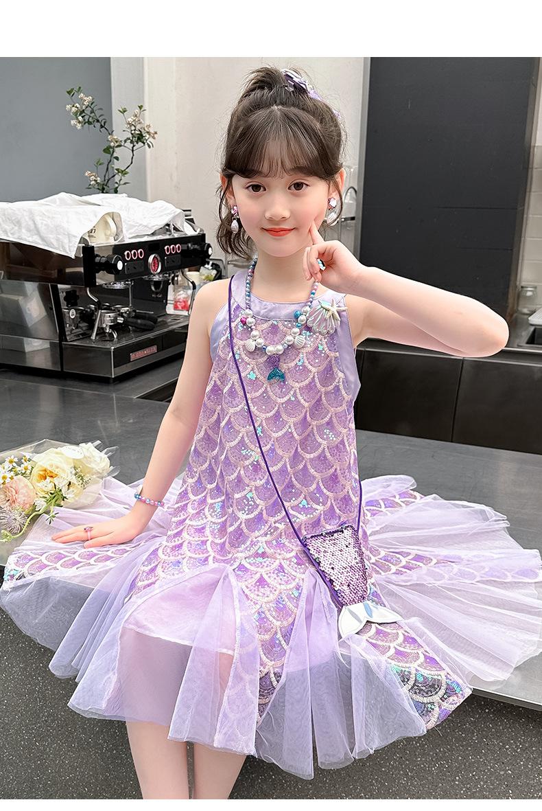 Vestido de Princesa Sirena Vestido de Verano para Niñas 2025 Nuevo Estilo Vestido para Niñas Chaleco de Verano para Niños Falda