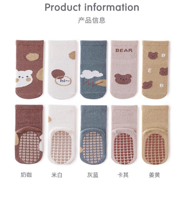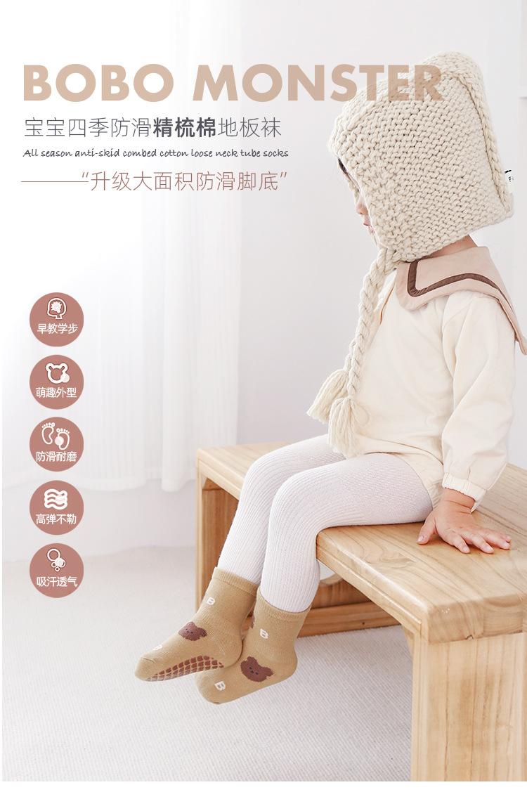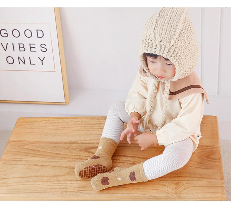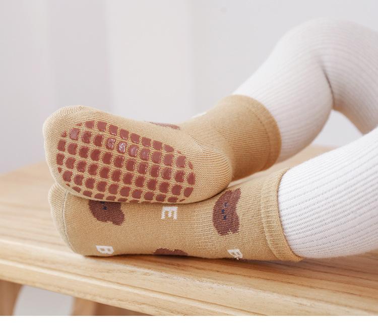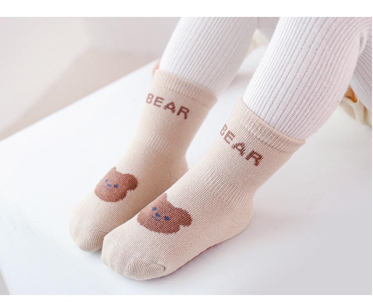 Calcetines para niños de otoño, calcetines finos antideslizantes con dibujos de osos, calcetines de invierno para bebés recién nacidos y niños pequeños.