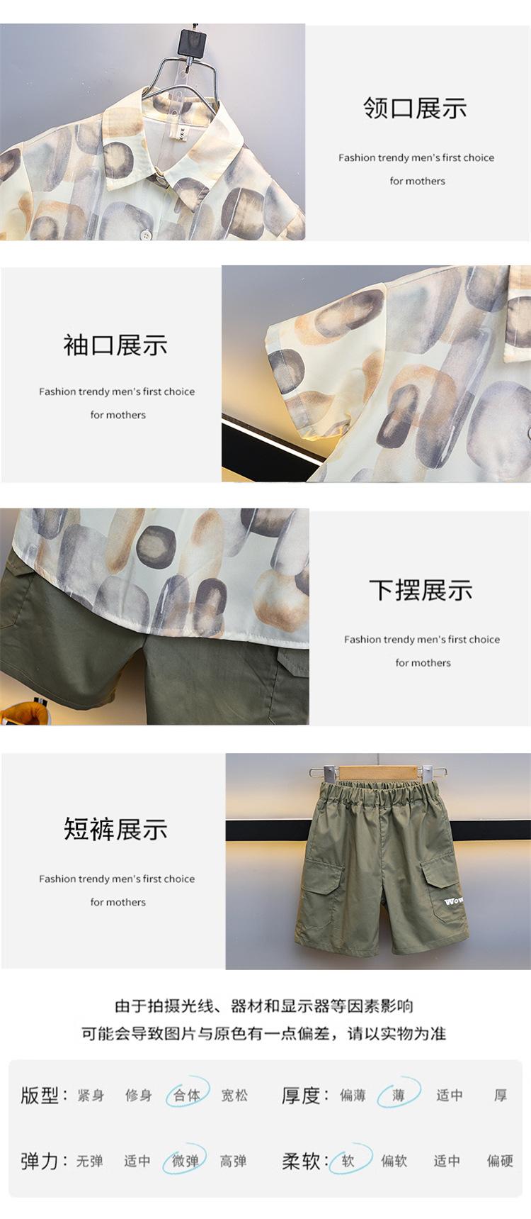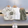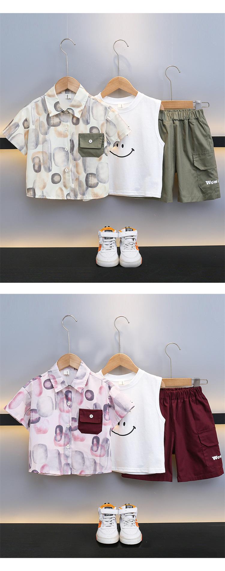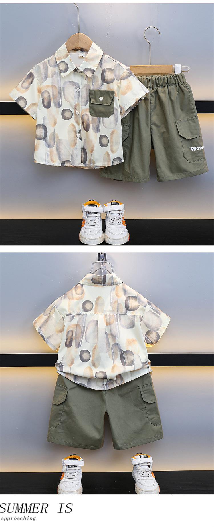Ropa Infantil de Moda para Niños Transfronteriza 2025 Verano Nuevo Estilo Coreano Guapo Bebé Camiseta de Círculos Manga Corta Traje de Tres Piezas