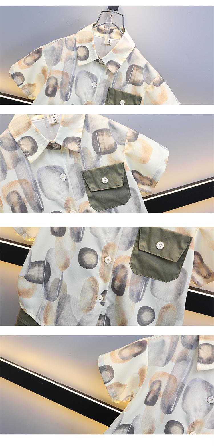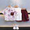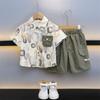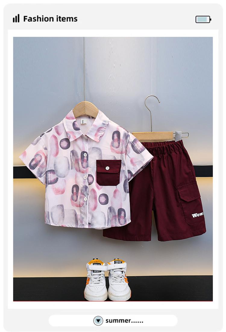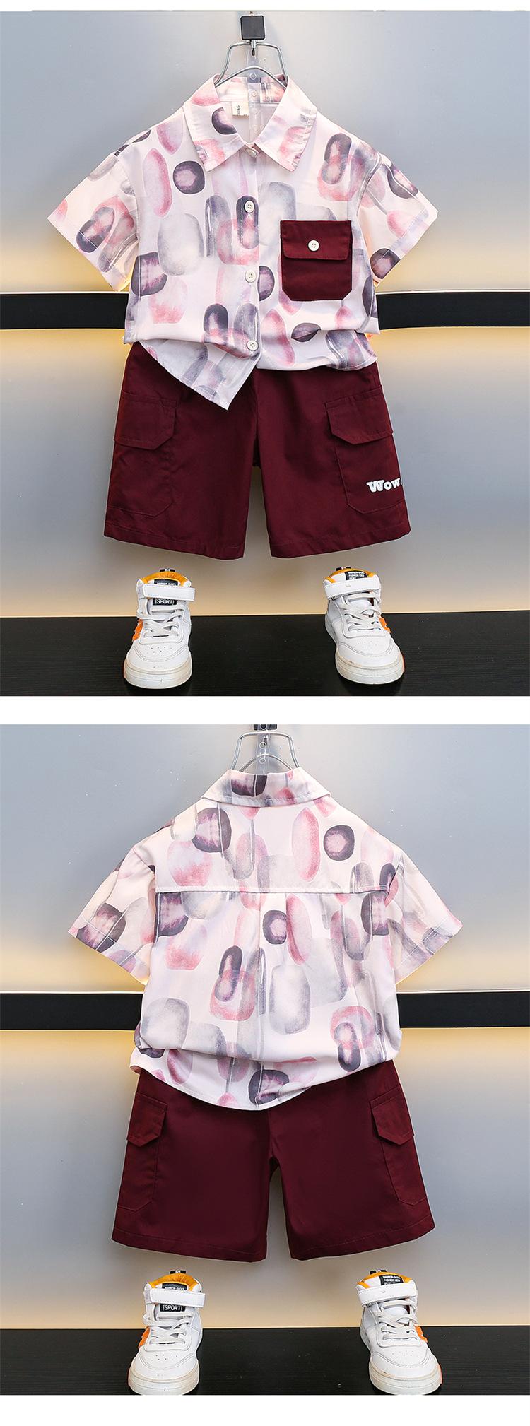 Ropa Infantil de Moda para Niños Transfronteriza 2025 Verano Nuevo Estilo Coreano Guapo Bebé Camiseta de Círculos Manga Corta Traje de Tres Piezas