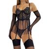 Suministro Transfronterizo Comercio Exterior Europeo y Americano Lencería Sexy Lencería Sexy para Mujer Encaje Negro Transparente Ajustado Liguero Conjunto de Ropa Interior