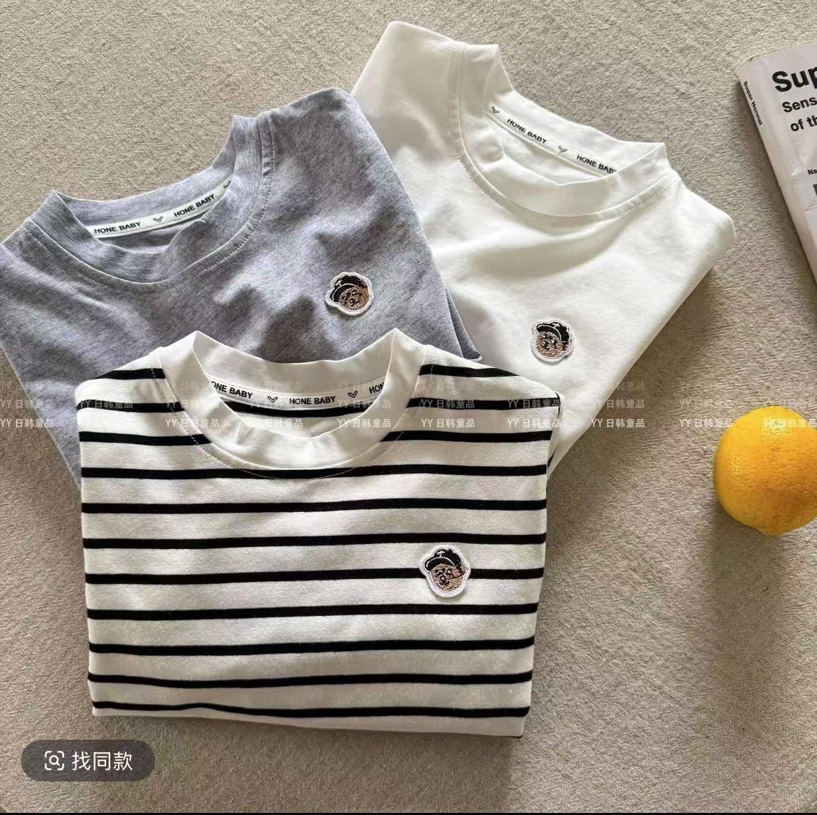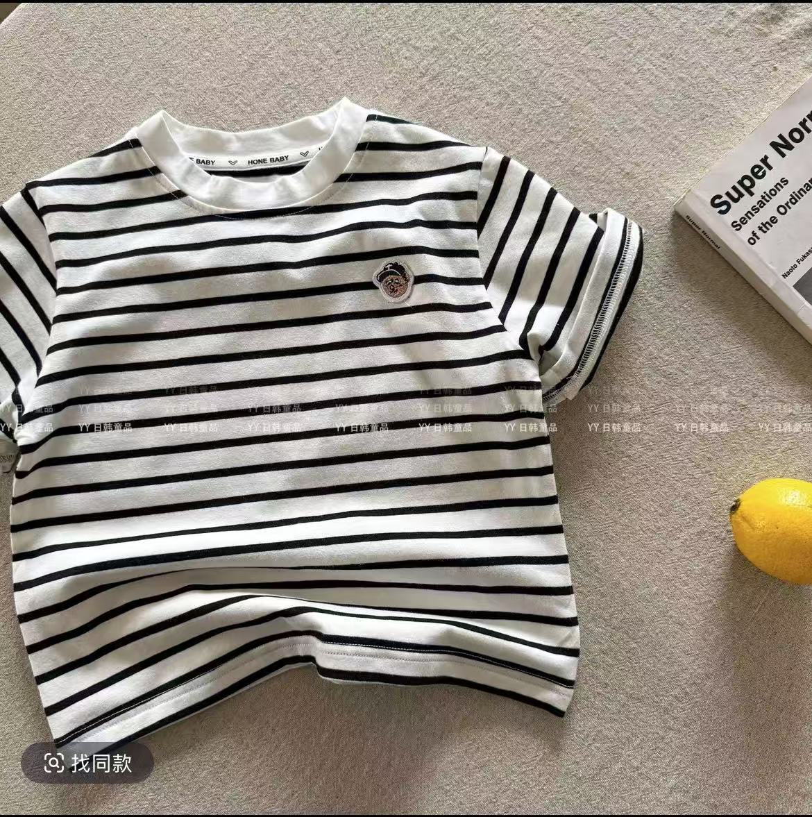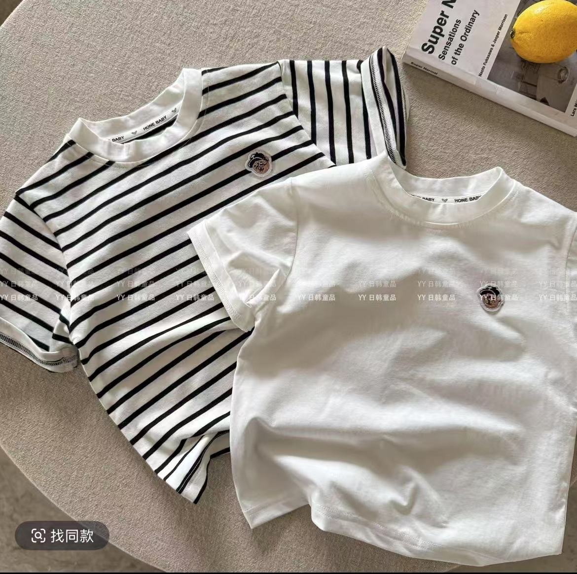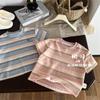Camiseta de Manga Corta Rayada para Niños 2025 Nuevo Verano Niños Cuello Redondo Algodón Top de Media Manga Ropa de Verano para Niñas