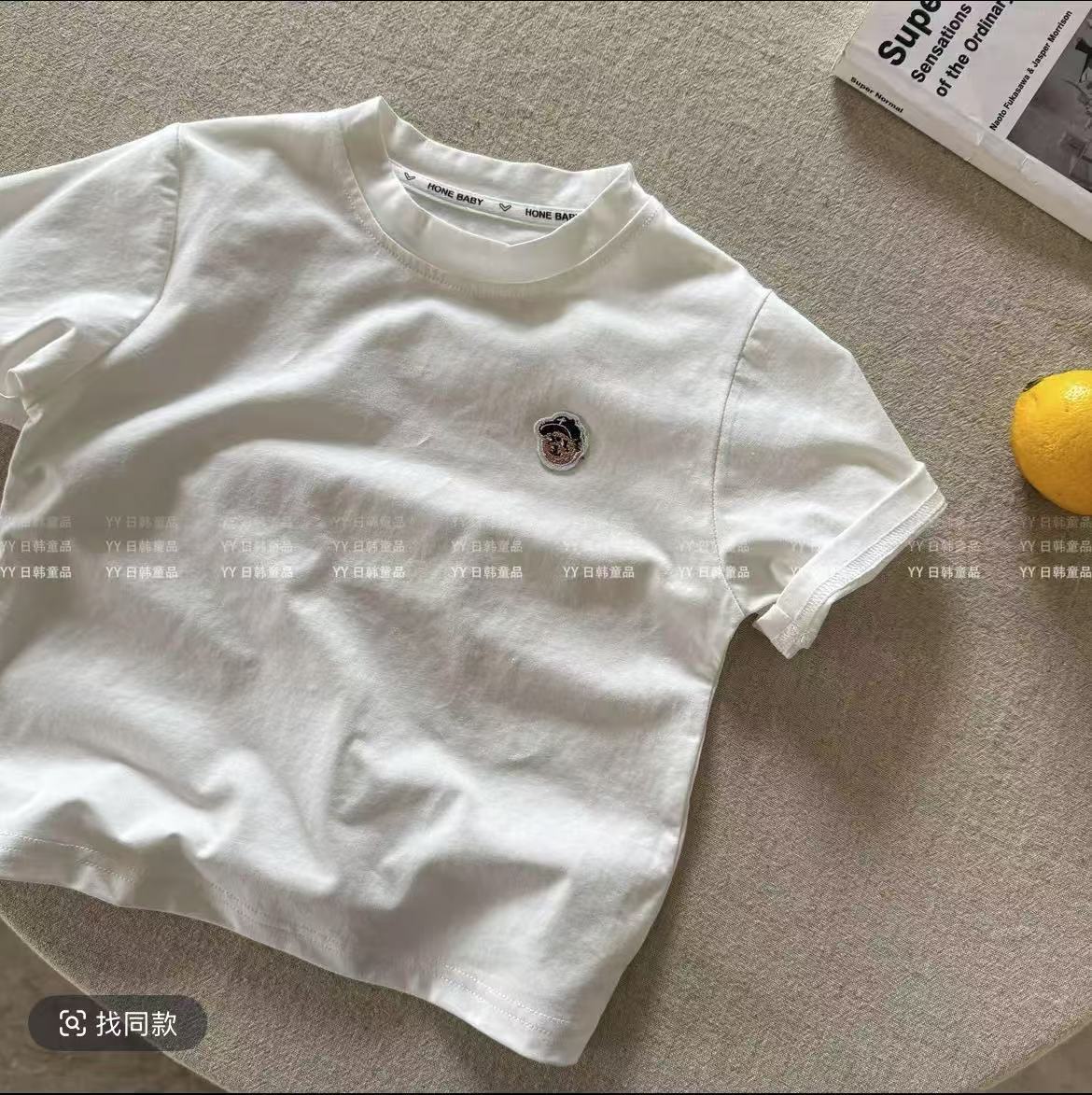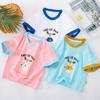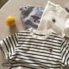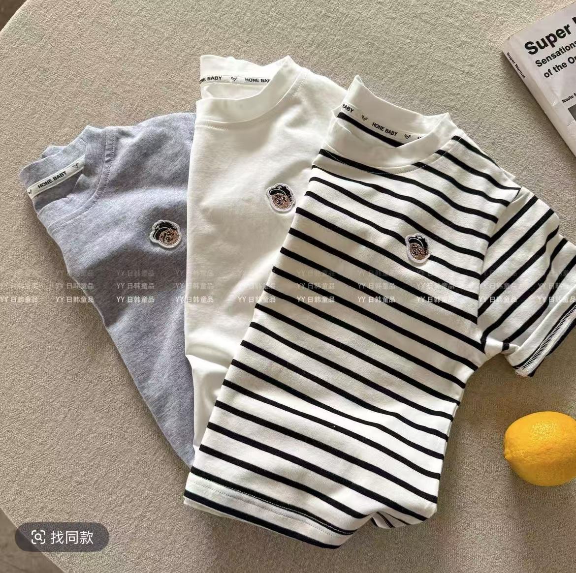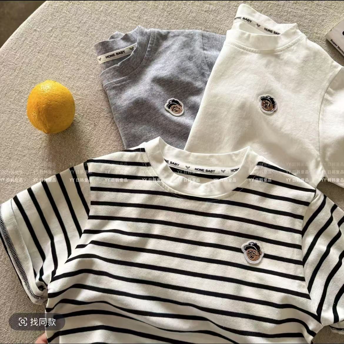 Camiseta de Manga Corta Rayada para Niños 2025 Nuevo Verano Niños Cuello Redondo Algodón Top de Media Manga Ropa de Verano para Niñas