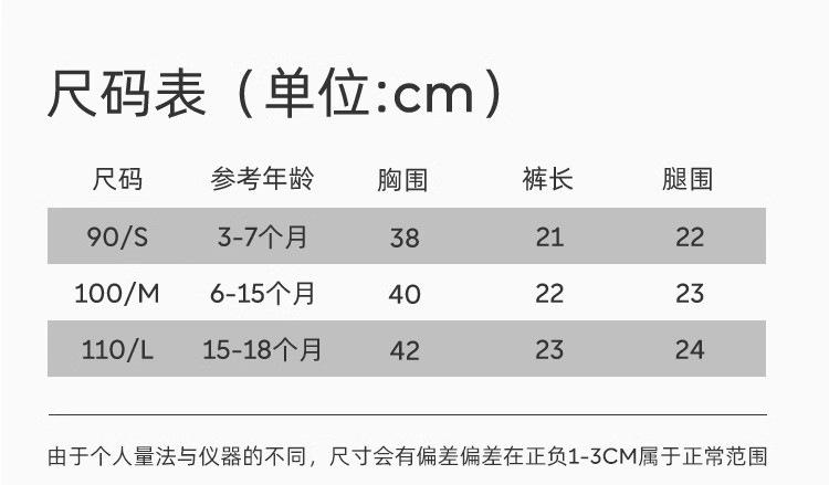 90/s (3-7 months), 100/m (6-15 months), 110/l (15-18 months)