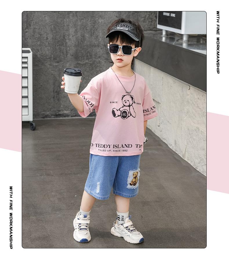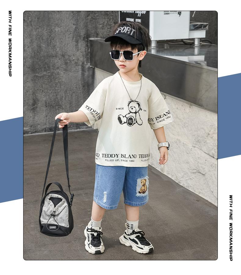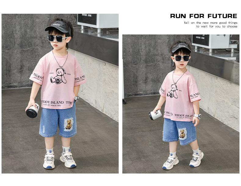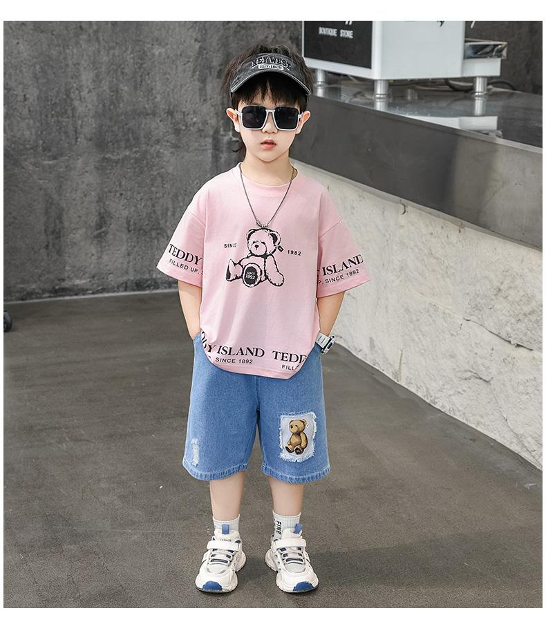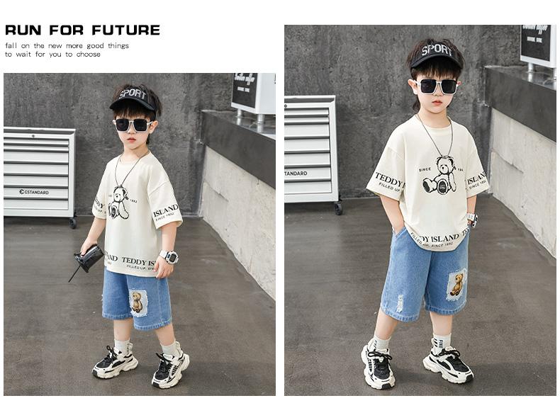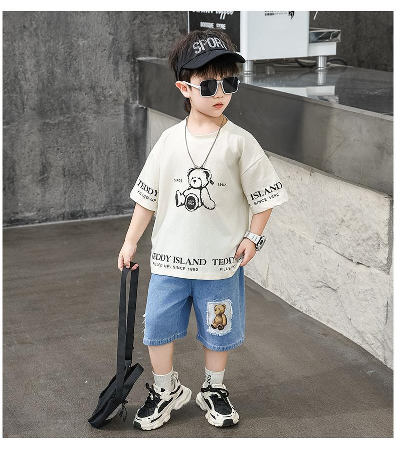 Ropa para Niños Traje de Verano para Niños 2025 Nuevo Niño Pequeño Verano Manga Corta Shorts de Mezclilla Ropa Casual para Bebé