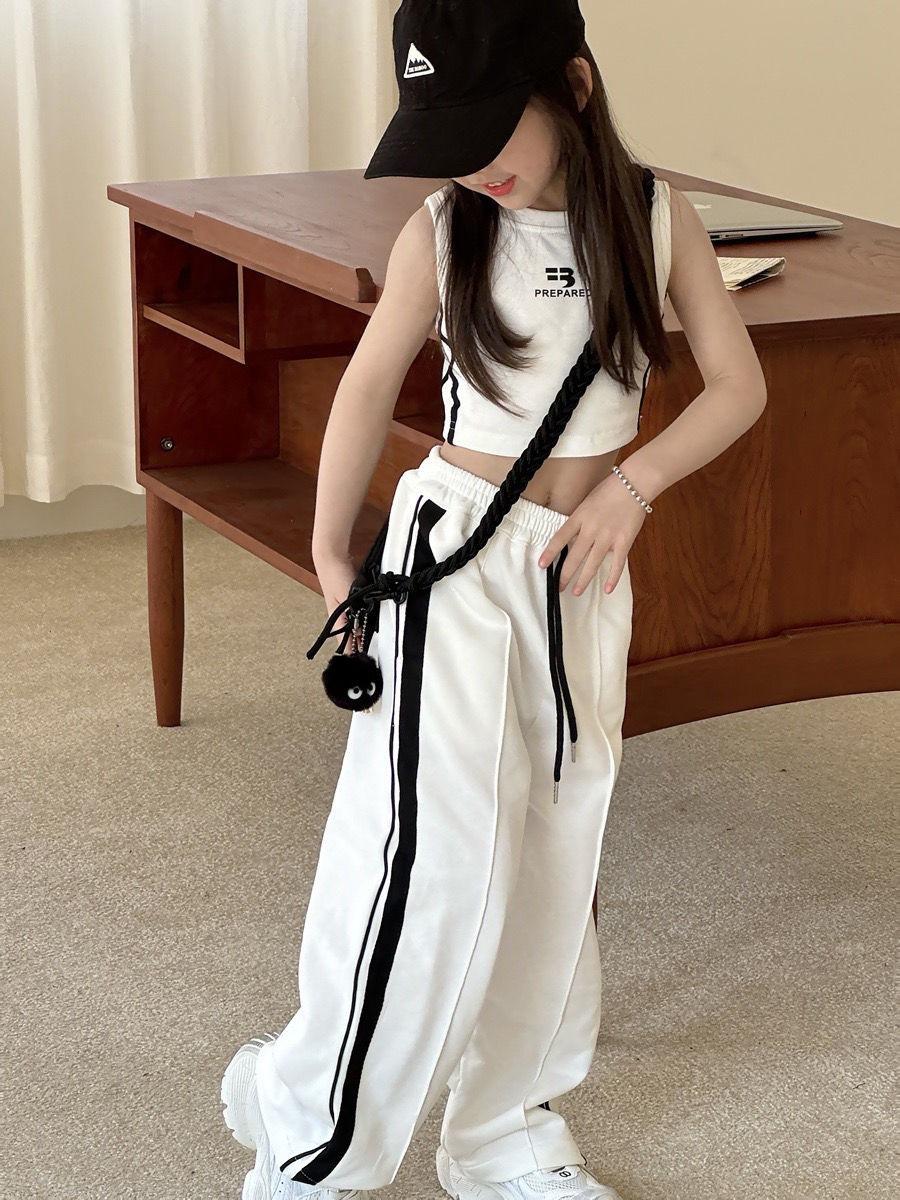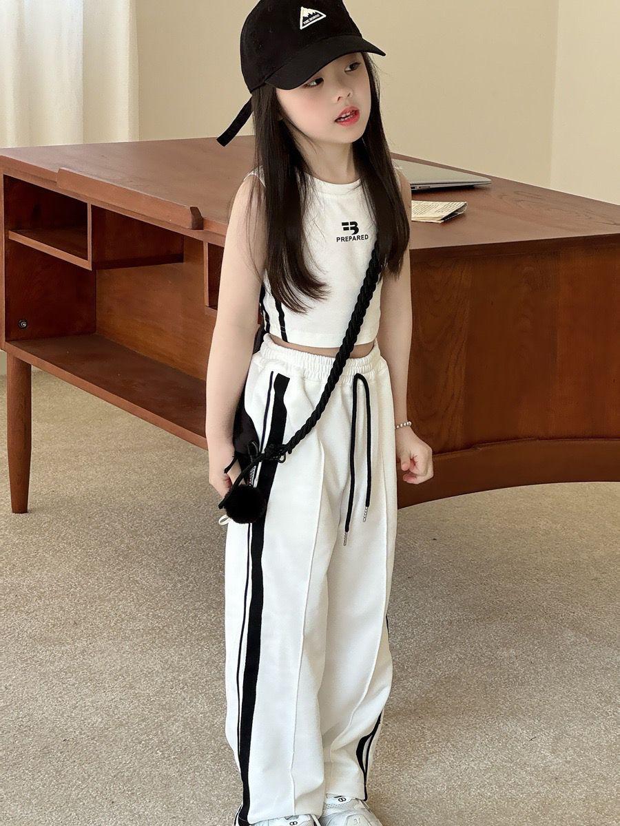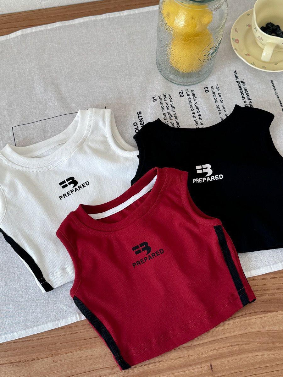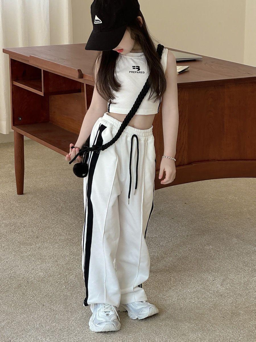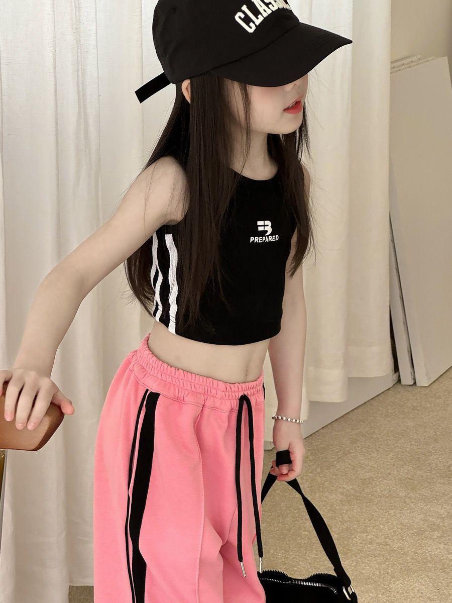 Chaleco de Verano para Niñas Bebé Elegante Infantil Personalizado Moderno Marca Coreana Corto Calle Danza Letra Rayas Camiseta sin Mangas